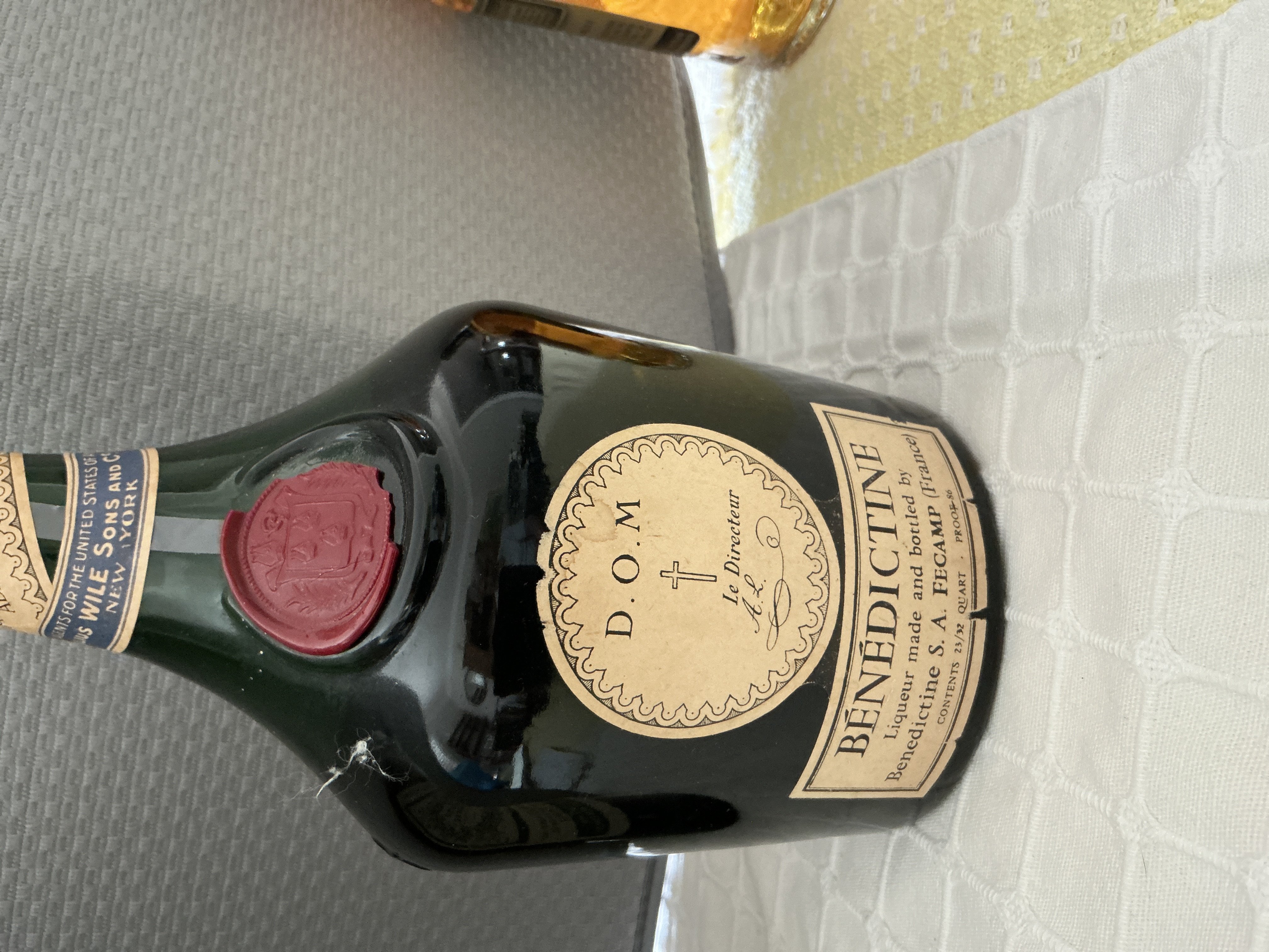 - D.O.M Le Directeur A L, Benedictine Liqueur made and bottled by Benedictine S. S. Fecamp (France). Contents 23/32 Quart. Proof 86