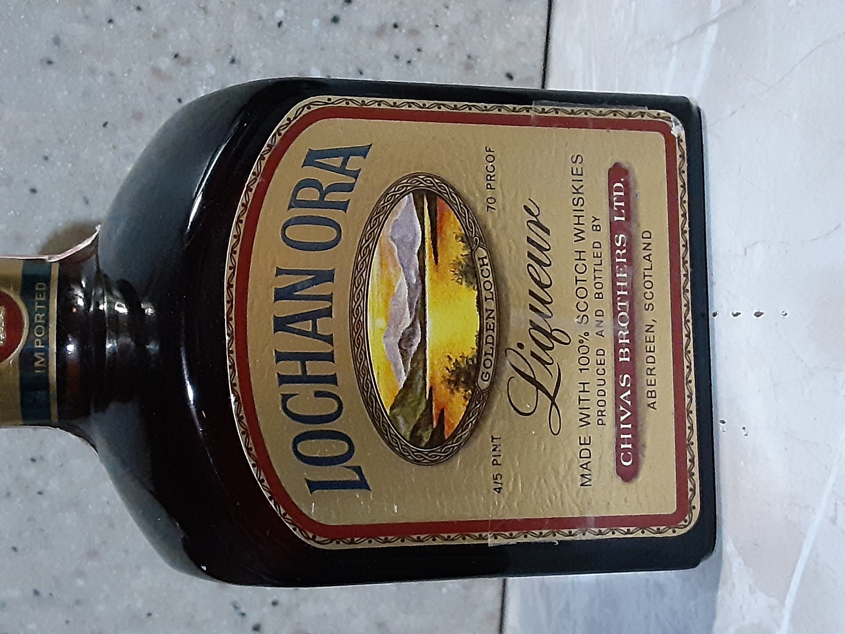 - LOCHAN ORA GOLDEN LOCH Liqueur CHIVAS BROTHERS LTD. ABERDEEN SCOTLAND 4/5 PINT. 70 PROOF General Wine & Spirits Company NEW YORK. N.Y.