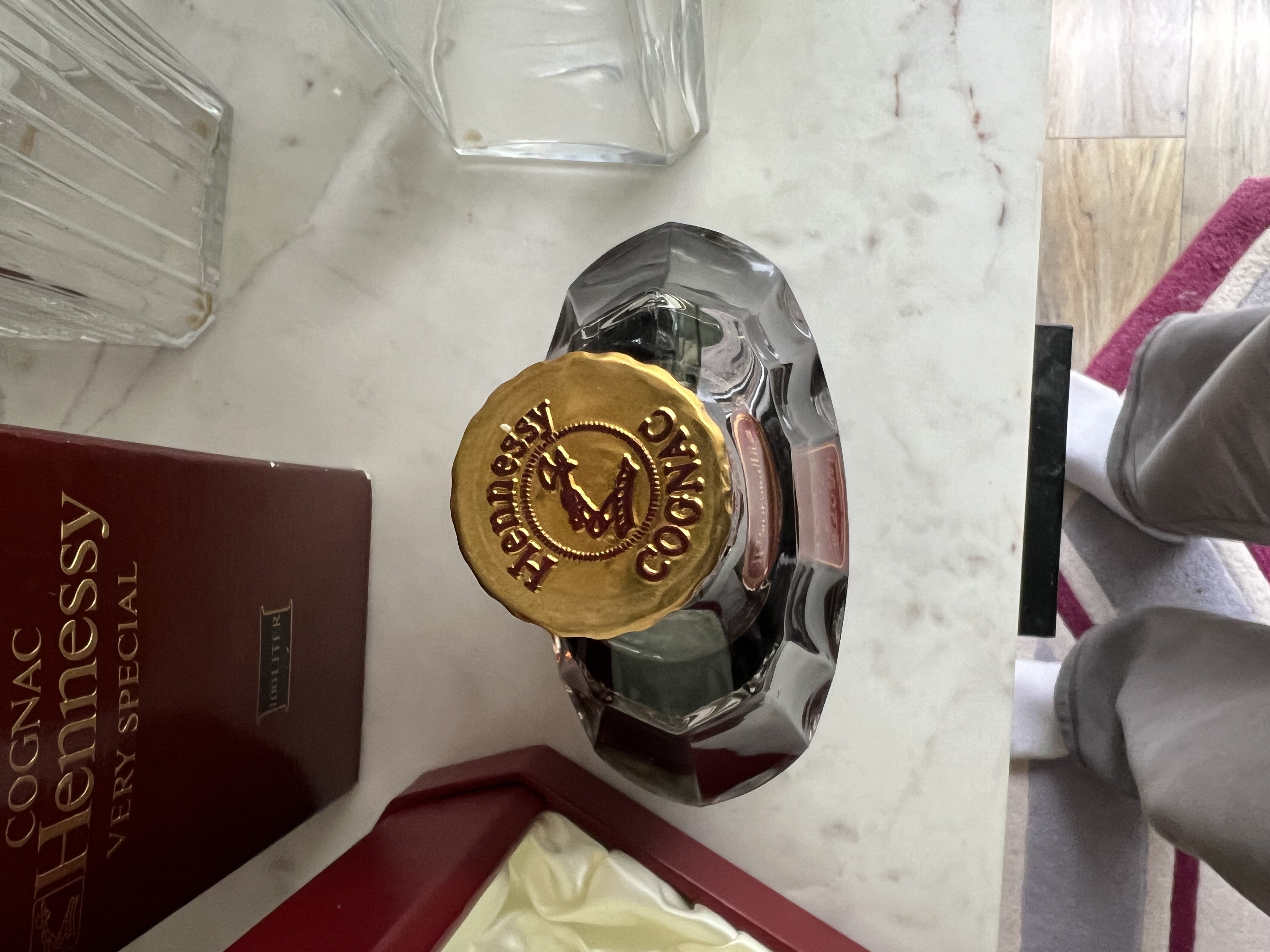 - My step-father was gifted this bottle in the early 80's, I stumbled upon it while doing some home renovations. Unfortunately there is a light staining on the boxes label due to a glue used to put the label back in place.