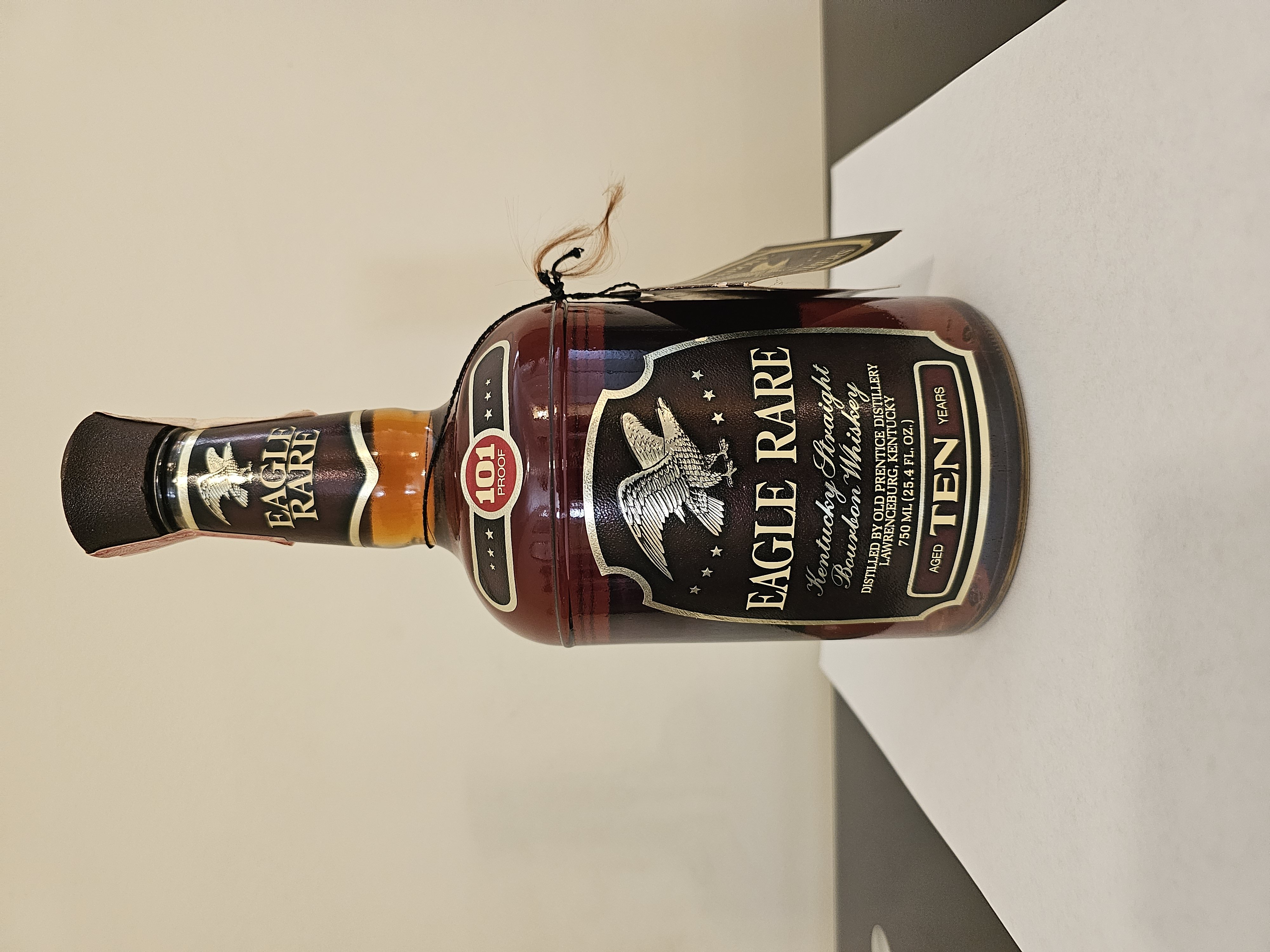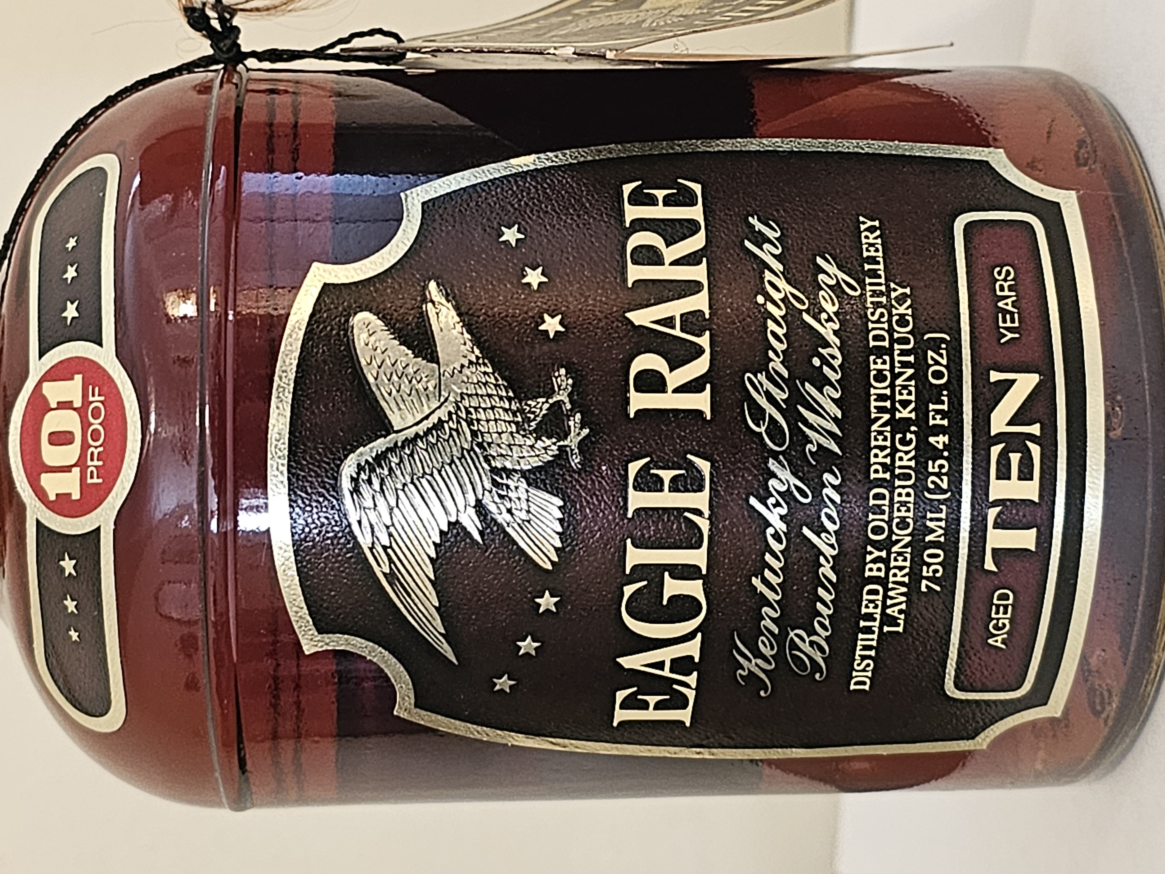 - 101 proof Eagle Rare Kentucky Straight Bourbon Whiskey Distilled by Old Prentice Distillery Lawrenceburg, Kentucky 750 ML (25.4 FL. OZ.) Aged Ten Years