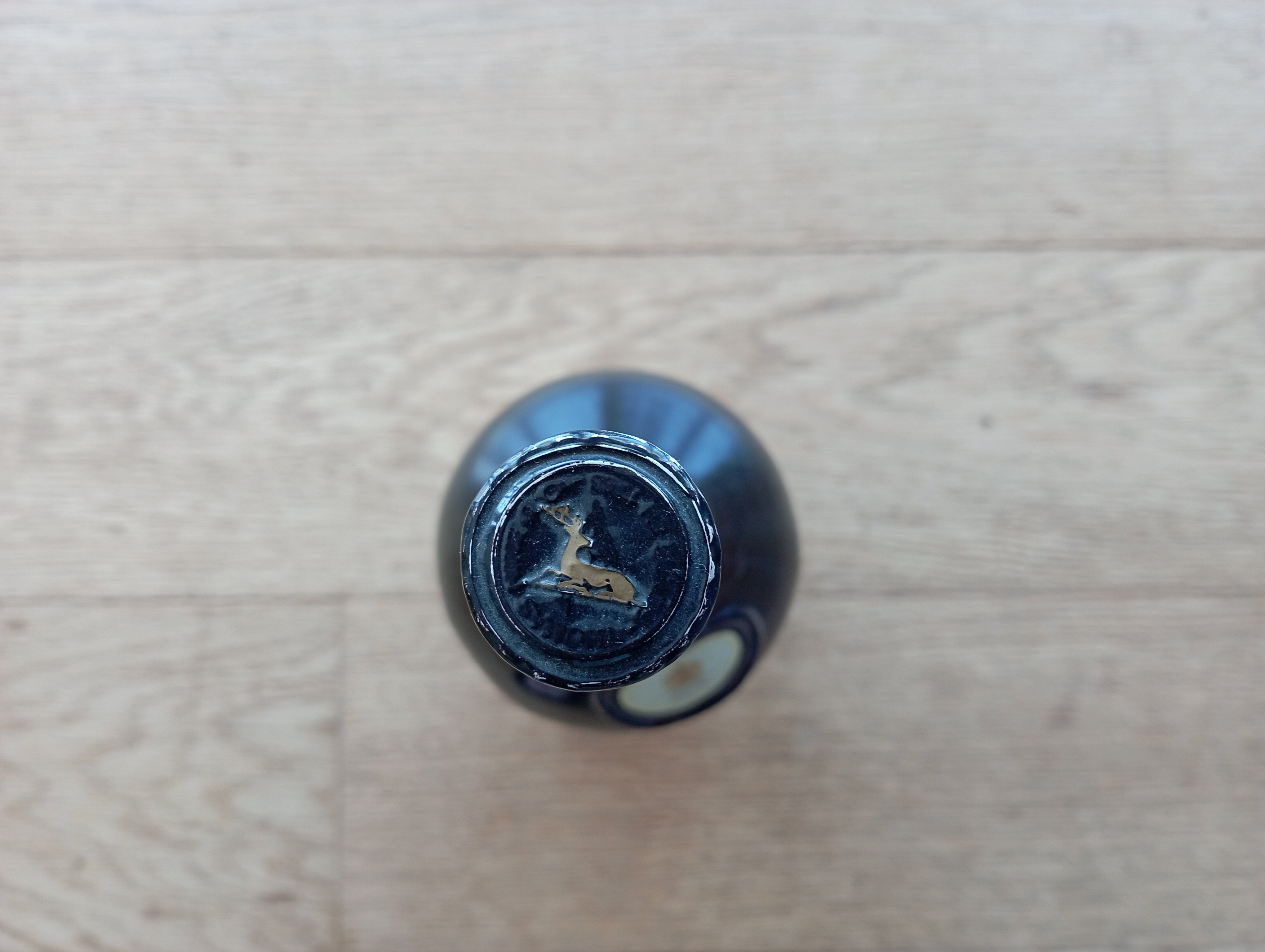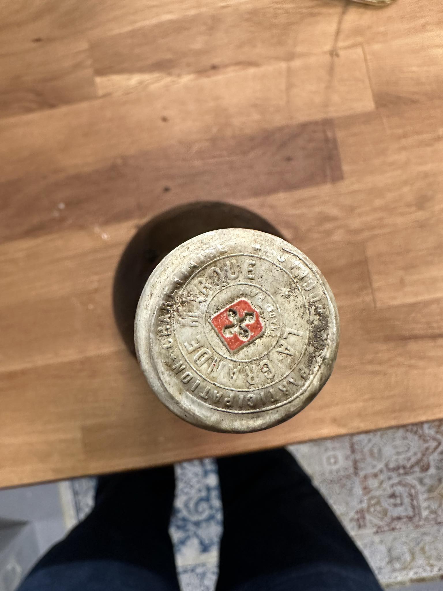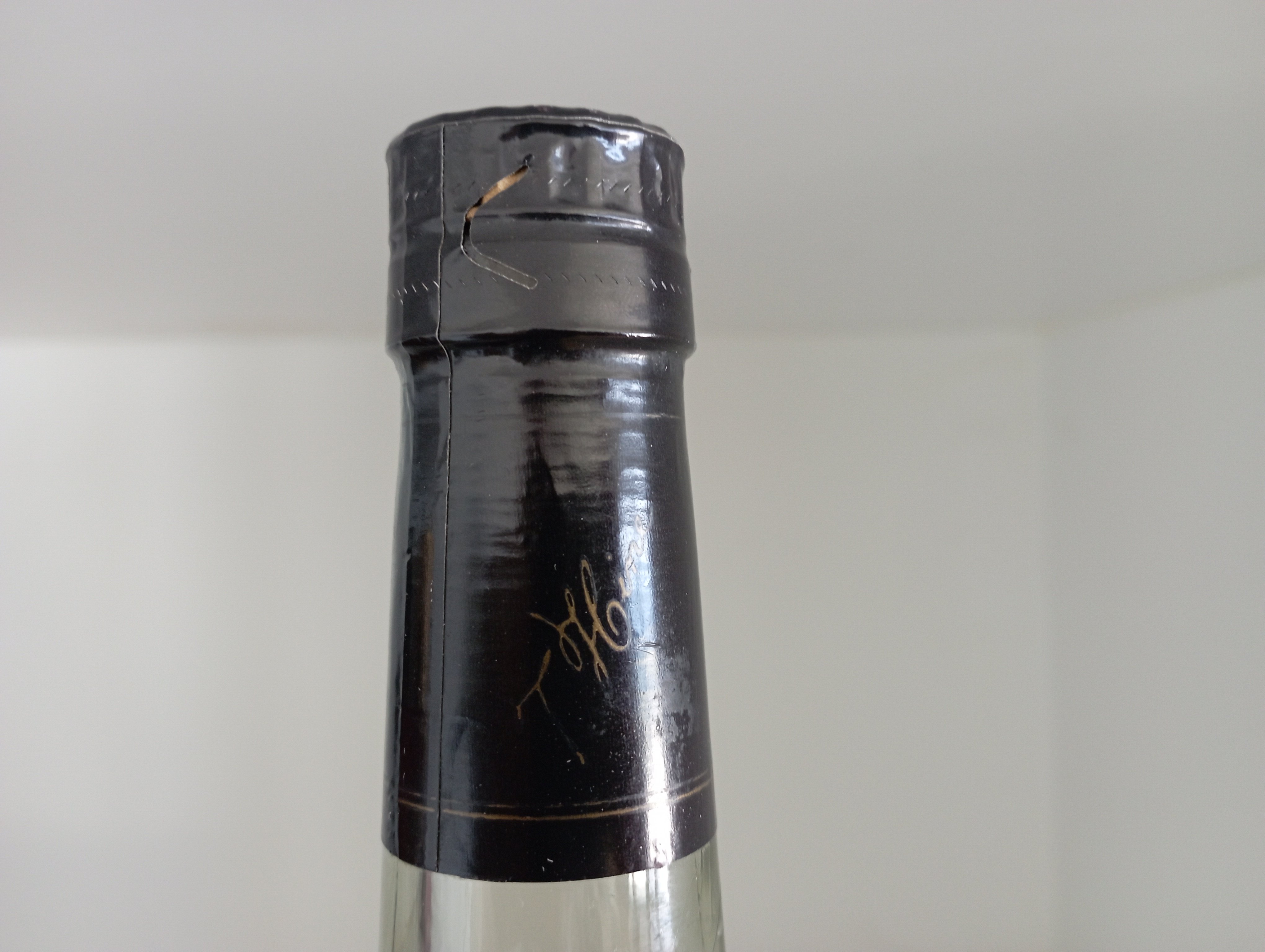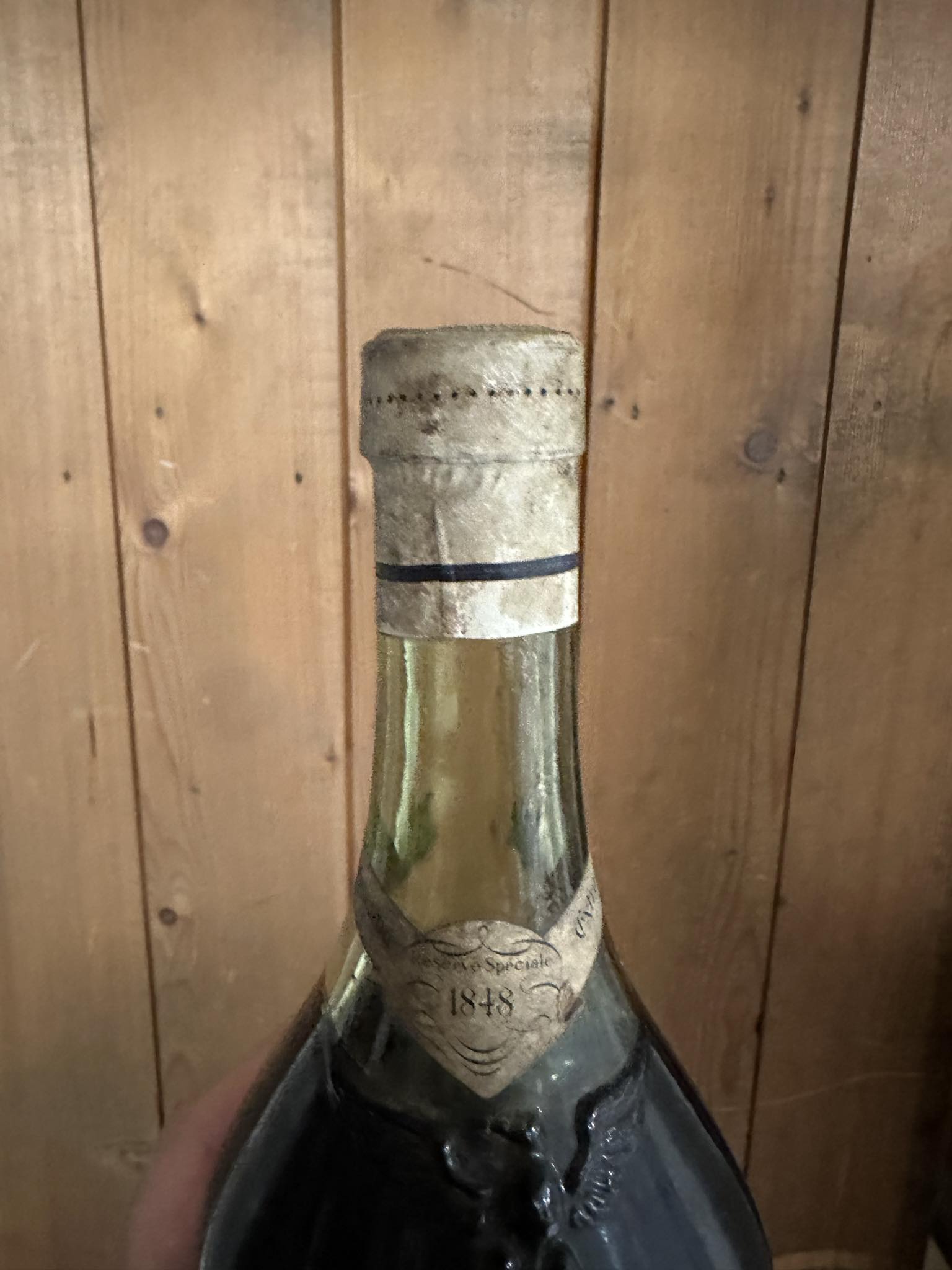 - Found in the basement of a relative. She got it as a gift several decaed ago. Put it in her wine cellar, and forgot about it.