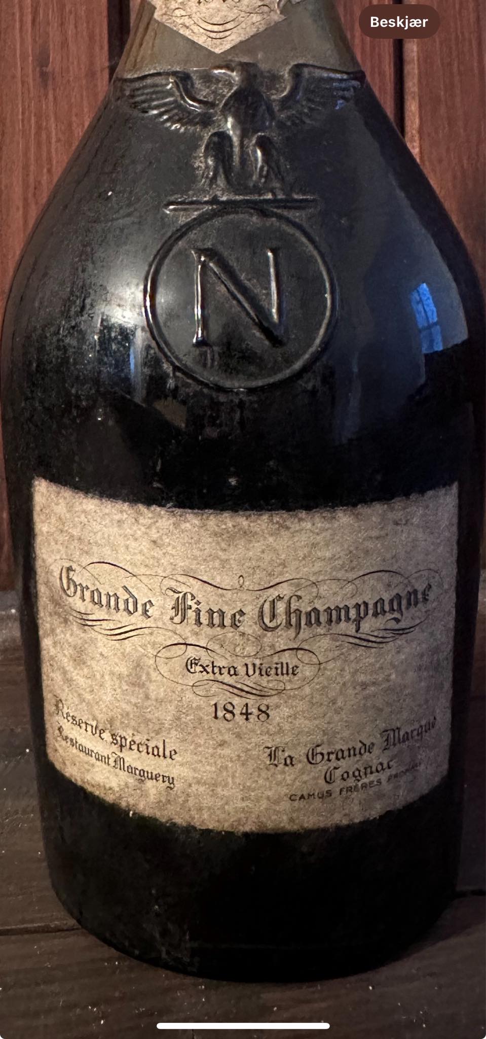 - Grande Fine Champagne, Extra Vielle. 1948 La Grande Marques, Cognac Camus Reserve Spesial, Restaurant Marquery It also have the N monogram for Napoleon and Eagle in the glass