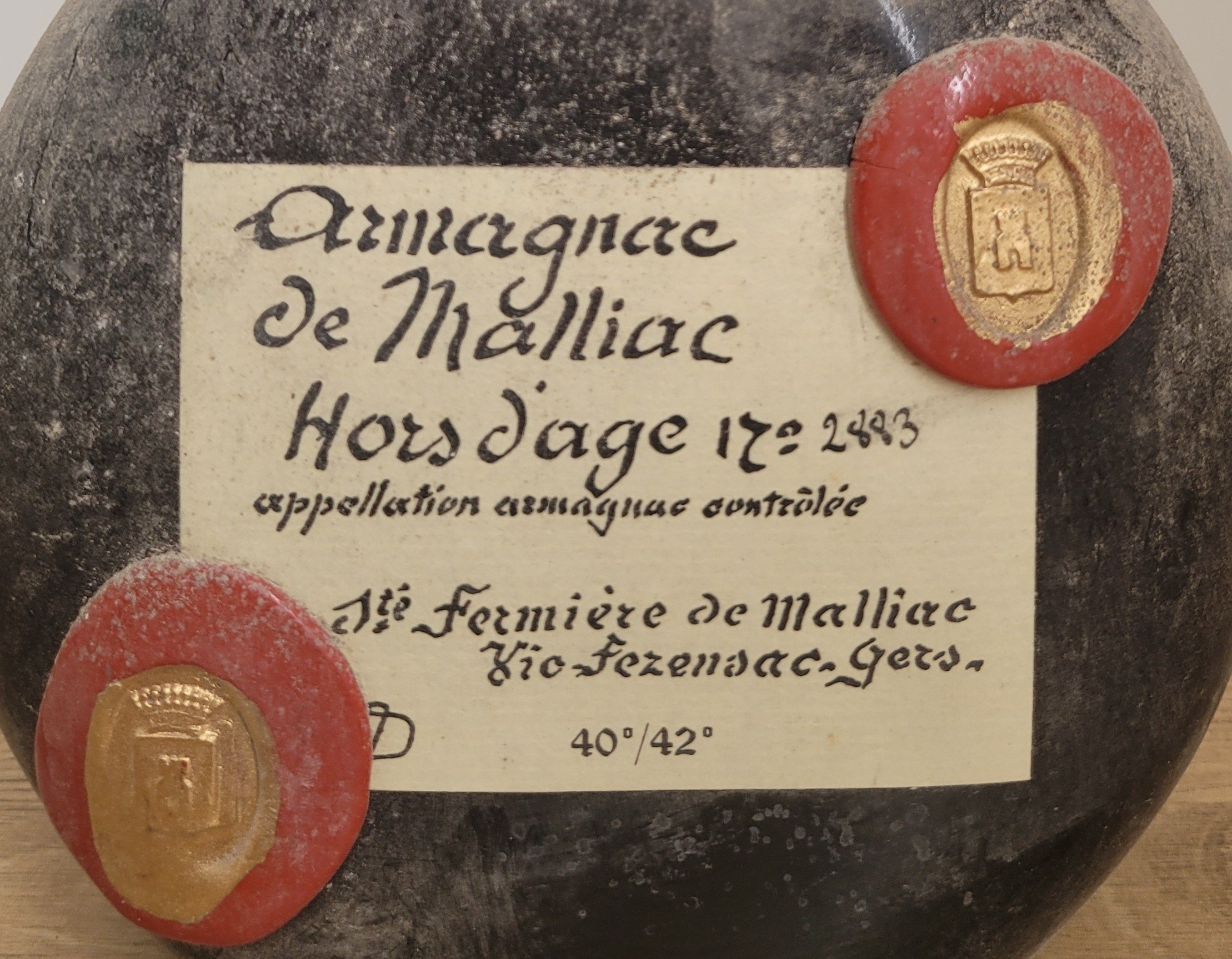 - Armagnac de Malliac Hors d'age N° 2883 appellation armagnac contrôlée Ste Fermière de Malliac 40°/42°