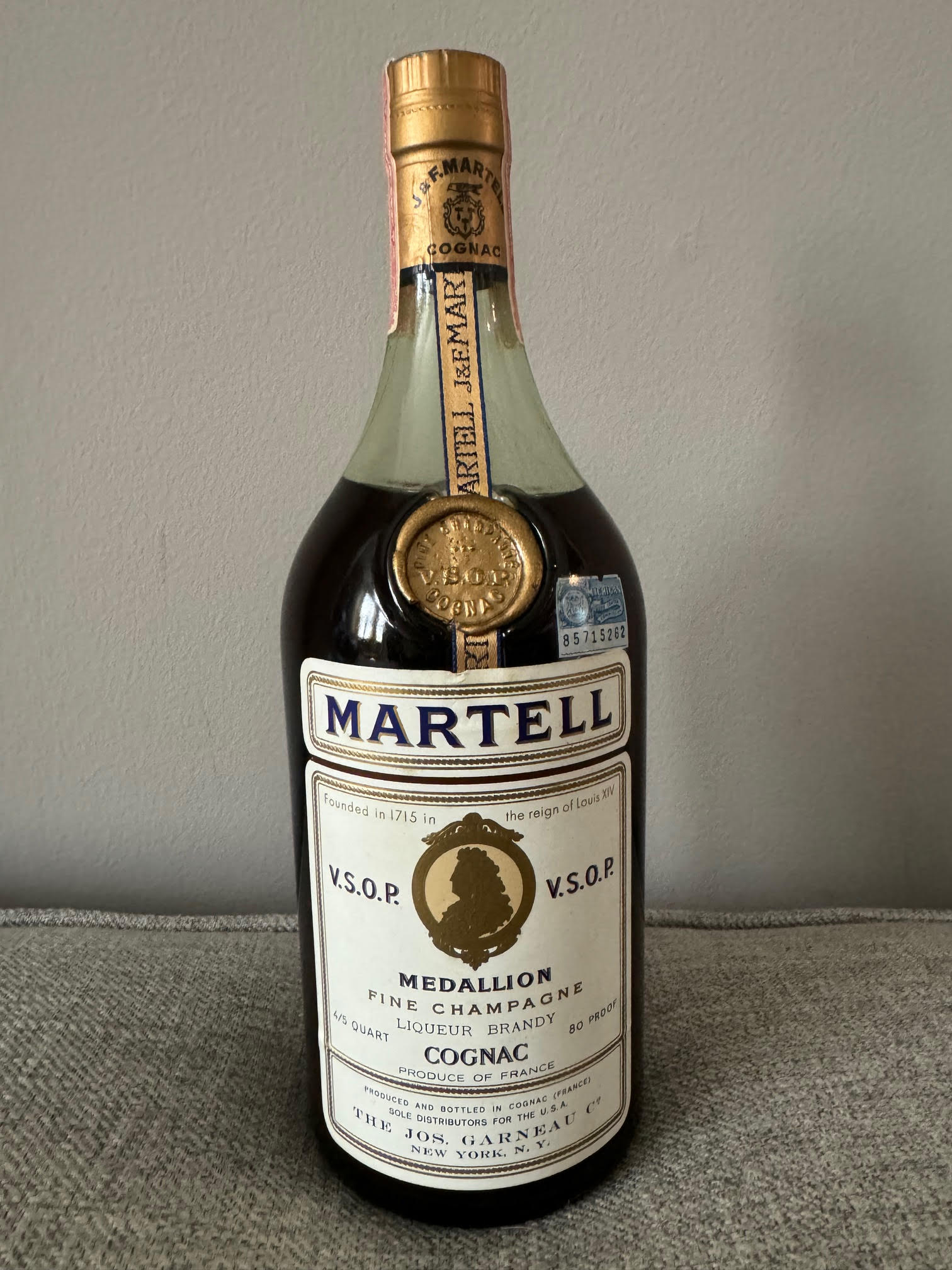 - J&F Martell Martell V.S.O.P Medallion Fine Champagne Liqueur Brandy 4/5 Quart 80 Proof Cognac Produce of France. There is also a Michigan label with 85715262 on it.