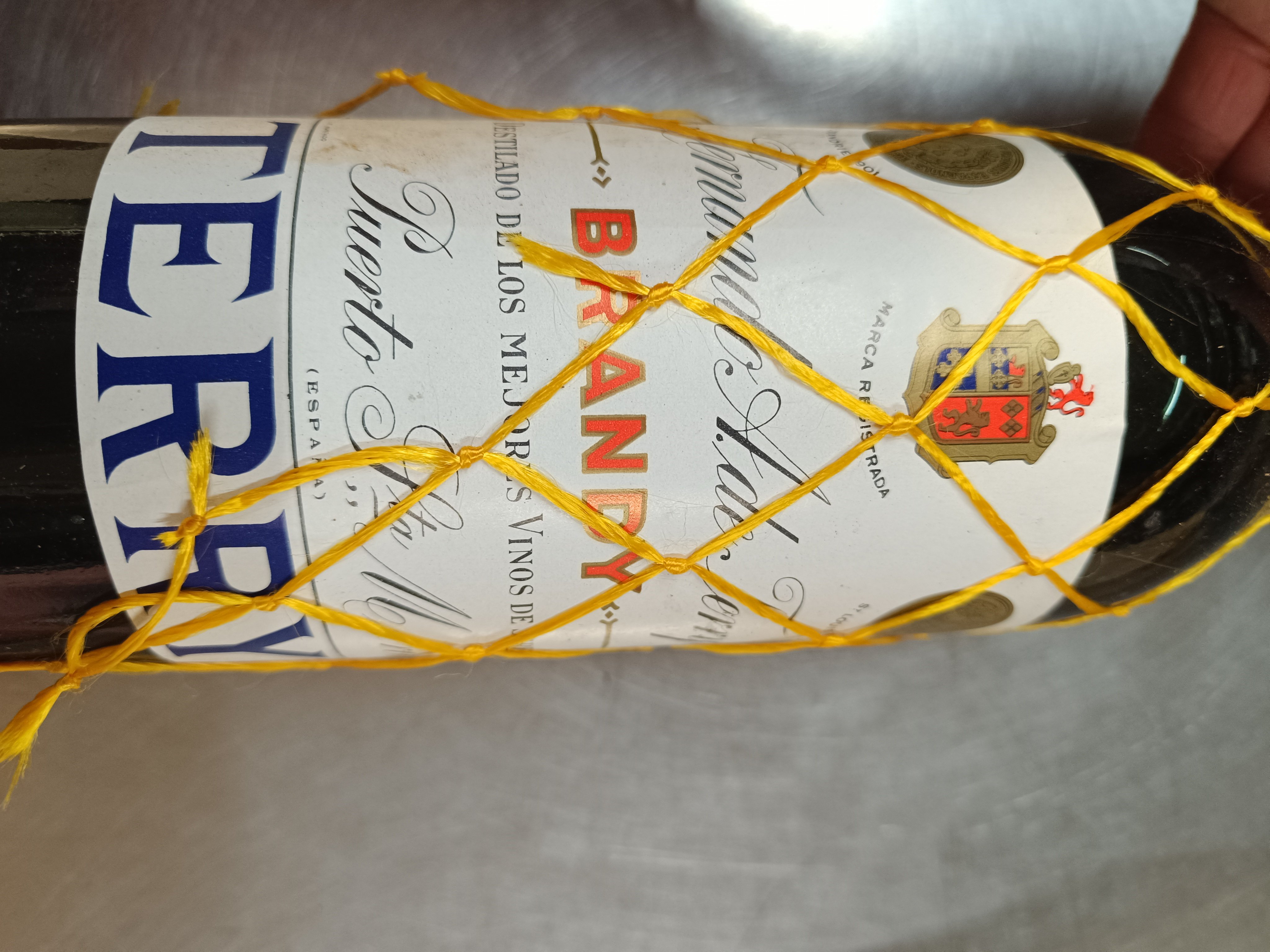 - Estamos recogiendo un antiguo edificio que se ha vendido y apareció en el bajo una caja de madera. La hemos abierto y ha aparecido una caja llena de botellas de brandy.