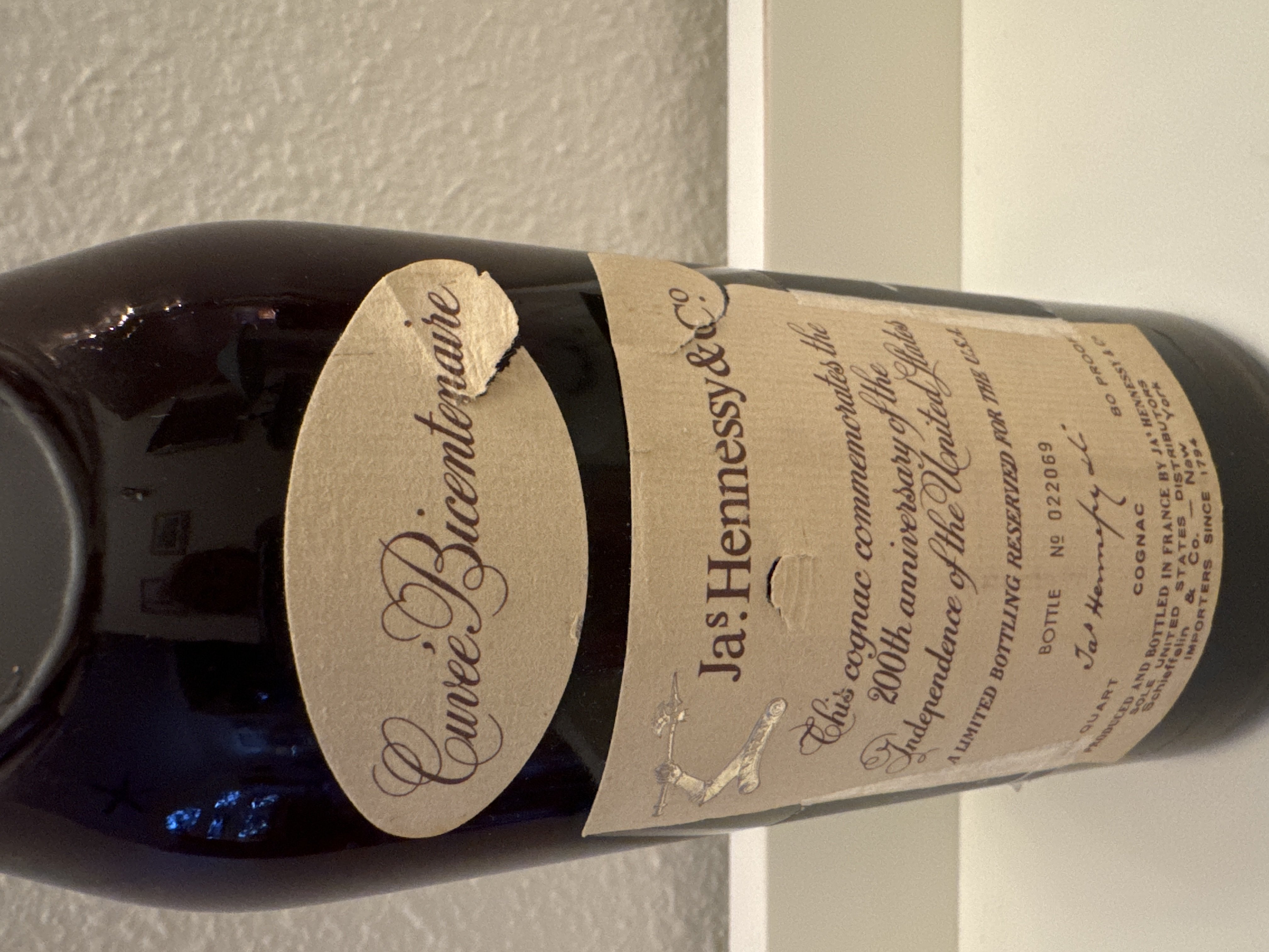 - Cuvee Bicentenaire. This bottle commemorates the 200 anniversary of the independence of the United States. A limited bottling of the USA. Bottle No 022069. Jas Hennessy&Co. 4/5 quart. Cognac. 80 proof. Produced and bottled in France by Jas Hennesssy & Co. Sole United States Distributors. Schieffelin & Co - New York. Importers since1794