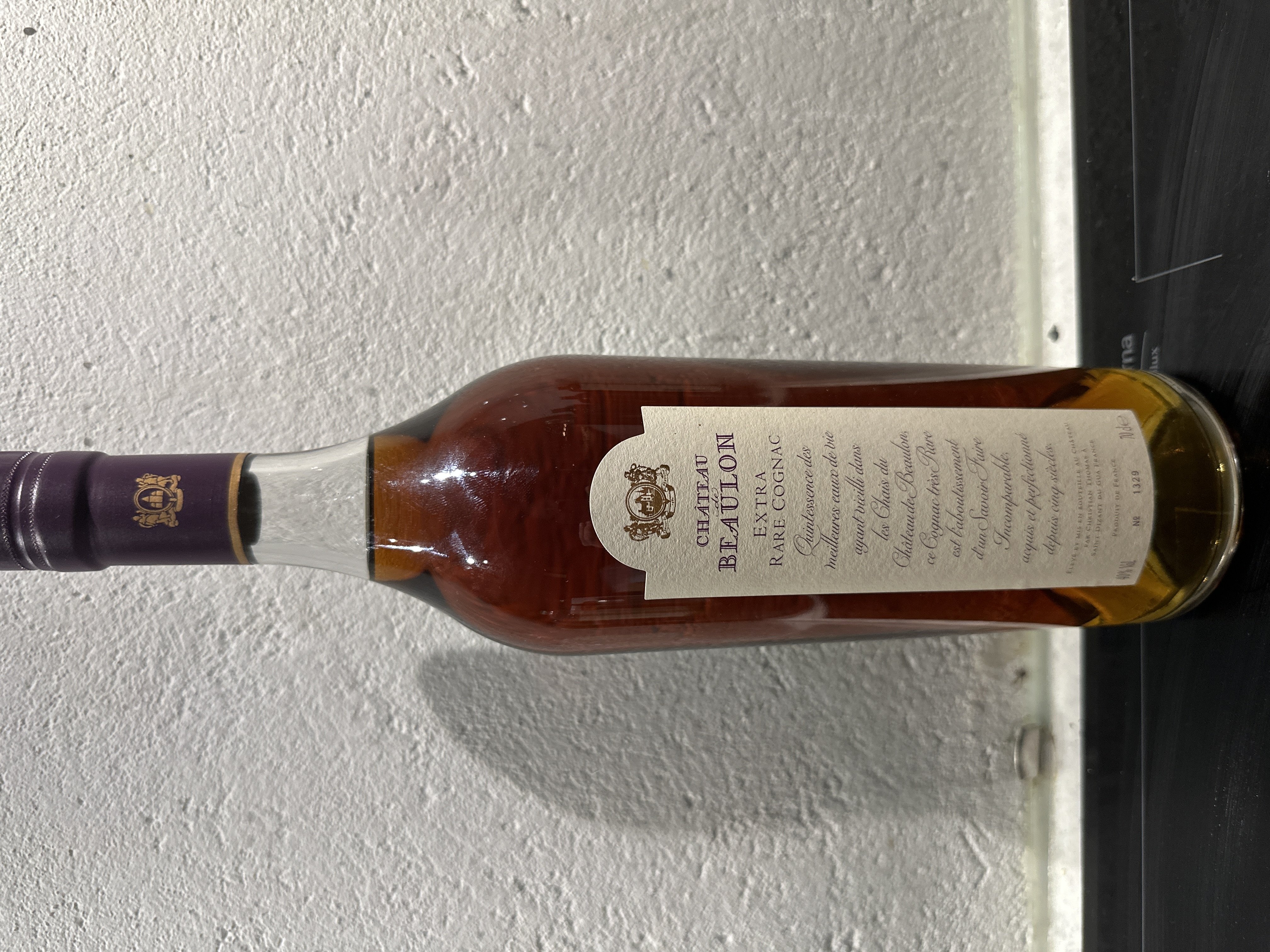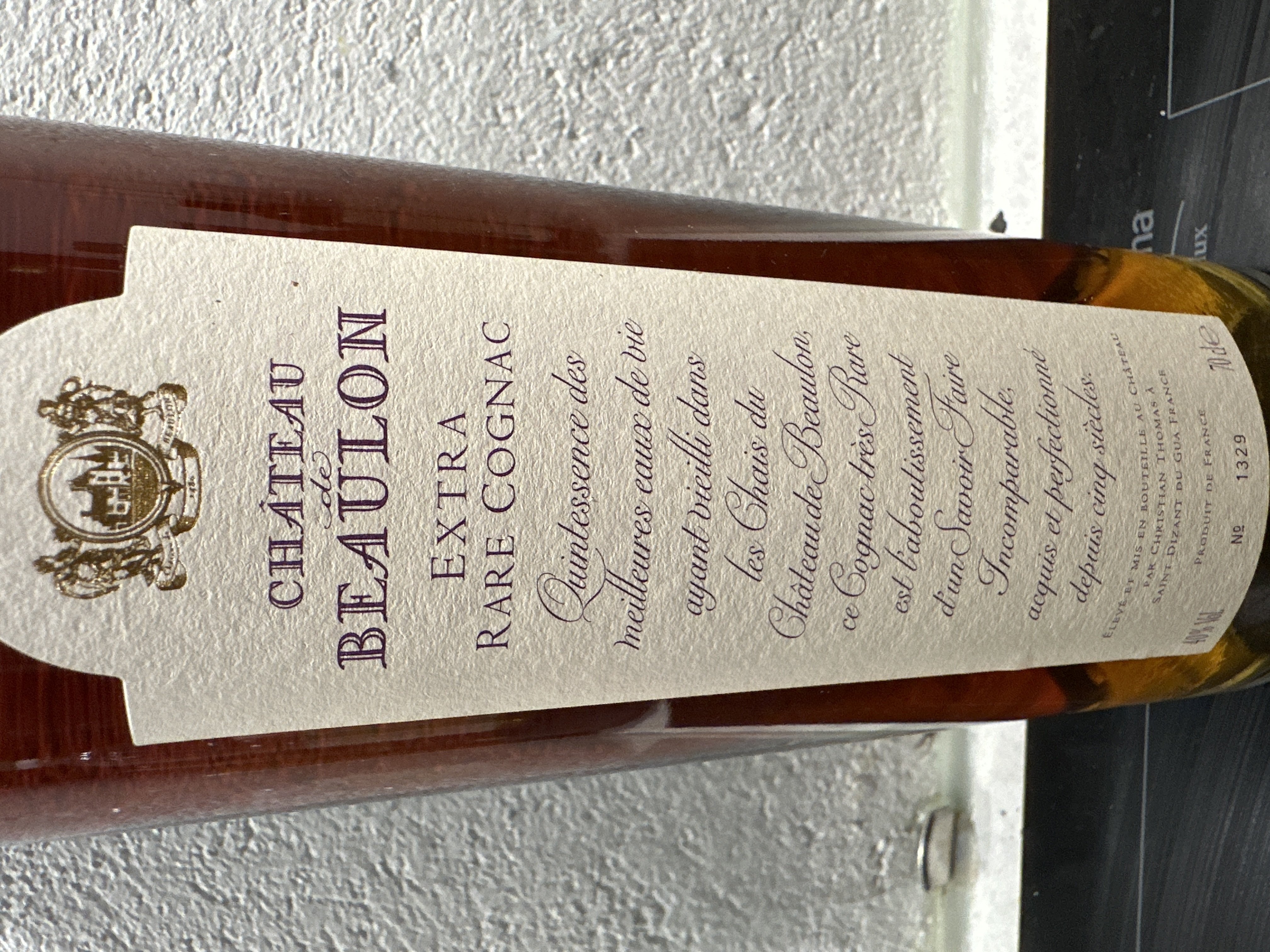 - Château de Beaulon Extra rare cognac Quintessence des mailleures eaux de vie ayant vicilli dans les Chais du Château de Beaulon, ce Cognac très Rare est l’aboutissement d’un Savoir Faire Inconparable, aquis et perfectionné depuis cinq sïecles. Élevé et mis en bouteille au Château par Christian Thomas à Saint Dizant du Gua France Produit de France