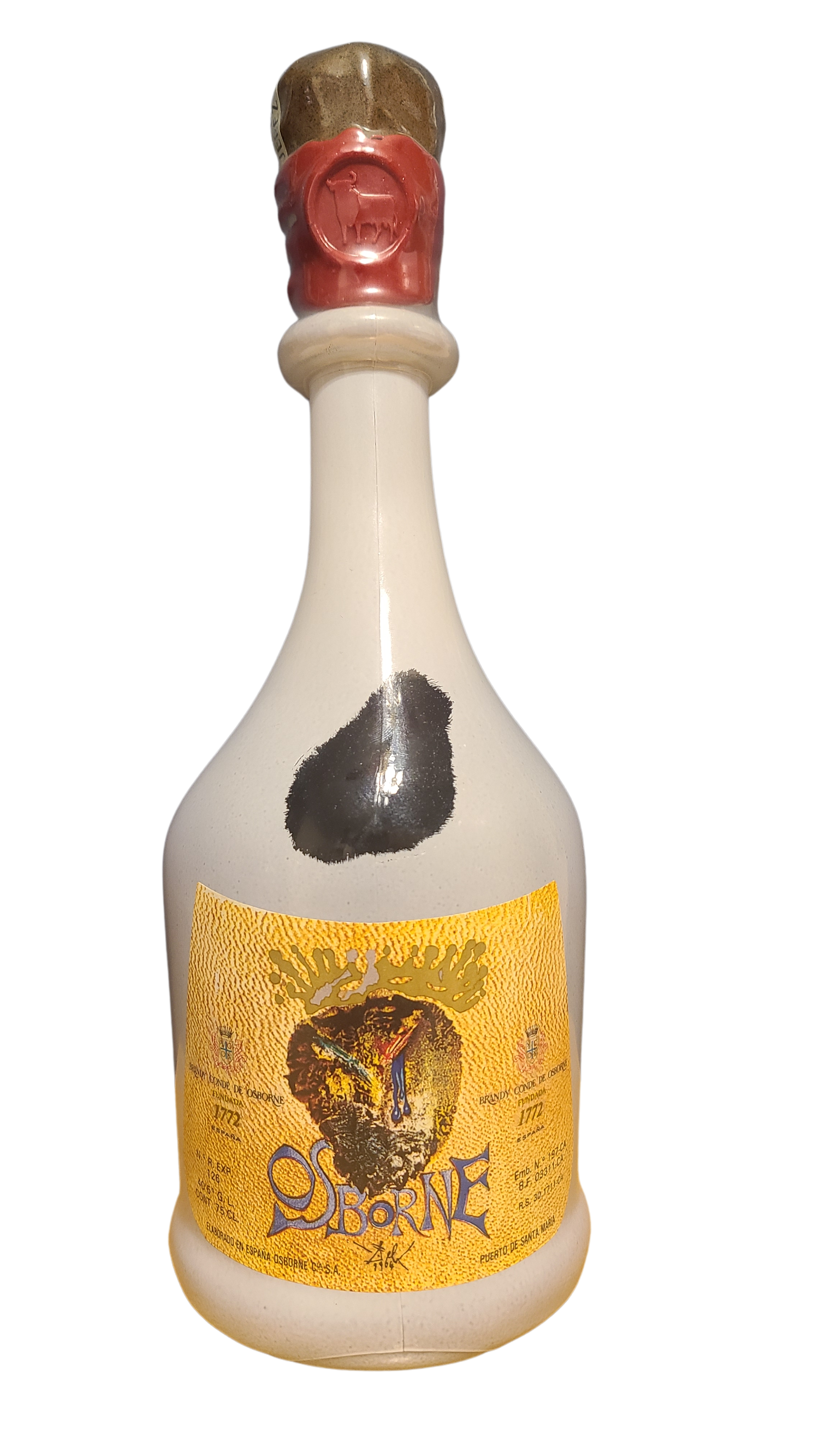 - My grandparents were gifted this bottle by their friends from Spain in the 1980's, they couldn't tell me the year exactly. They kept it in its original packaging and never opened it, and it was stored in a cool dry storage area in their home in Colorado. They gave it to me, hoping I could figure out if it was worth selling, and if not they know I'd enjoy it myself. The bottle itself was designed by Salvador Dali, and it's still sold today, though I couldn't find a consistent price for the bottle I have. It has a bull on the stamp, and they told me that there are bottles with other stamps. It looks like it says 1964 on the label under the signature at the bottom, but I could be reading that wrong so I was hesitant to put it definitively in the section for the label.