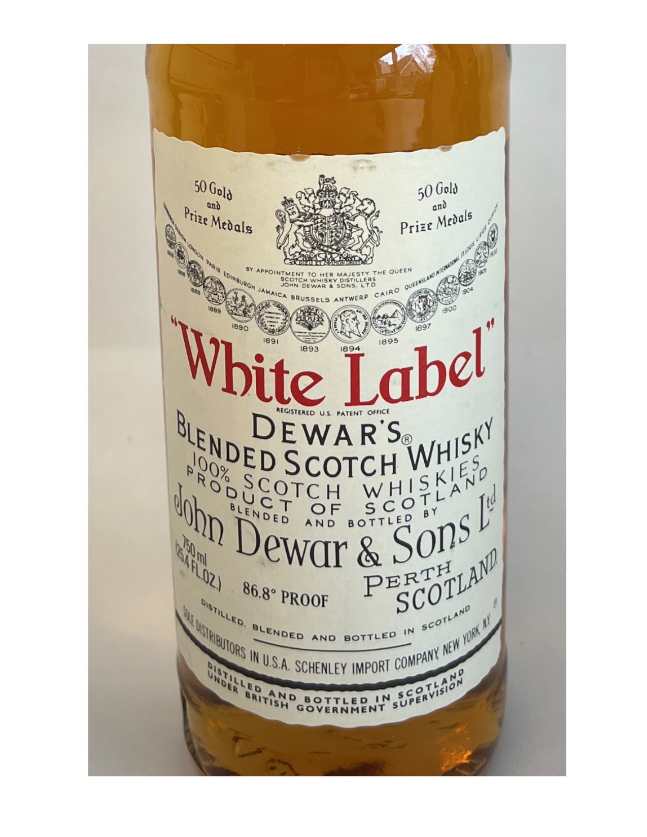 - By appointed to her Majesty the Queen. White Label Dewar's Blended Scotch Whisky Product of Scotland. Blended and Bottled By John Dewar & Sons Ltd Perth Scotland