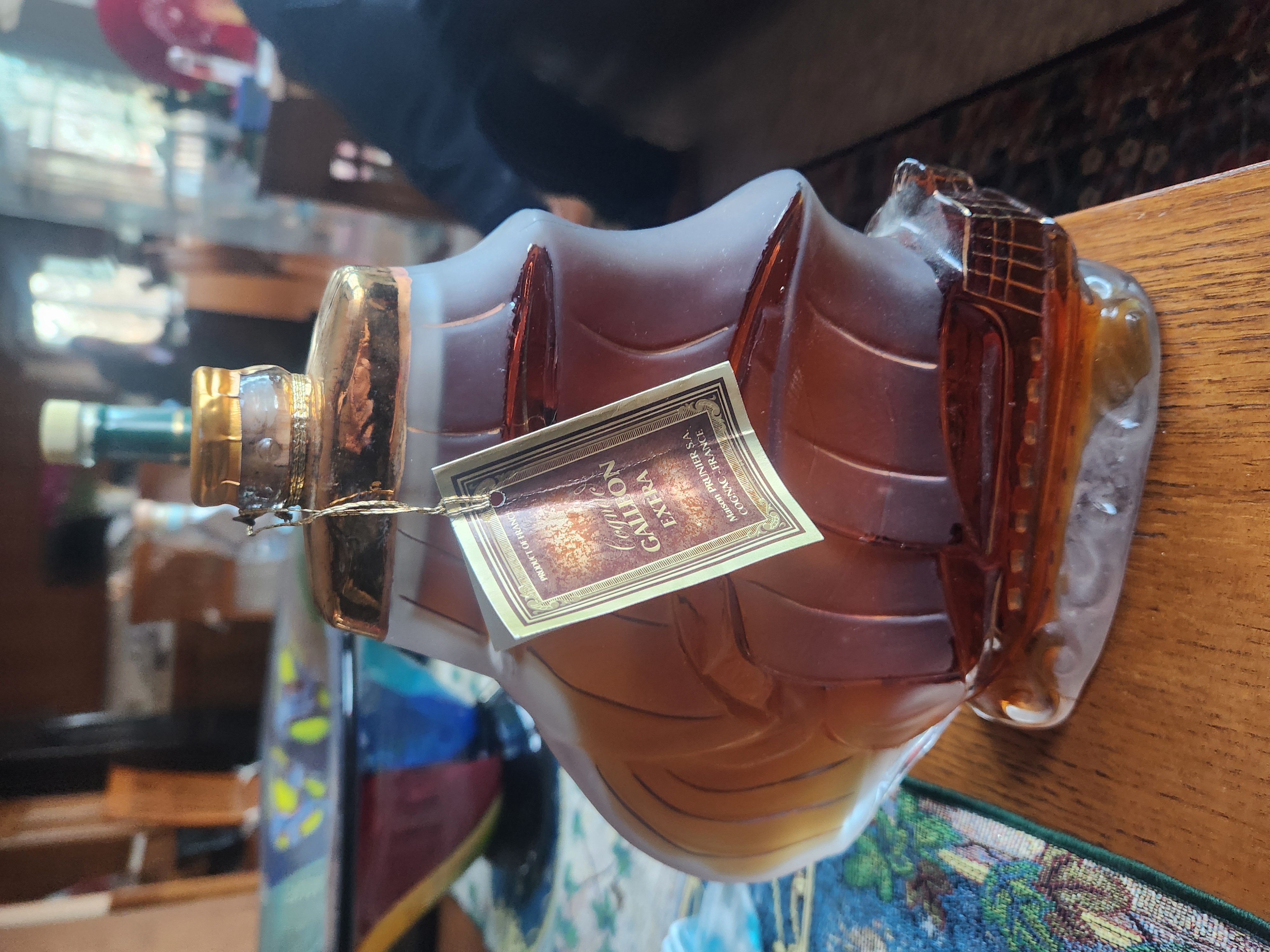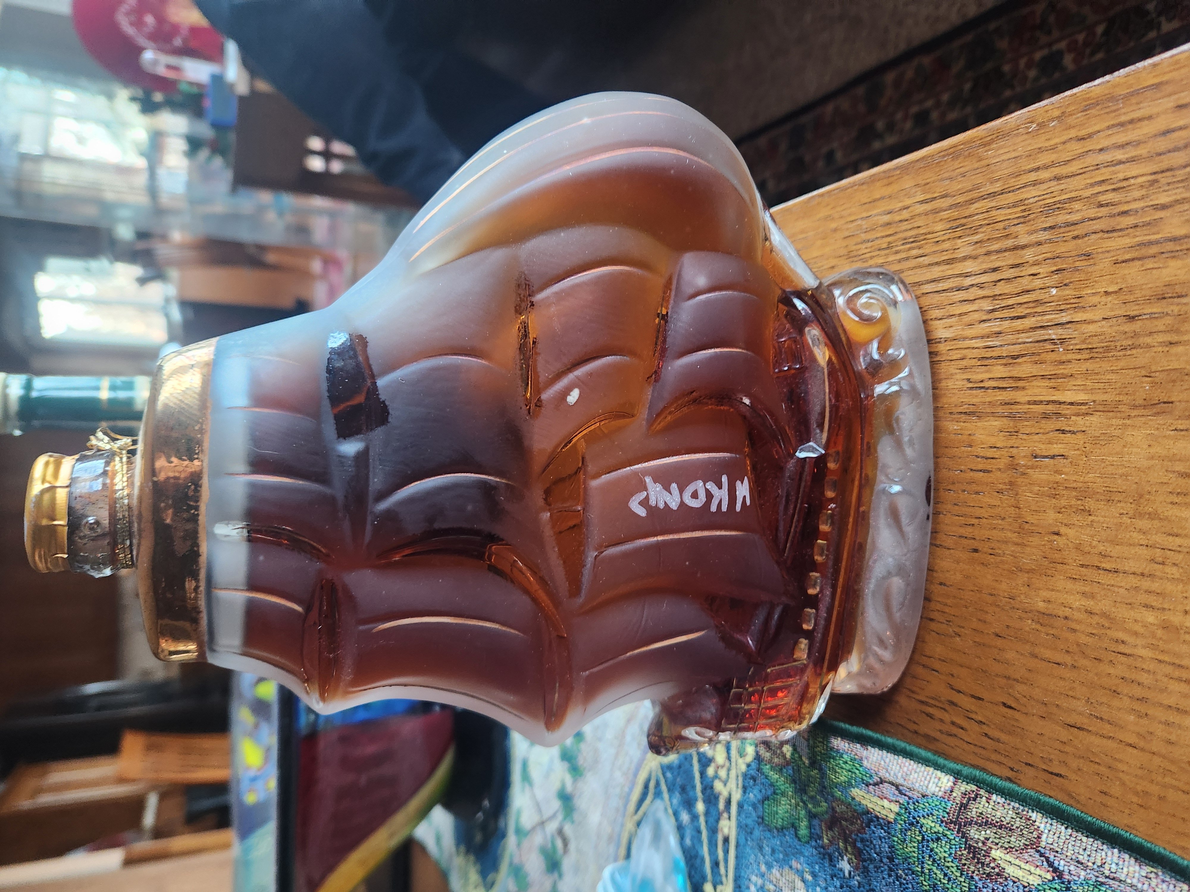 - I don't have it at my location at the moment. The only photo I have saved on my phone is the auction photo. It has a plexiglass cover that still has the protective plastic covering it. It is in excellent condition and was displayed in the previous owner's home and has been displayed in mine since purchased in 2016. It may be rare (you would know better than I) but I have never seen another like it. I don't know the weight of the bottles but they are miniature.