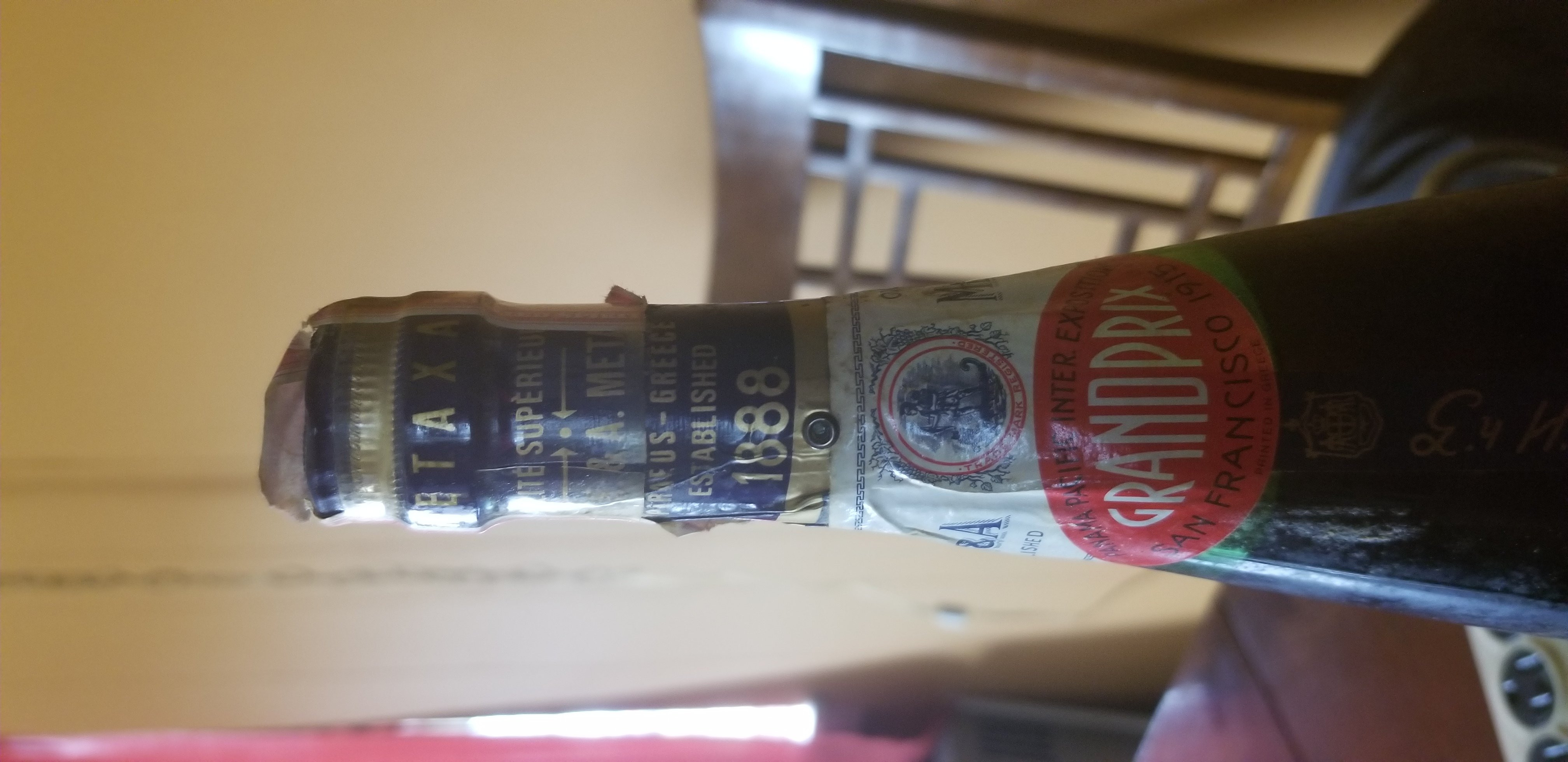 - Panama Pacific inter. Exposition Grandprix San Francisco 1915 Metaxa A Greek specialty liqueur Product of Greece