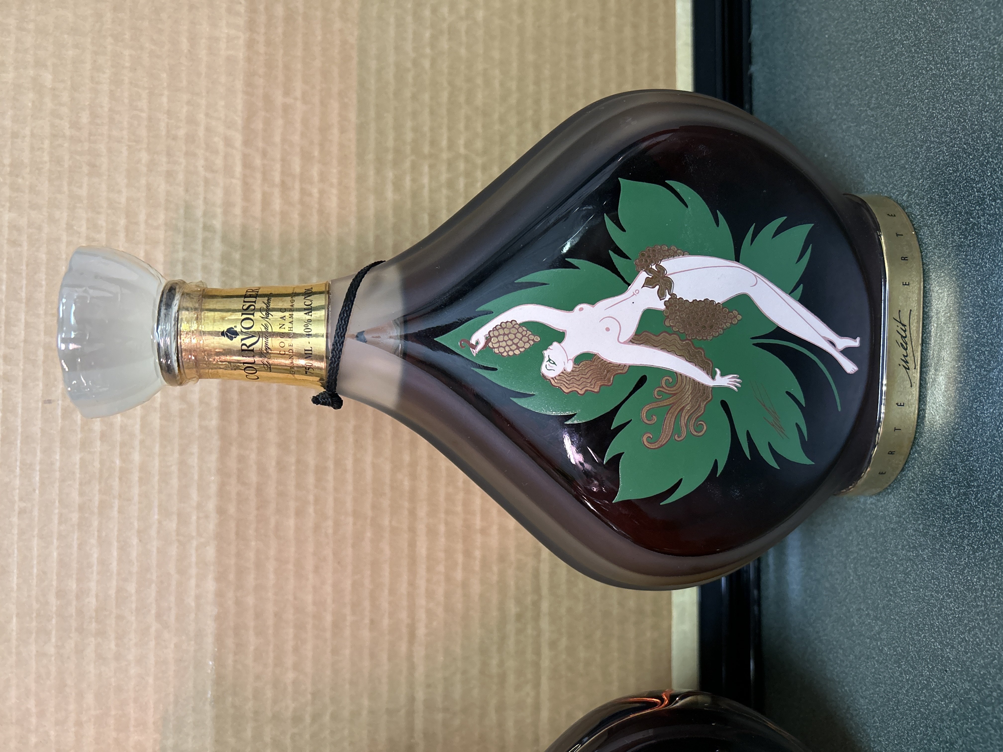 - There are 8 bottles and each has a different picture painted on it. And says collection Erte on the base of the bottles