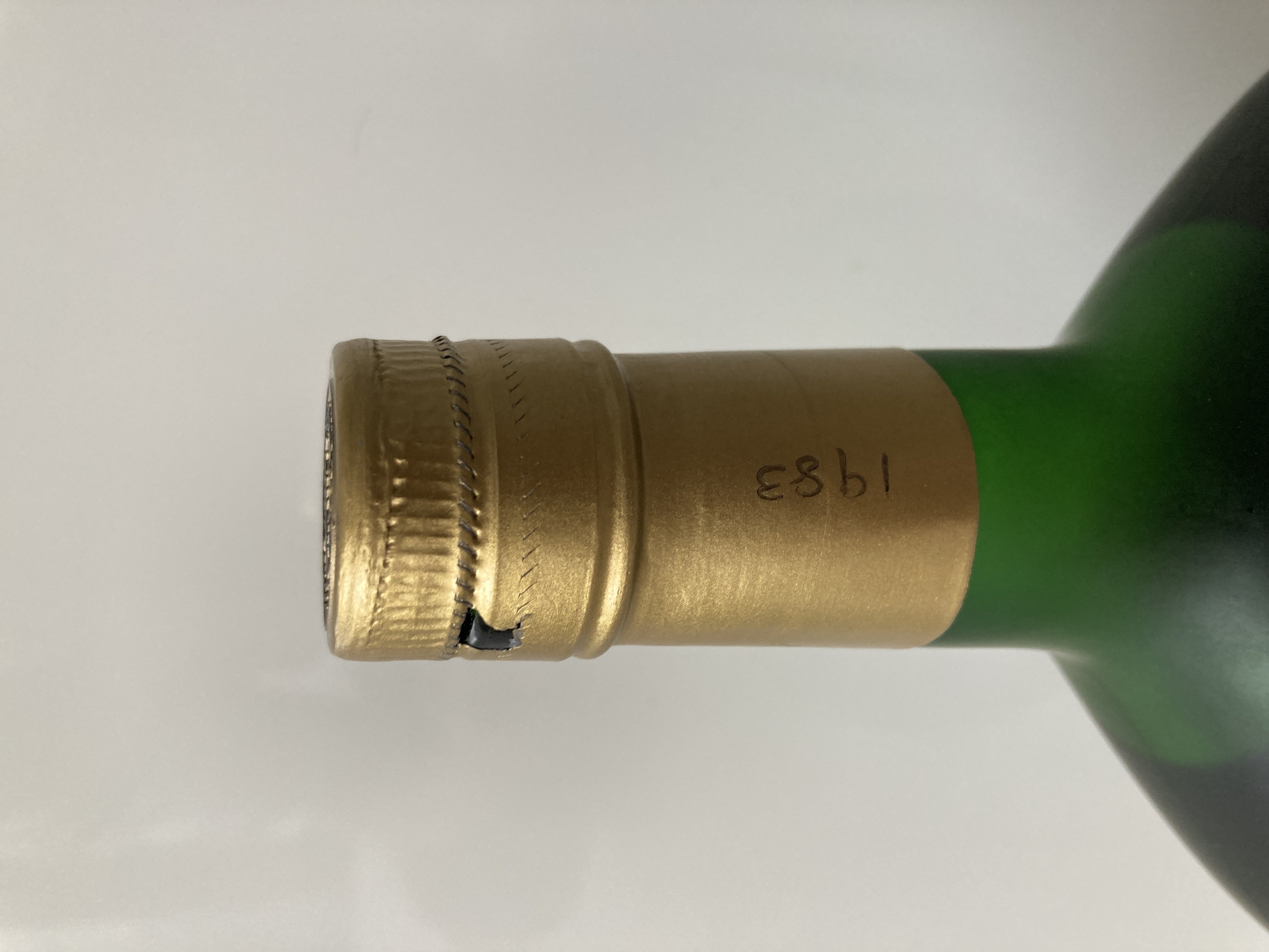- Bottle given to my father by a customer of the business he worked for. Mum has written 1983 on the metal foil.