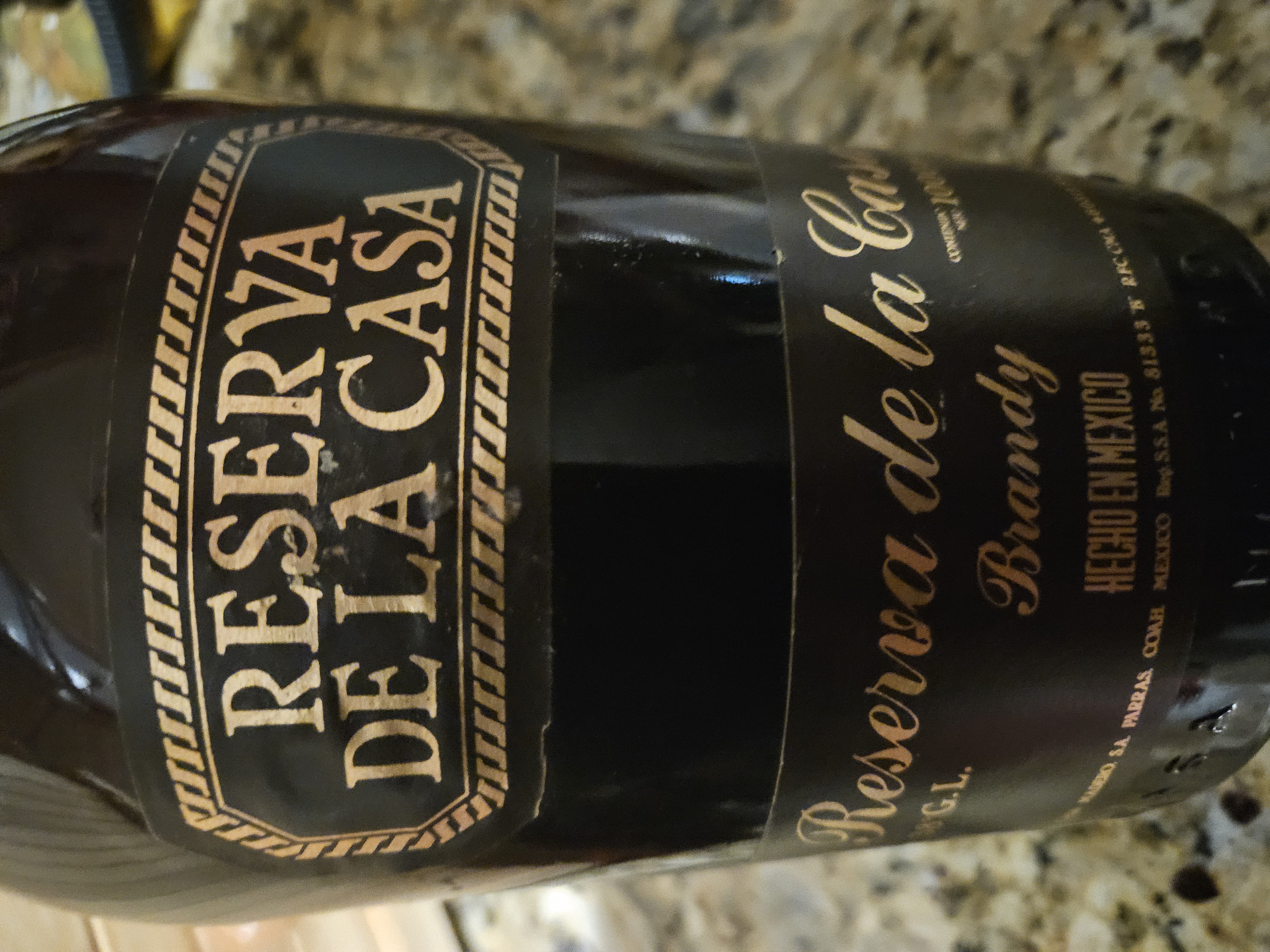 - Reserva De La Casa Reserva De La Casa Brandy 38°G.L. 1000mL Hecho En Mexico Casa Madero SA Parras coah mexico Reg ssa No. 81333 "B" RFC CMA 460313 BNL MR