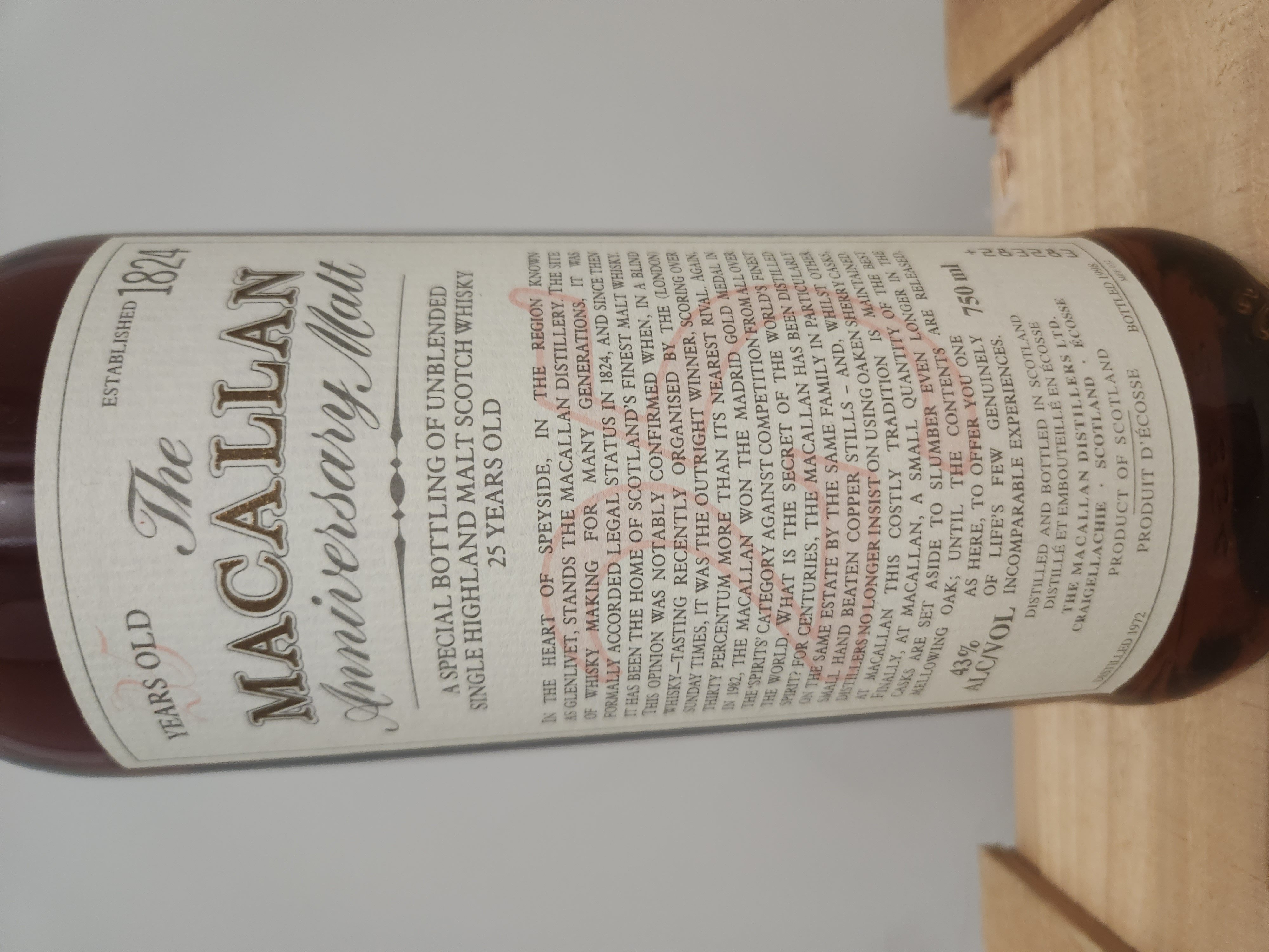 - The Macallan anniversary malt 25 years old "Story of the Macallan distillery." Distilled 1972, bottles 1998 +283283