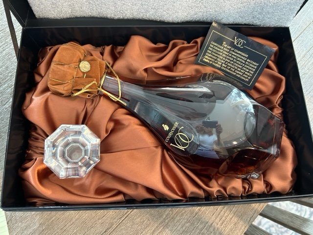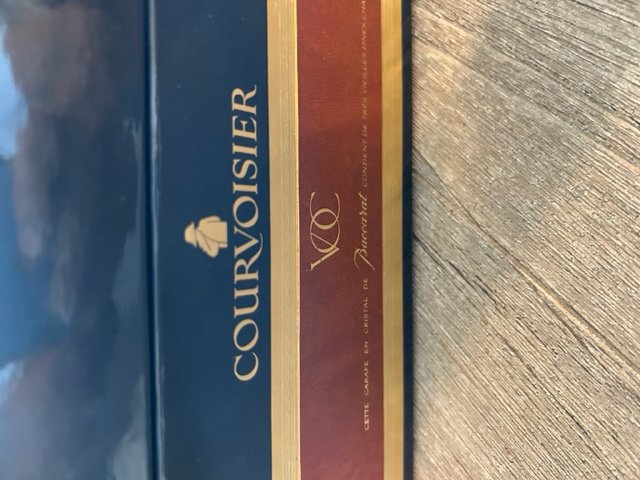 - Courvoisier VOC baccarat I cannot give you a weight of the liquor, I have no idea. It is tied down in the box. The box is in perfect condition and it has never come out of the box