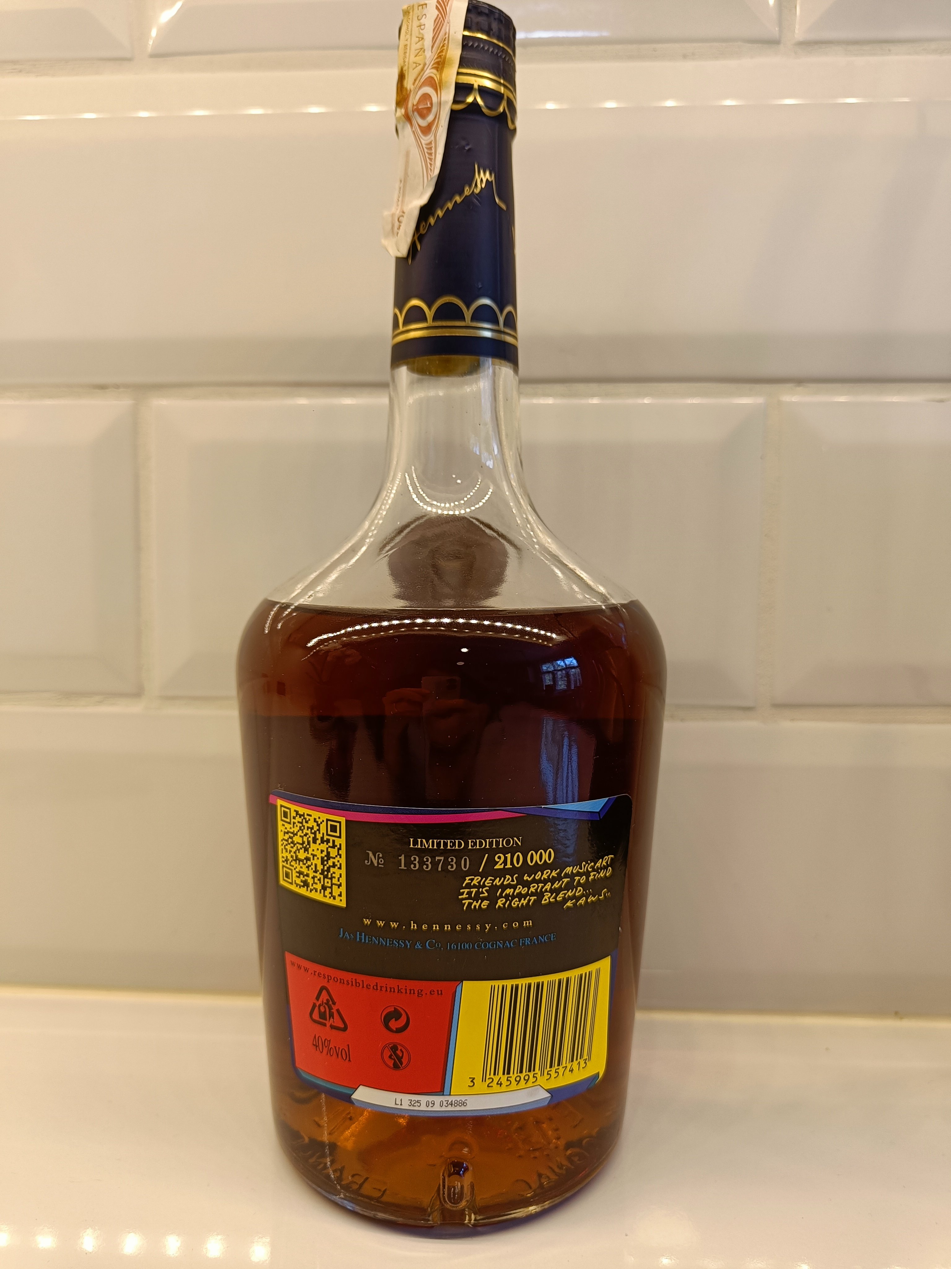 - Maison Fondee en 1765. HENNESSY VERY SPECIAL COGNAC. JAs HENNESSY & CO. Produced and bottled in Cognac, France. 40% vol 100cl. Limited Edition No 133730/210000. Friends work music art it´s important to find the right blend...KAWS..