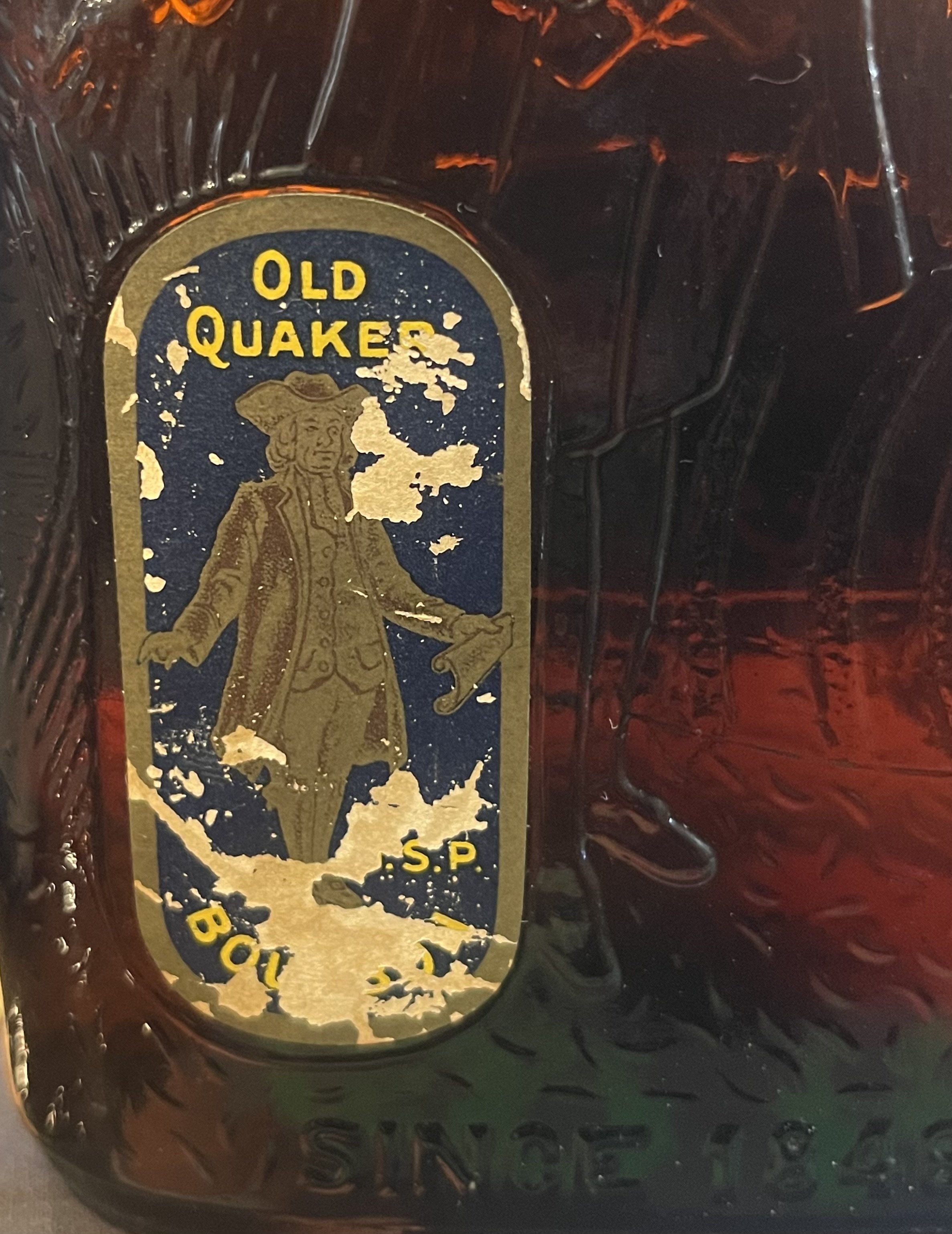 - Front: "Old Quaker Bourbon" "U.S.P." Front and Back: Since 1846 (2x) Bottom: Full Pint 4 Back: full description of contents and bottling info