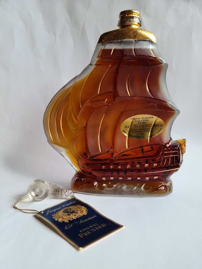 - Jacques Cartier 450eme anniversaire Cognac Prunier Cognac Galion Galleon Extra 700 ml Product of France 40% alc/ vol Bottled and shipped by Maison Prunier S. A. Cognac , France
