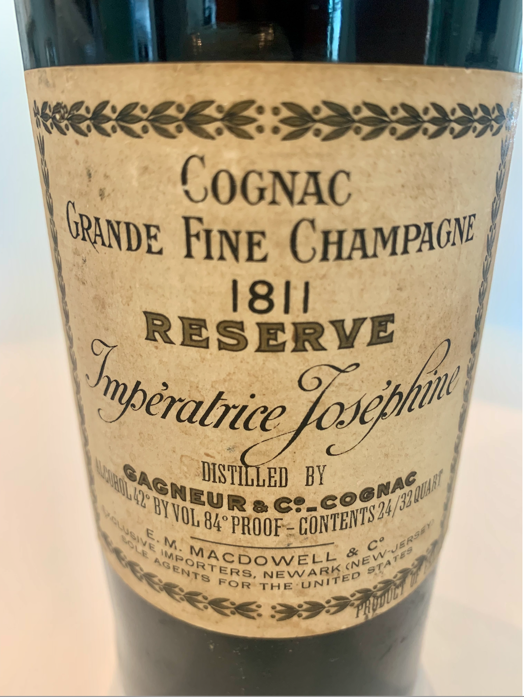 - Cognac, Grande Fine Champagne 1811 Reserve Imperatrice, Instilled by Gagneur & co. cognac, Alcohol 42 by vol 84 proof, contents. 24/34 Quart, E.M. Macdowell &co, exclusive importers, Newark (New Jersey) Sole agents for the United States, product of France