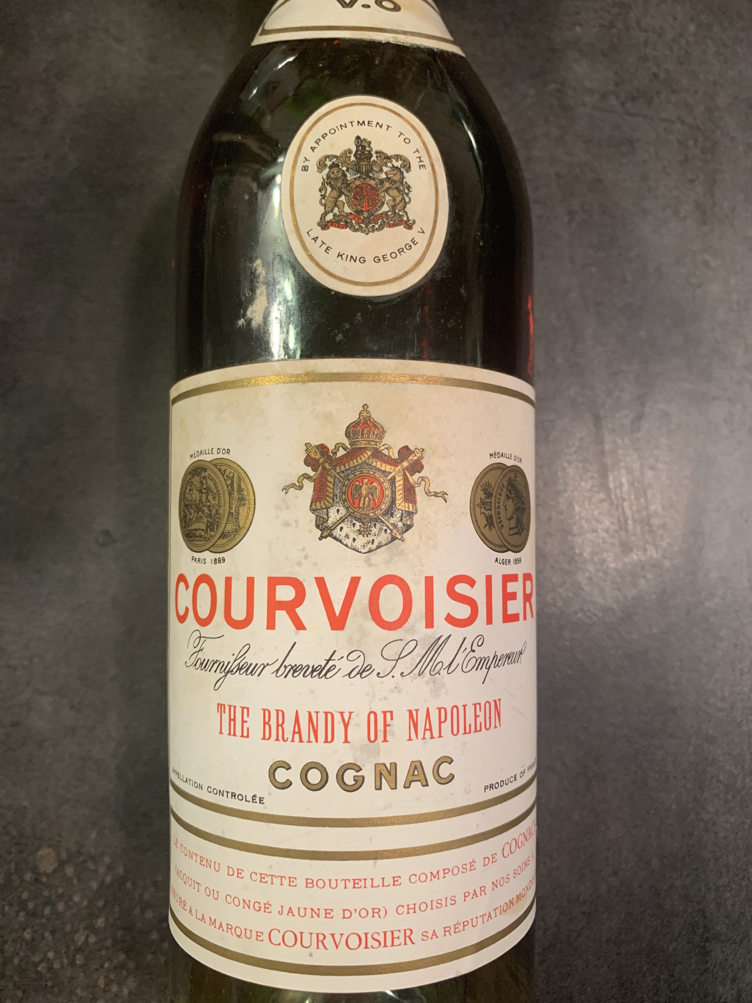 - By appointment of the Late King Geoge V Courvoisier Fournisseur Breveté de L M L'empereur The Brandy of Napoleon Le contenu de cette bouteille composé de COGNAC (Acquit ou congé Jaune d'or) choisis par nos soins a assuré a la marque COURVOISIER sa réputation mondiale.