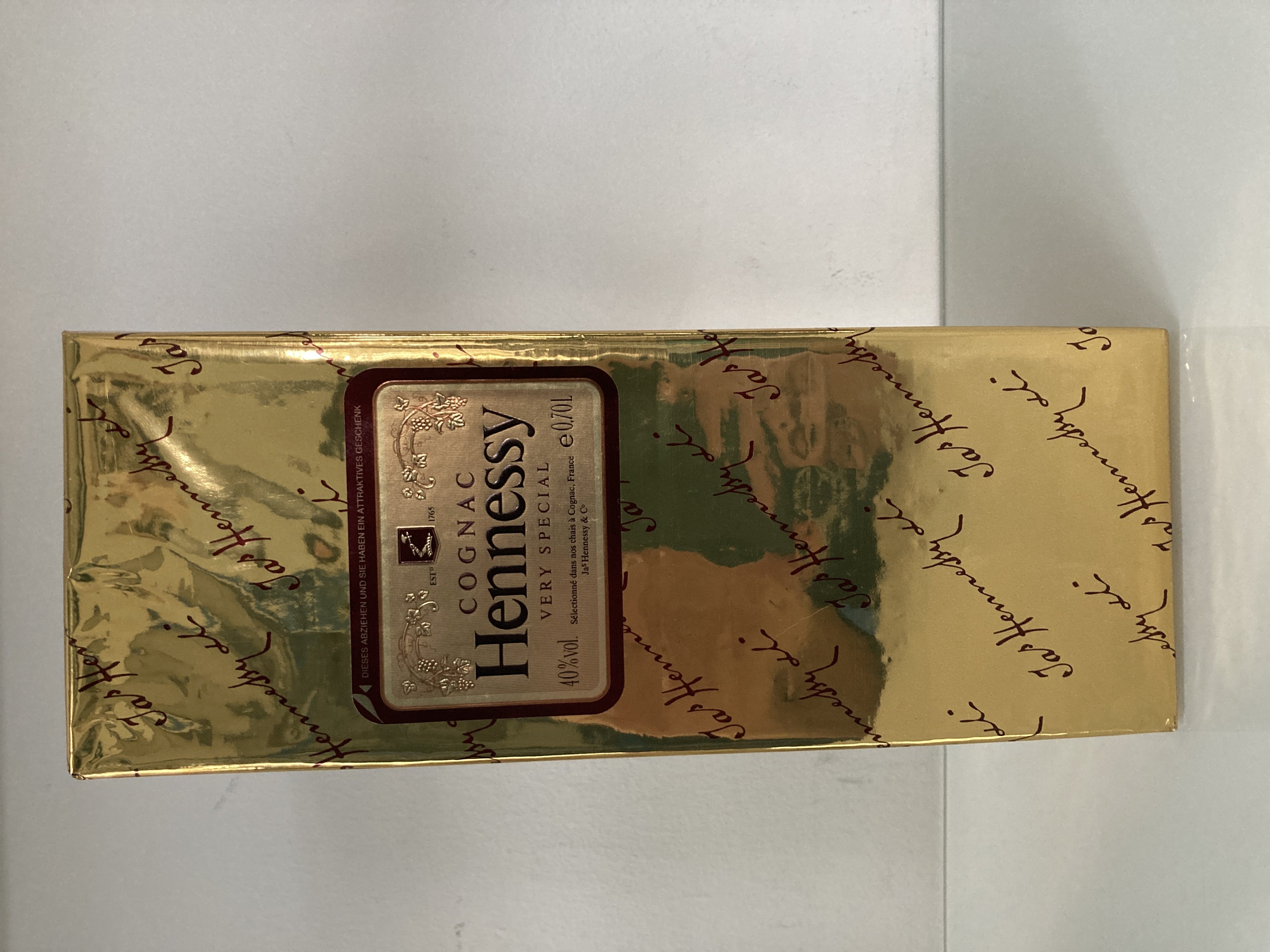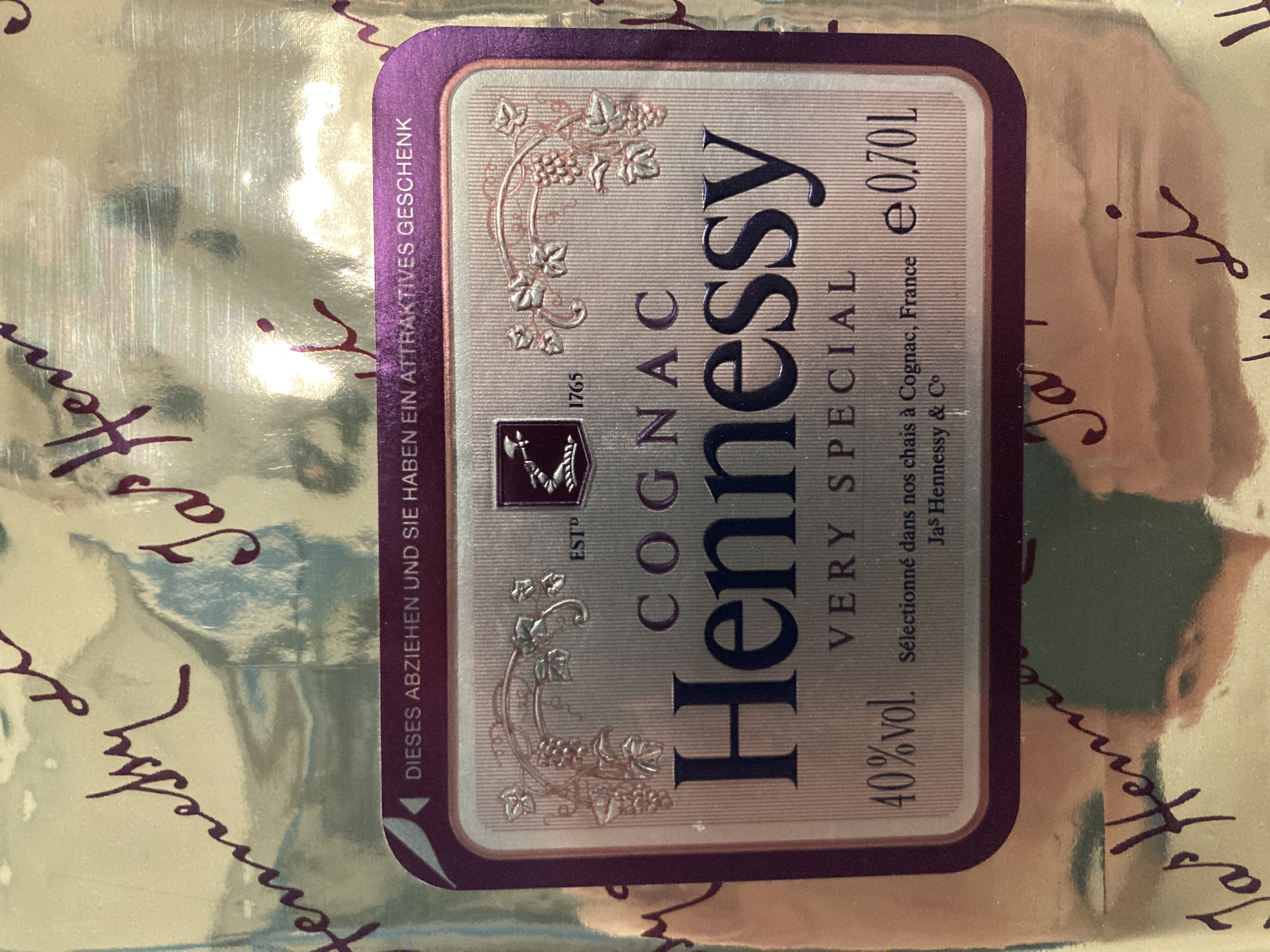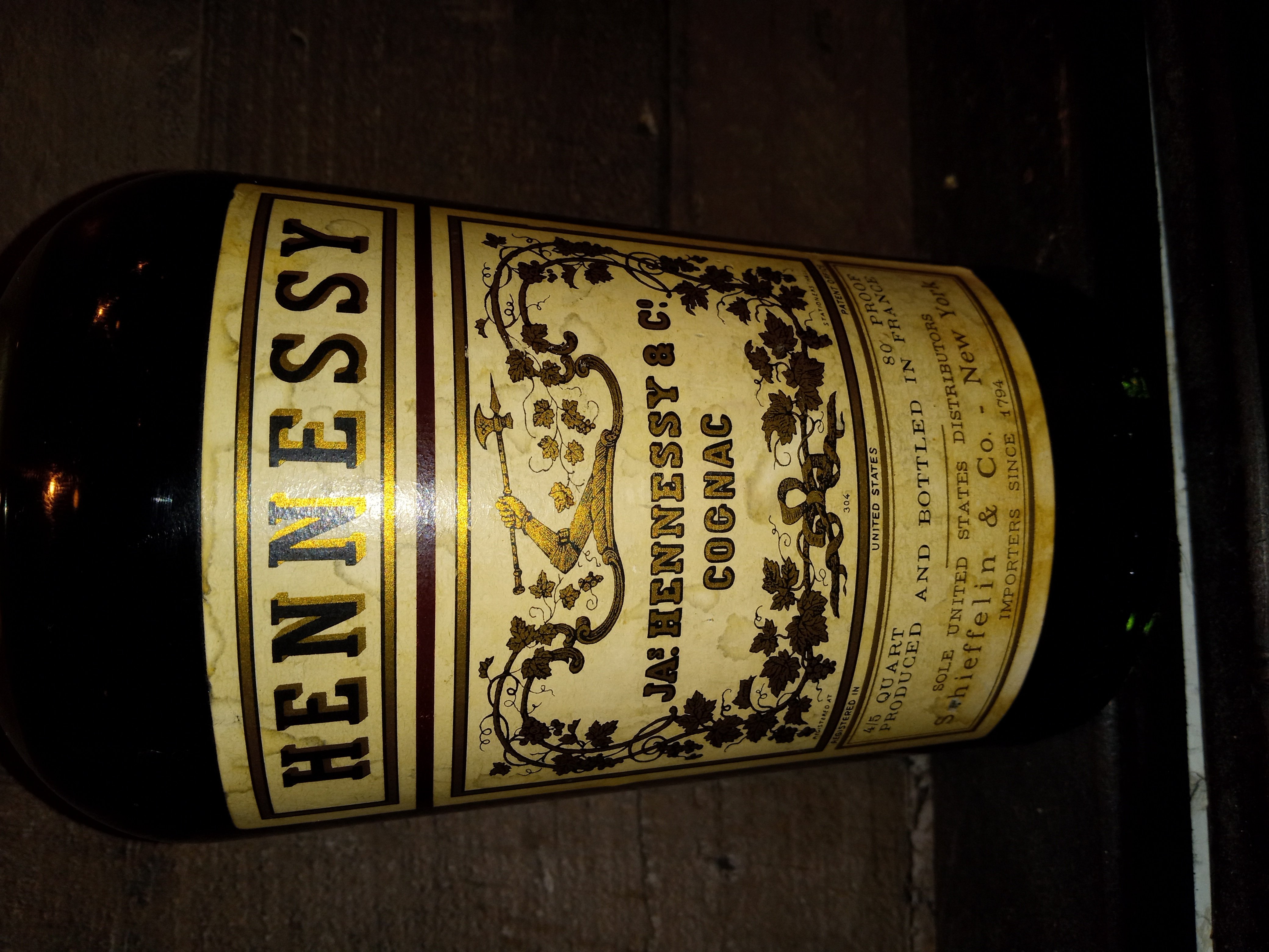 - BRAS ARMÉ Full quart Hennessy Ja.s Hennessy & Co. Cognac Registered at 206 Stationer Hall (?ver small) 1quart 80 proof Produced and bottled in France Sole United States distributors Schieffen & Co. - New York Importers since 1794