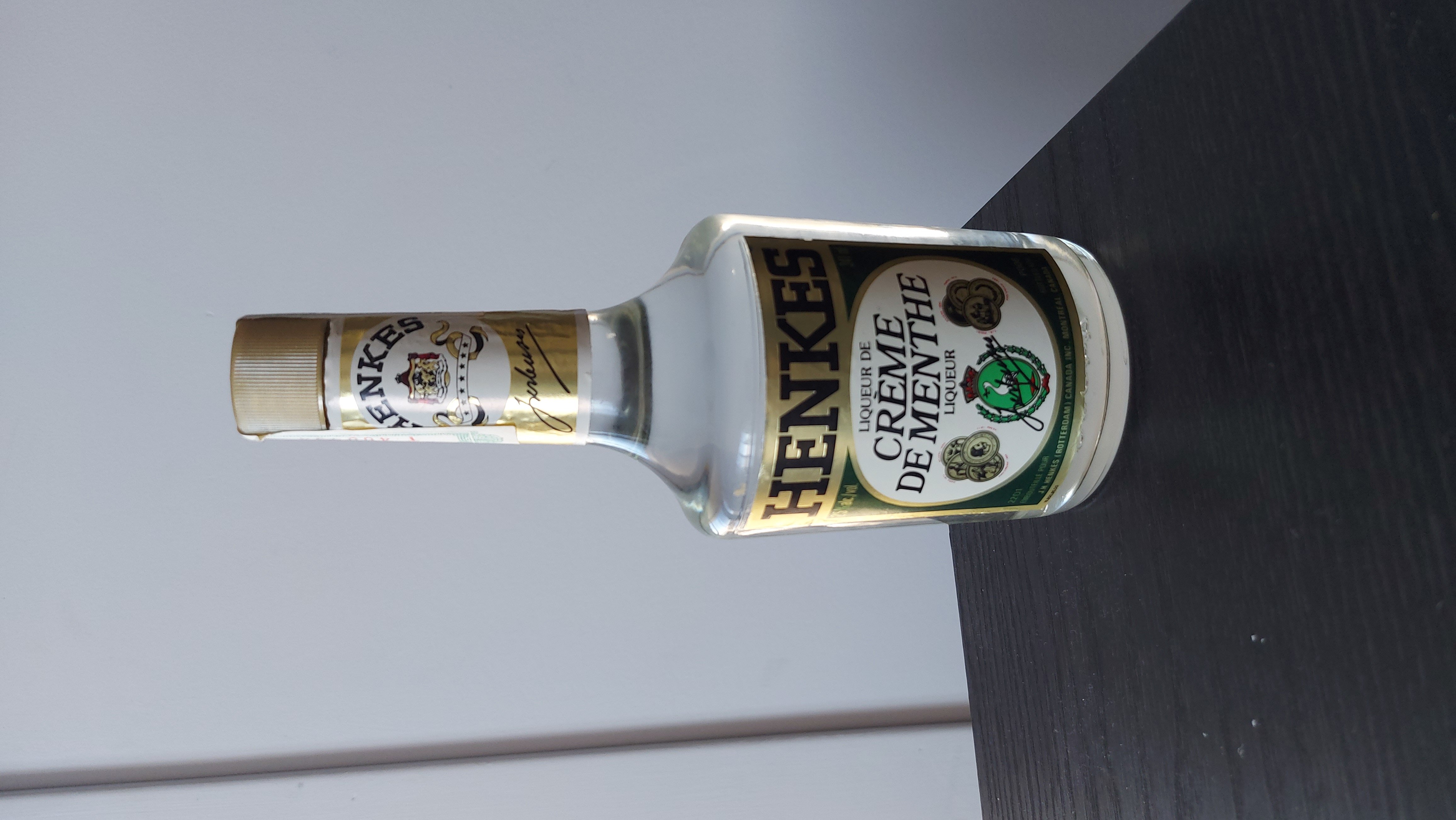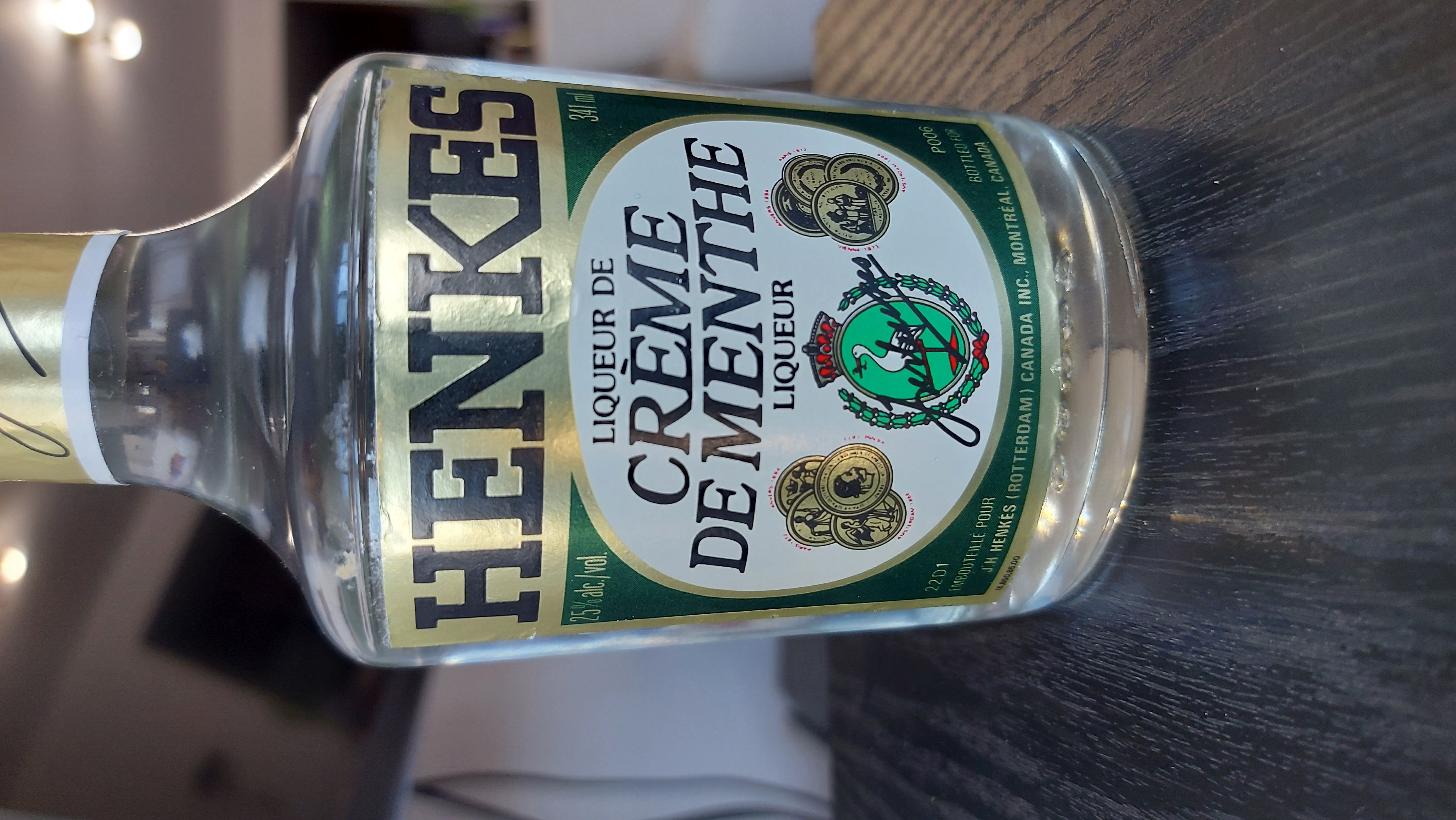 - Henkes 25% alc./vol. 341 mL liqueur de crème de menthe Liqueur 22D1 Embouteillé pour J.H. Henkes (ROTTERDAM) Canada inc. Montreal Canada P006