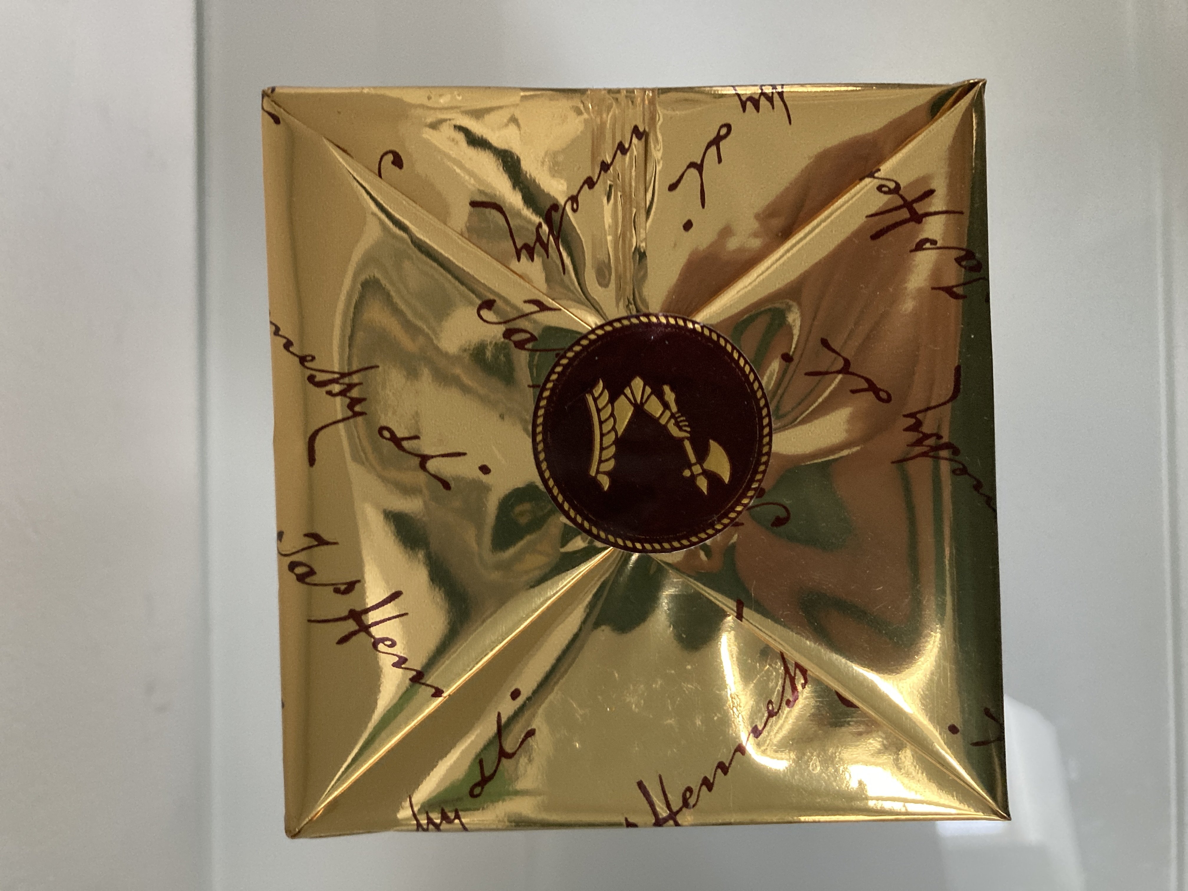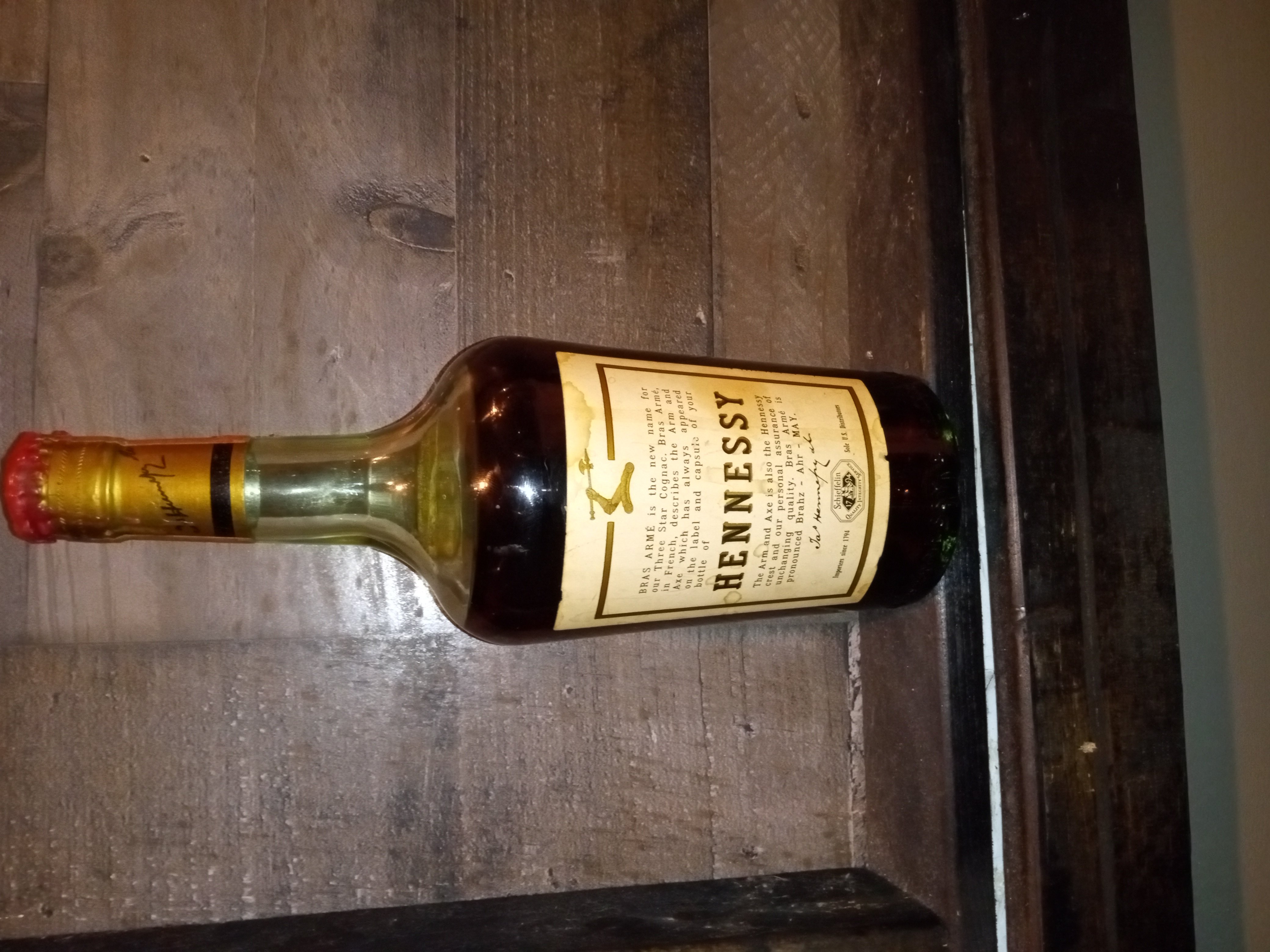 - Bras Armé, Hennessy, JA.s Hennessy & Co., Registered in the United States patent office, 4/5 court, 80 proof, producing bottled in France, so United States distributors, Schieffelin & Co. - New York, importers since 1794. Also in fine print on the front registered at 304 stationers Hall.. -On the back label- Bras Armé is the new name for our three-star cognac. Bras Armé in French describes the arm and the ax which is always appeared on the label and capsule of your bottle of Hennessy. The arm and the ax is also the Hennessy Crest at our personal insurance of a unchanging quality. Bras Armé is pronounced Braz-Ahr-May And then of course the serial number 321526676 it should be noted it has a paper seal with a serial number and a wax seal over that. Can't quite make it out but it looks like it was stamped with some type of crest