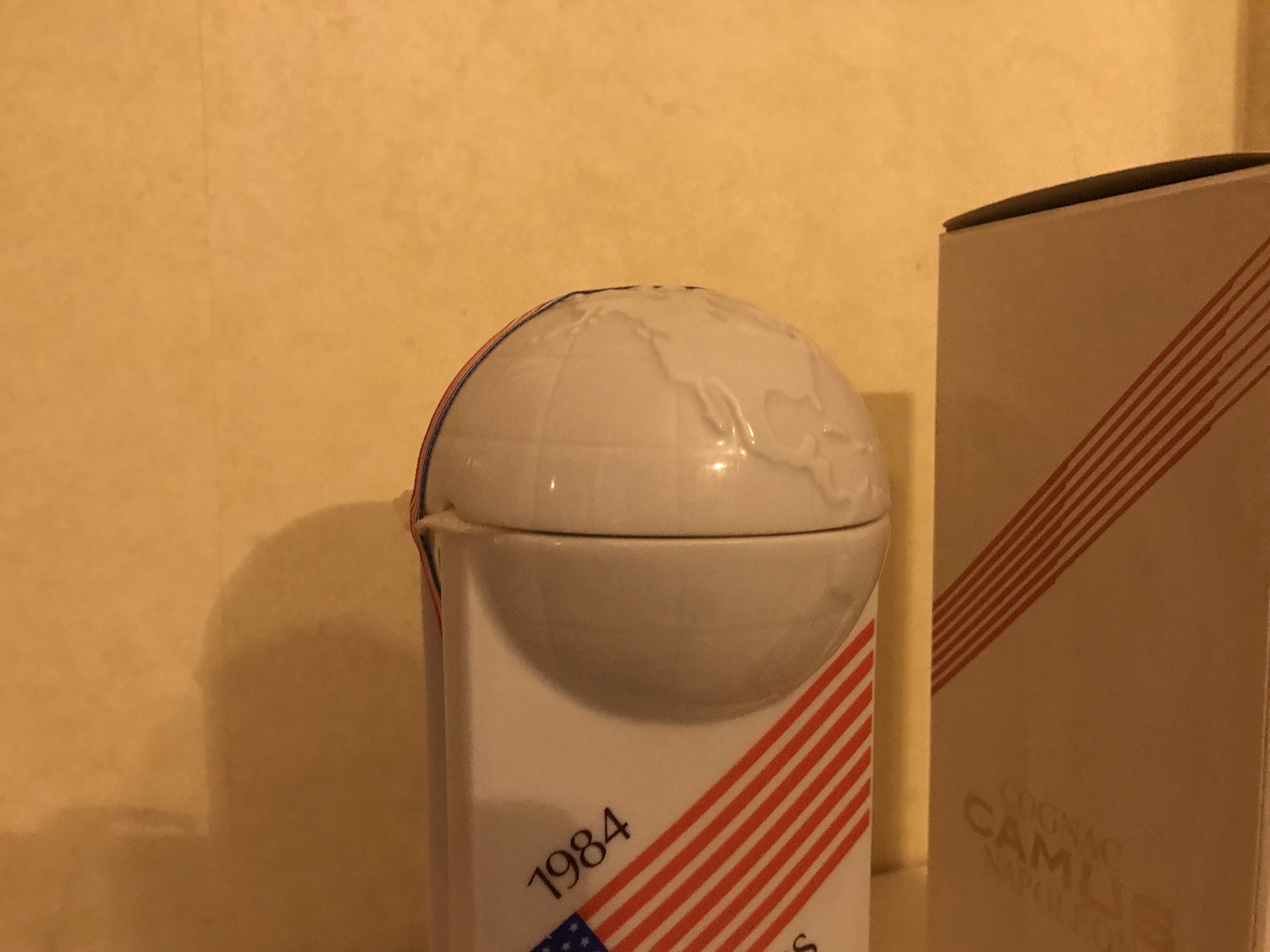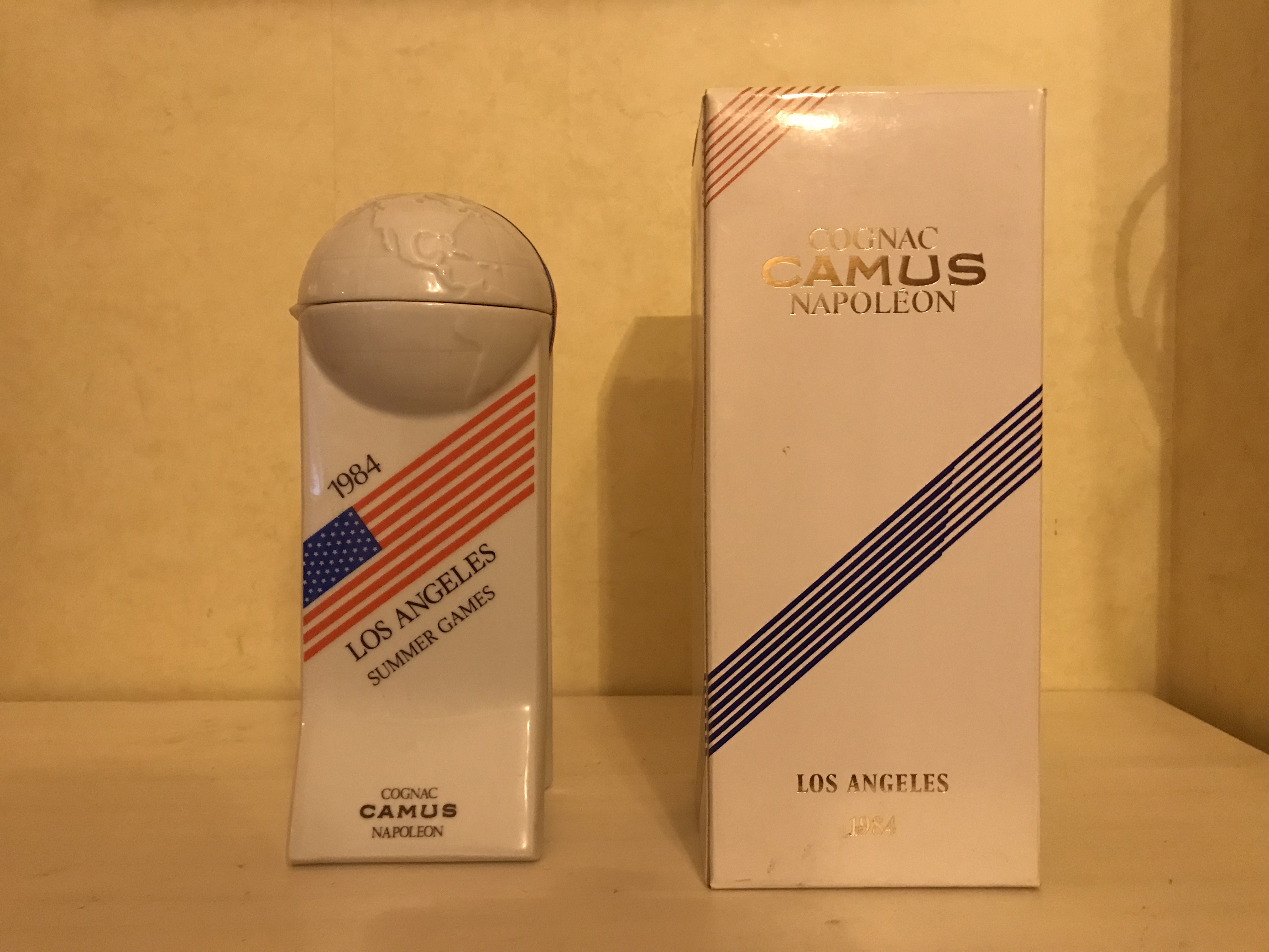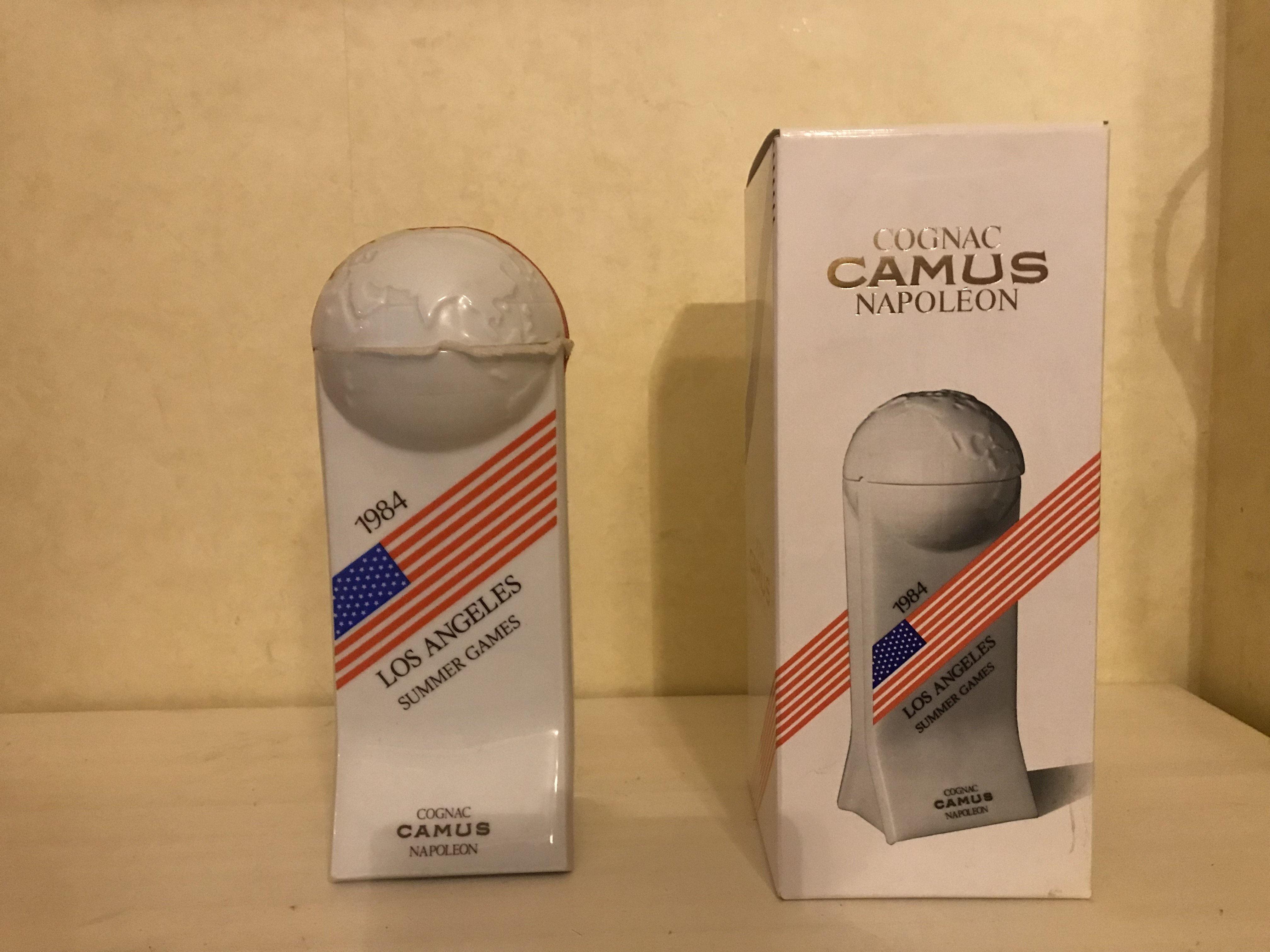 - Bottom of the porcellan bottle :" Summer Games USA 1984 .Limited edition of 20.000 pieces reserved to Camus Cognac Modele depose Bernardaud Limoges France No Z 700 " Both sides of the bottle: 1984 Losa Angeles Summer Games (Flag of the USA) Cognac Camus Napoleon