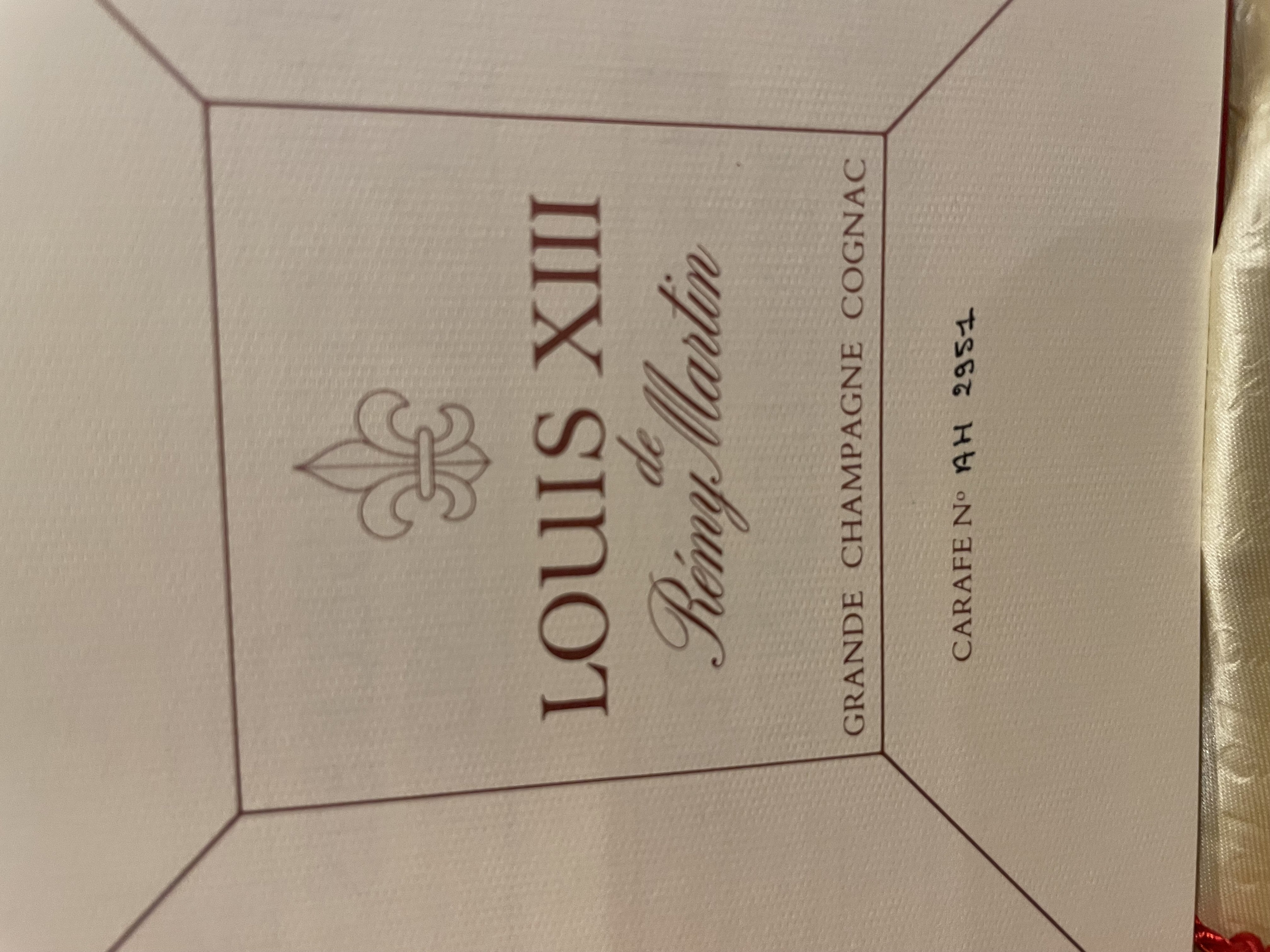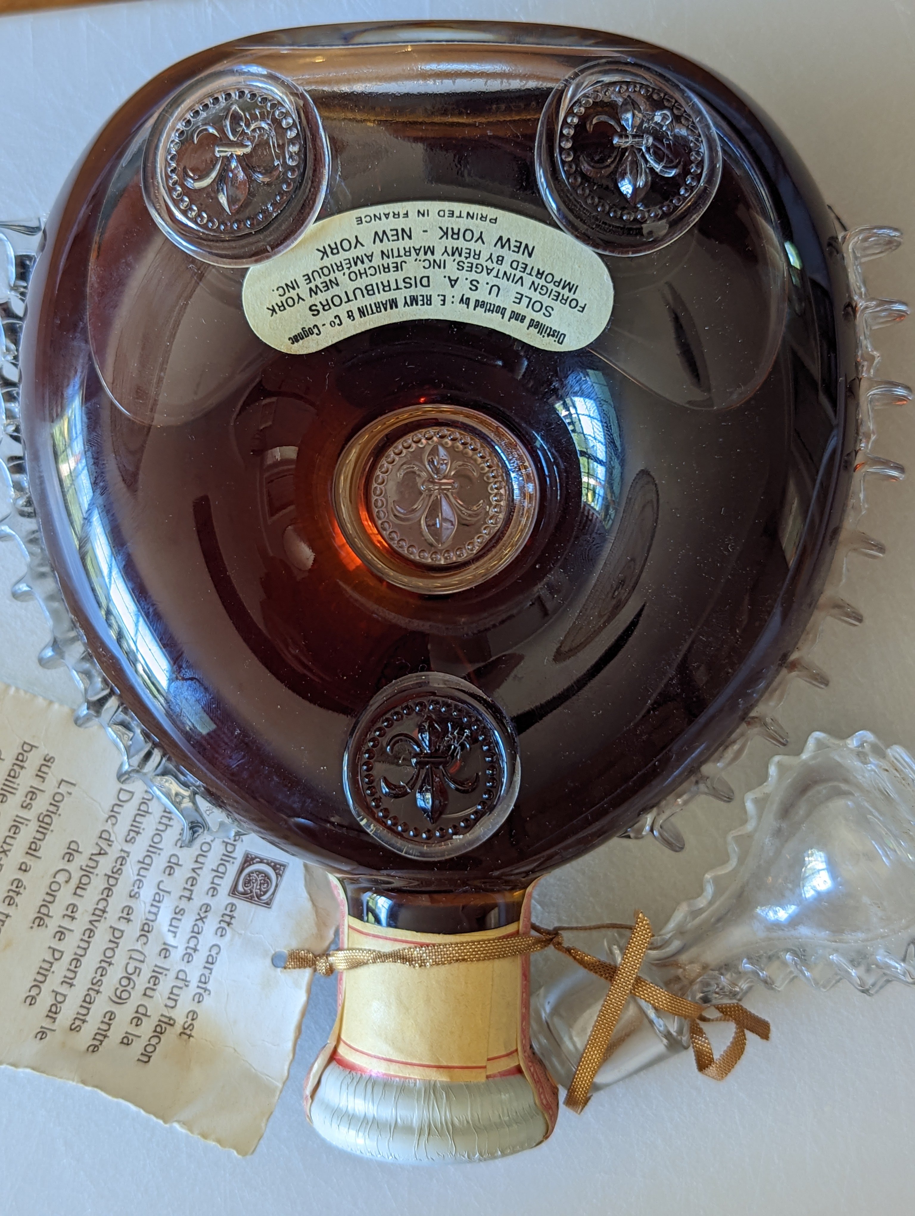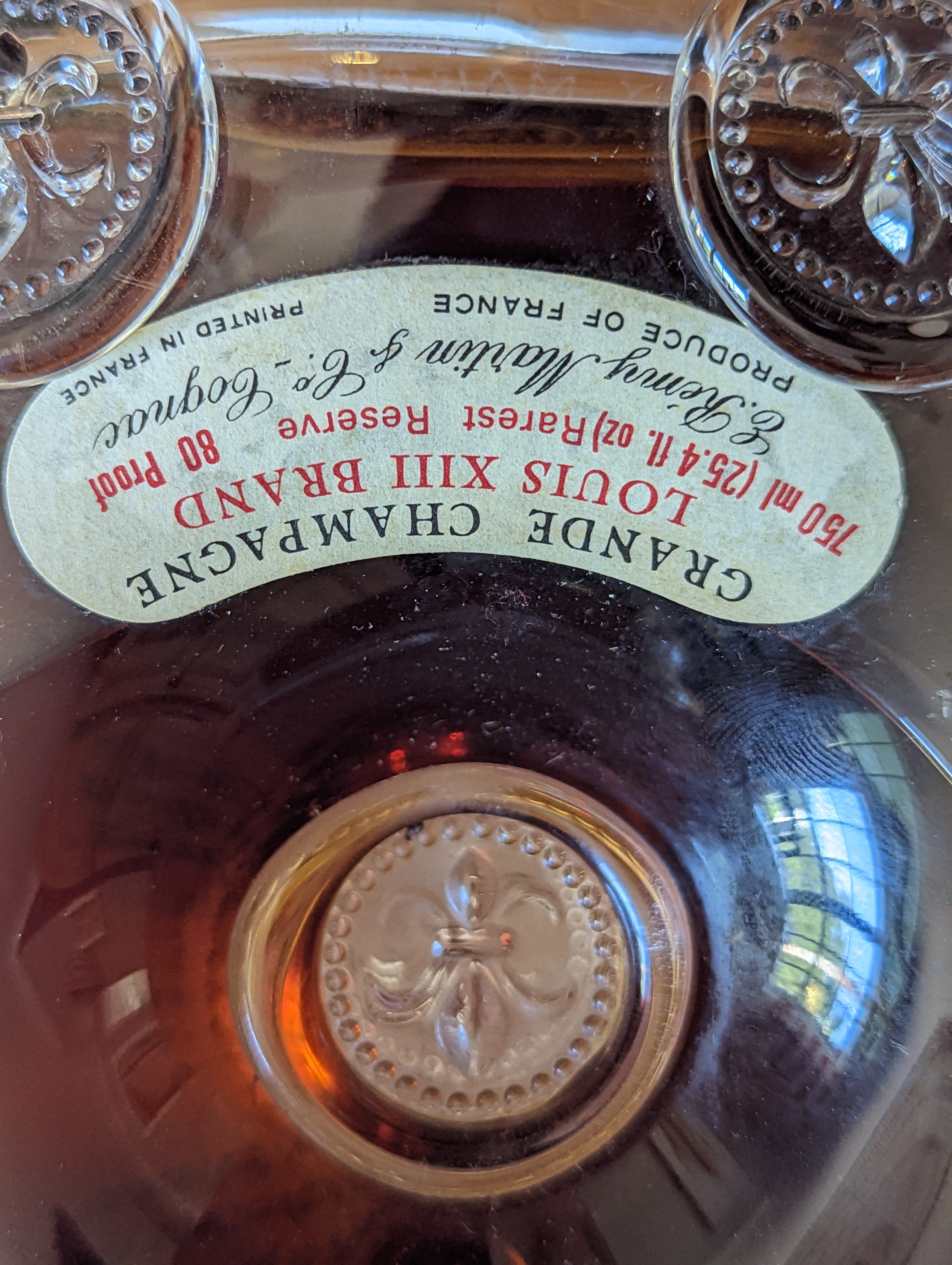 - Back Label: Distilled and bottled by: E REMY MARTIN & Co - Cognac SOLE U.S.A. DISTRIBUTORS FOREIGN VINTAGES, INC., JERICHO, NEW YORK IMPORTED BY REMY MARTIN AMERIQUE INC. NEW YORK - NEW YORK PRINTED IN FRANCE Front Label: GRANDE CHAMPAGNE LOUIS XIII BRAND 750ml (25.4 fl oz) Rarest Reserve 80 Proof e Remy Martin & Co - Cognac PRODUCE OF FRANCE PRINTED IN FRANCE Tax Label NY-I-365 100640069