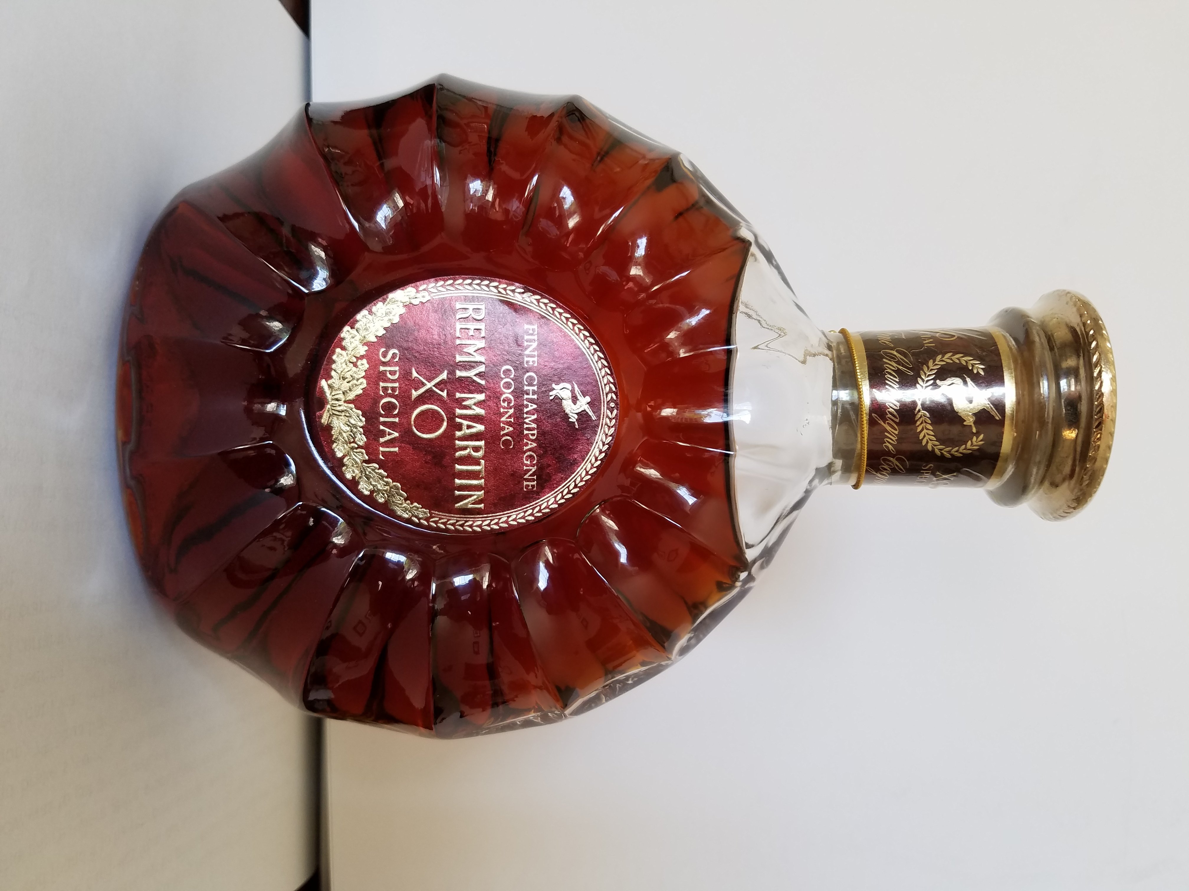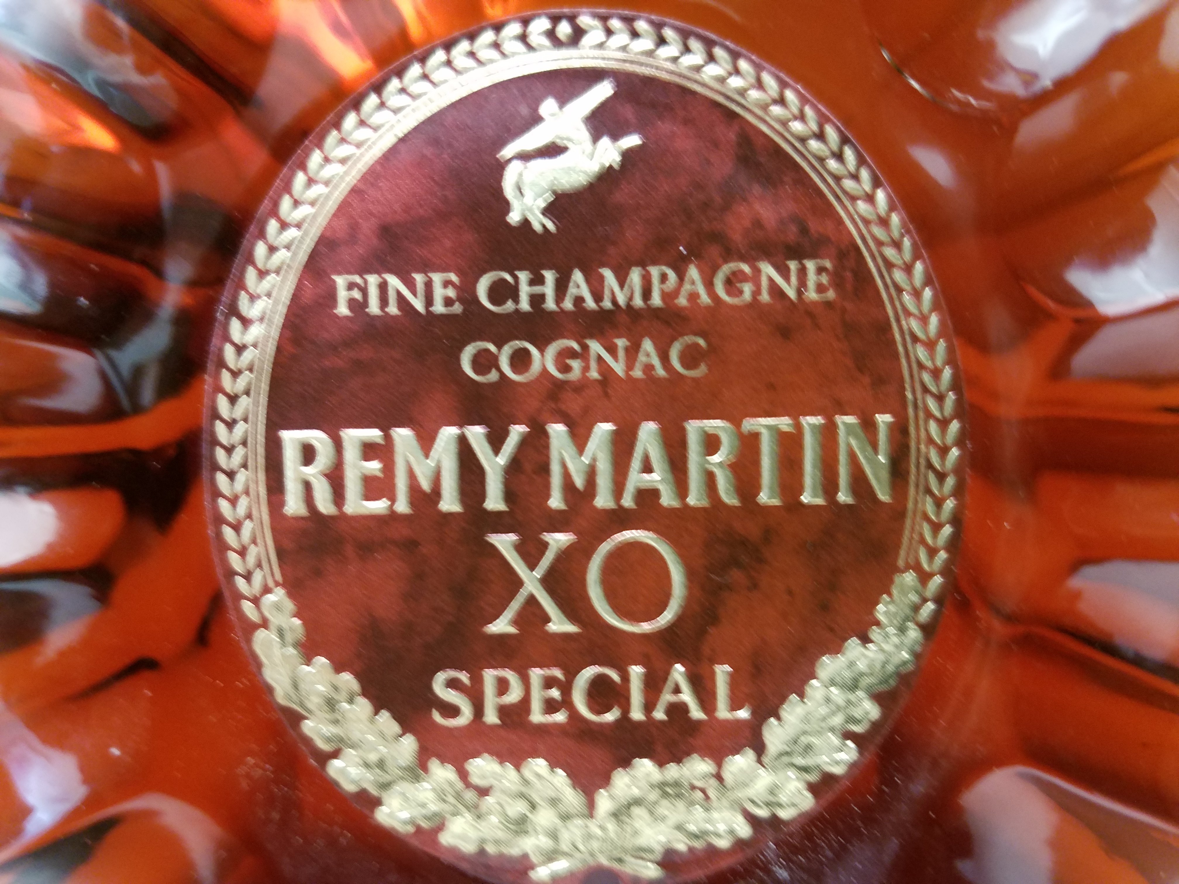 - Front label - Fine Champagne Cognac, Remy Martin XO Special - Back Label - By Official Decree of January 13th, 1938, Fine Champagne Cognac comes exclusively from grapes grown in the two best areas of the Cognac District France.