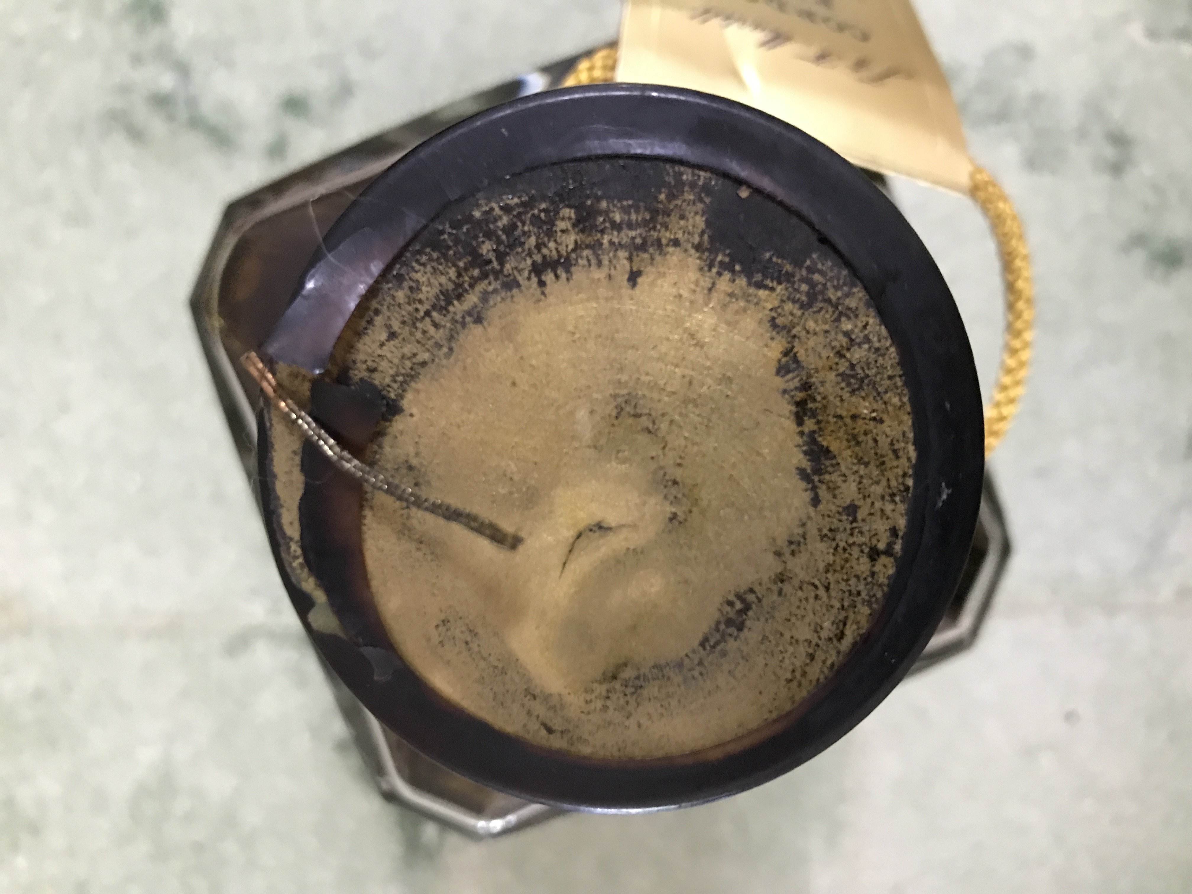 - Was kept in my fathers liquor cabinet. It’s been in a dark closed cabinet as long as my family has had it. It has a stamp from Illinois, series N1935.
