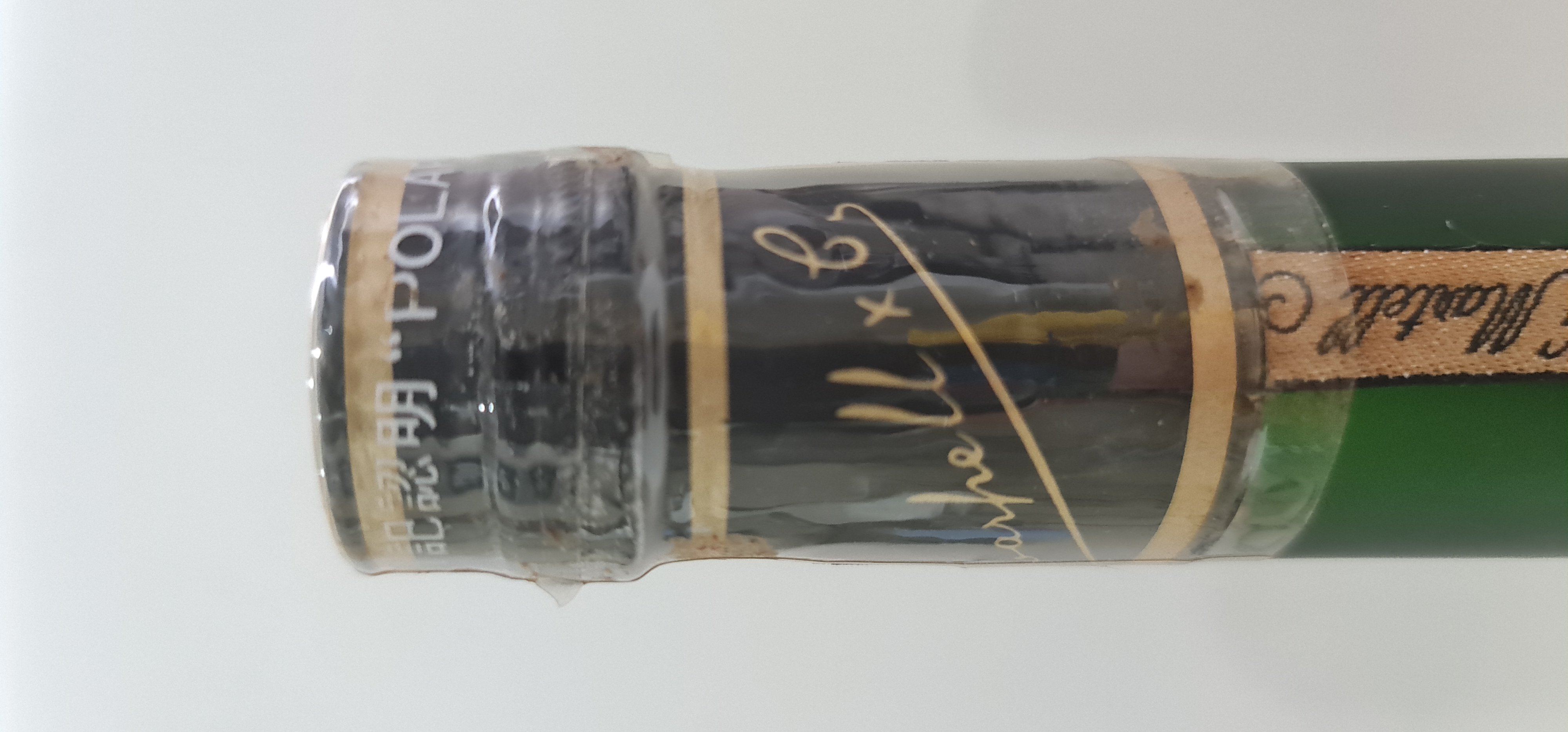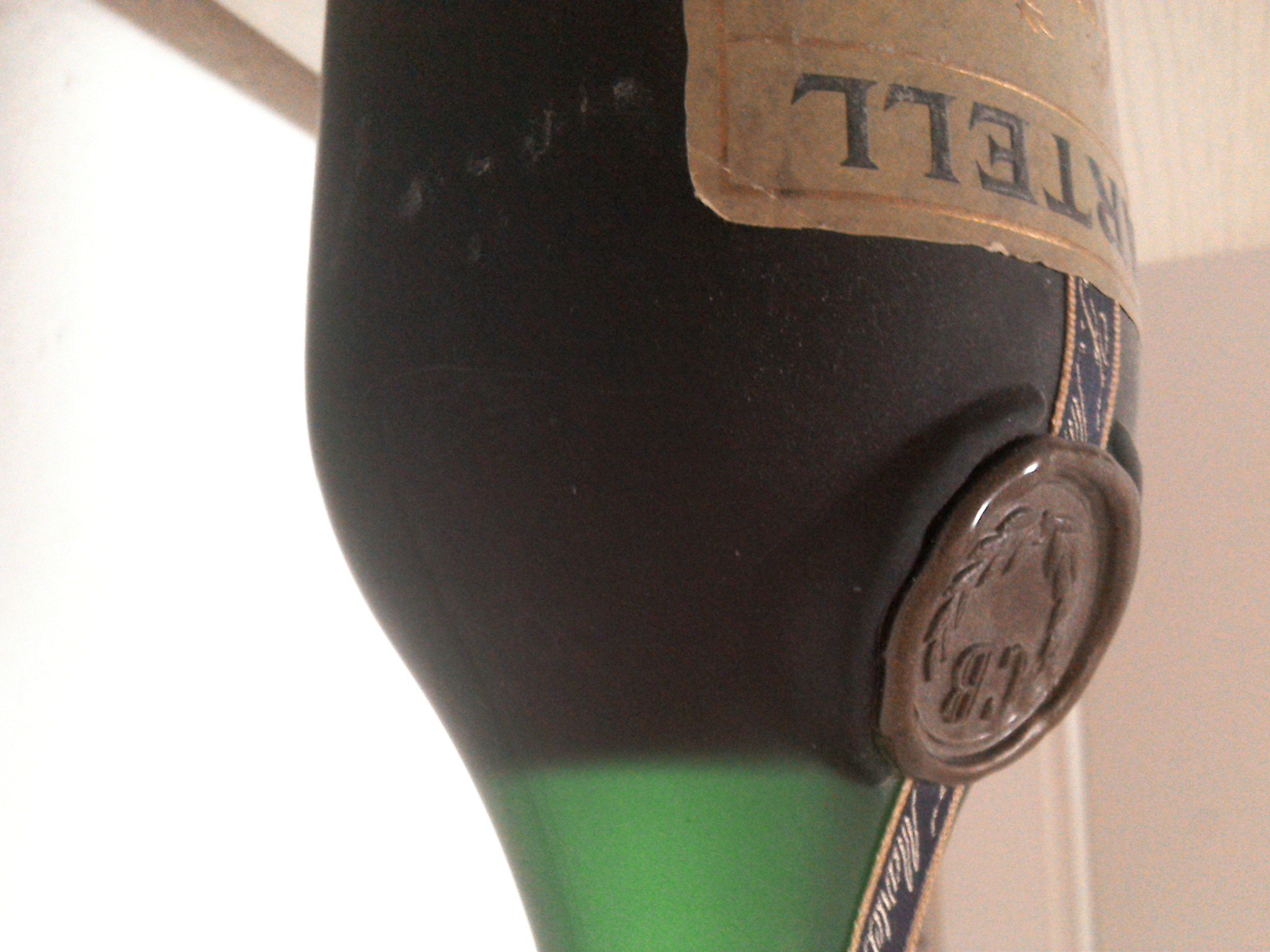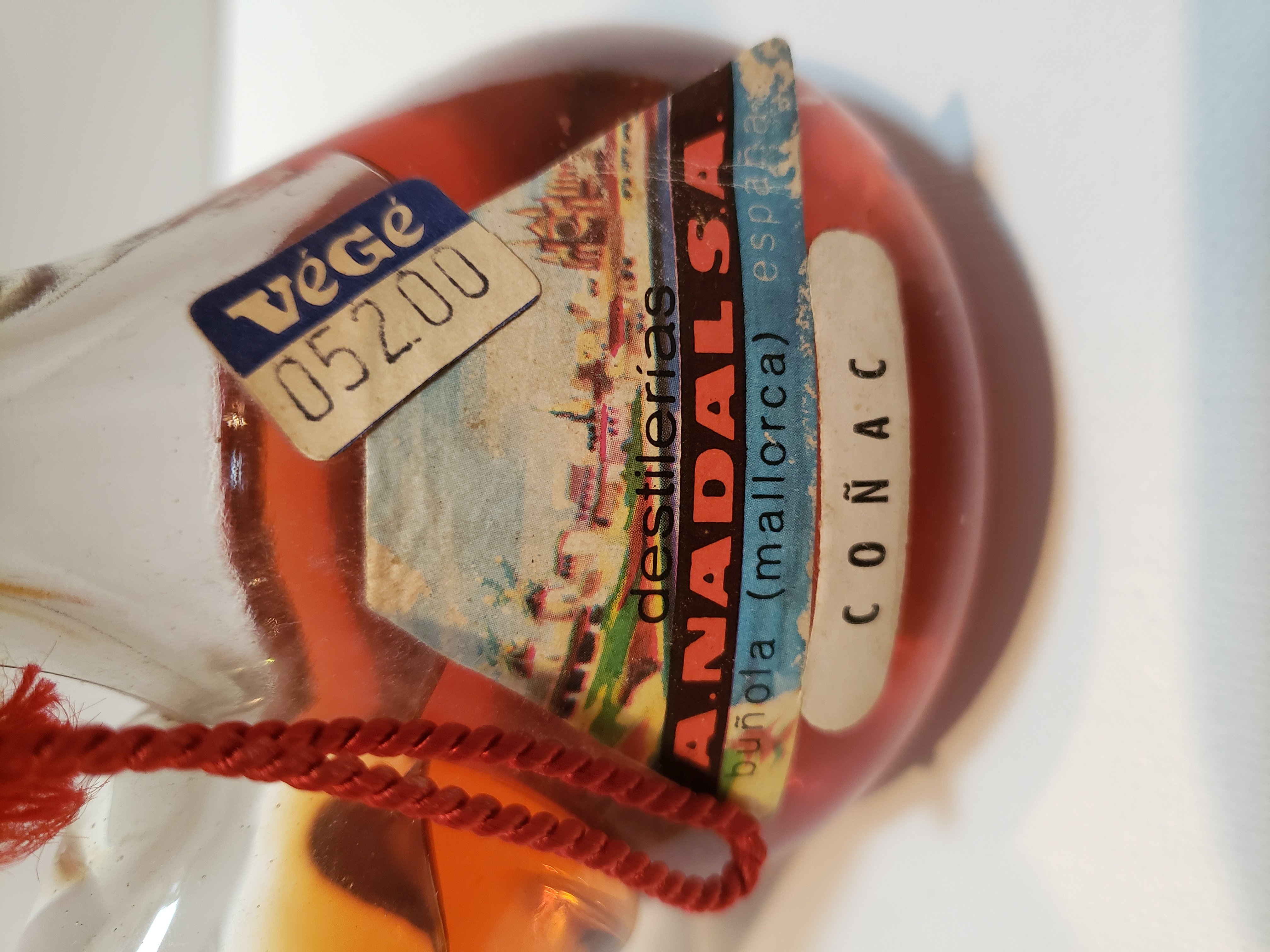 - I found this bottle when dealing with a friend's estate. I believe it may have come from Spain in the late 60s or early 70s. Her parents imported some hand carved wood furniture from Spain in that time frame. The cork is dry and broken, but I don't think it has ever been removed. Glass stem is sealed.