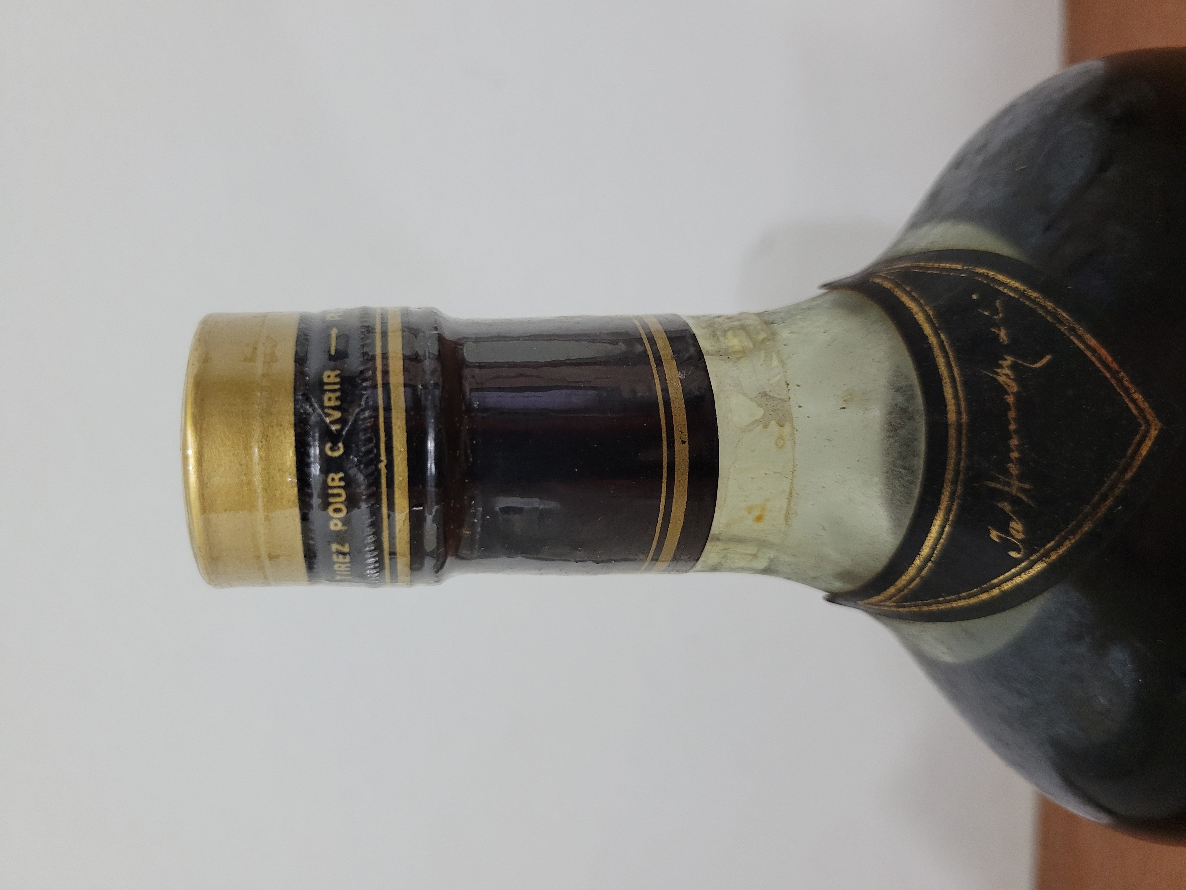 - My father-in-law‘s great grandfather purchased cases of this cognac from the Hudsons Bay Company when they closed some of their trading posts here in Western Canada. There are a few bottles left that have been stored in their original crate with straw packing and parchment paper wrapped around them. He is curious to know what these may be worth so I told him I would find out. The original wood cases have only T Hine blazed in as the label. Attached is a picture of the bottle taken from its straw packing. I took no other pictures or disturbed anything other than sliding it out from its straw packing as I did not want to disturb anything more than I had to to get a picture. From all recollections these bottles are from 1865 to 1900.
