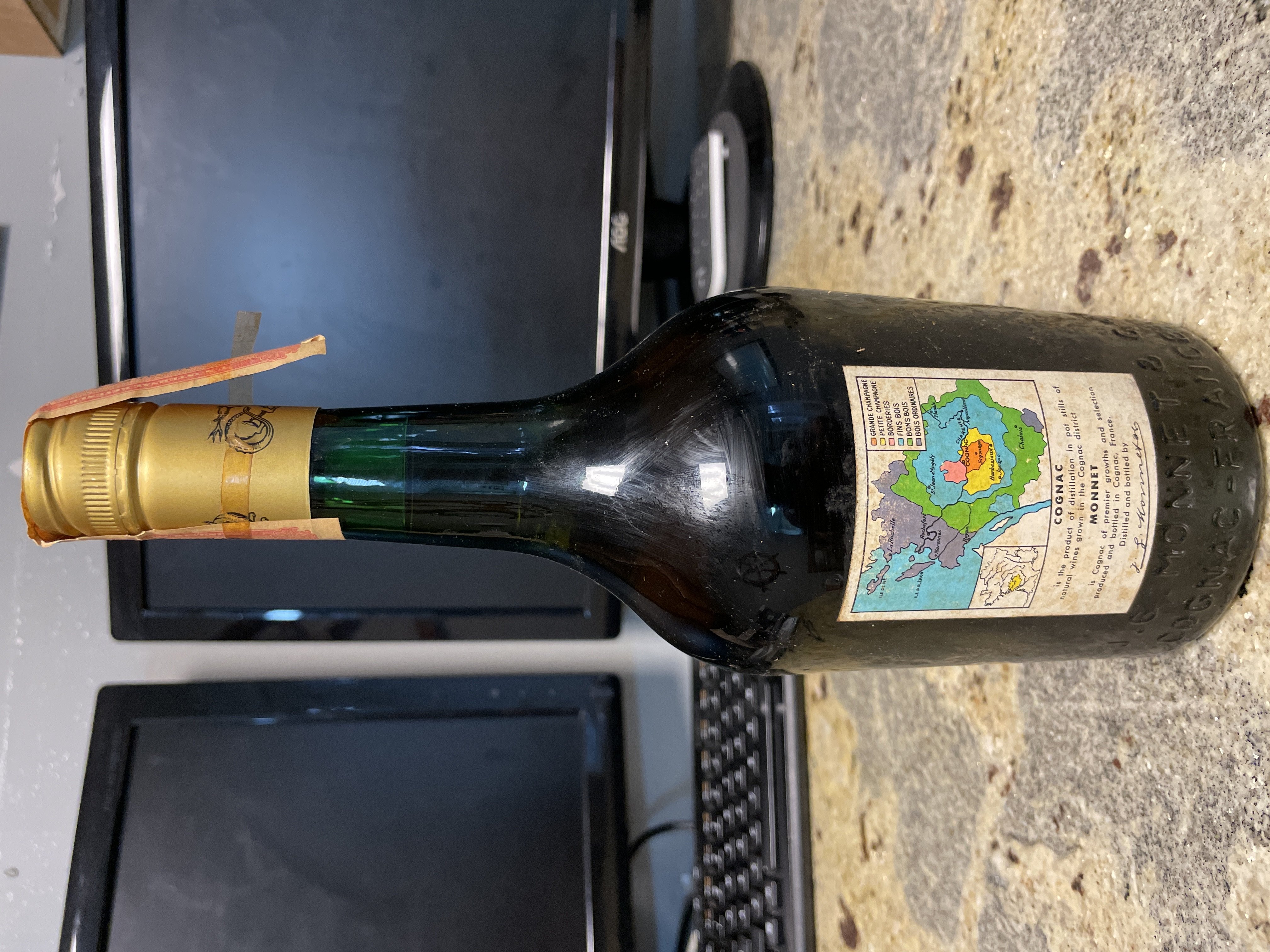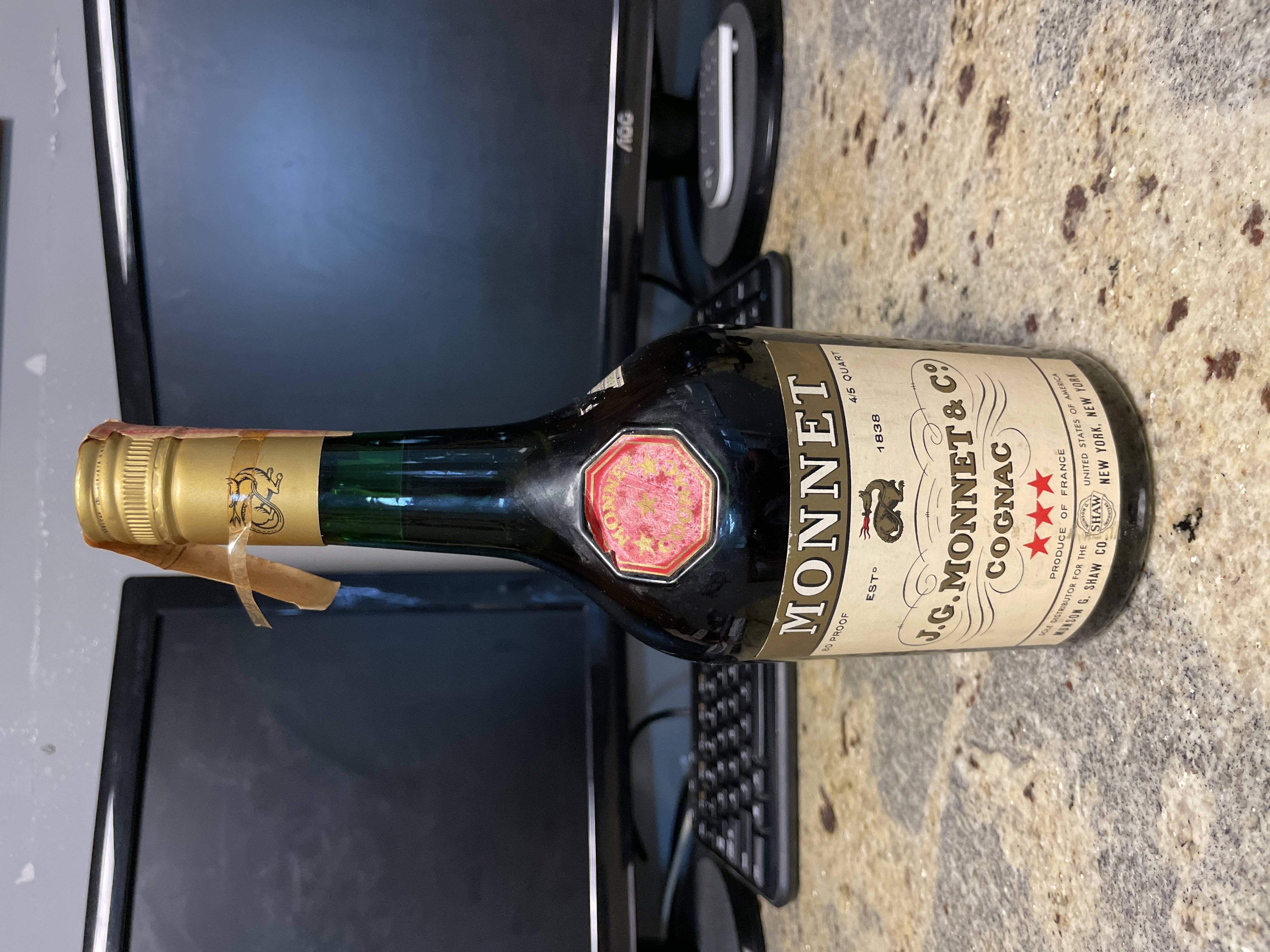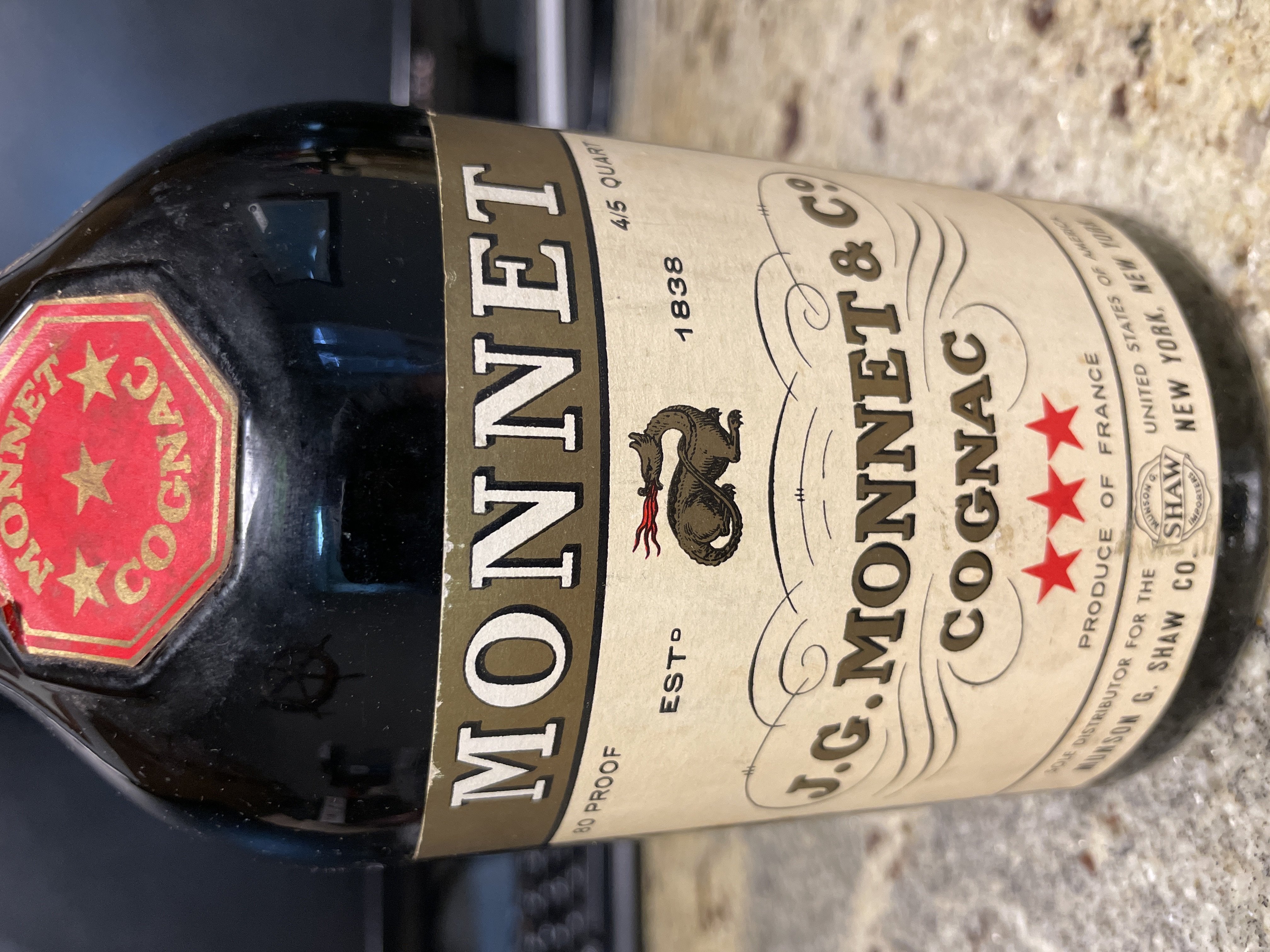 - Front label: J.G. Monnet & Co Cognac Produce of France Sole Distribution for the United States of America Munson G Shaw Co, New York, New York Rear label: Picture attached