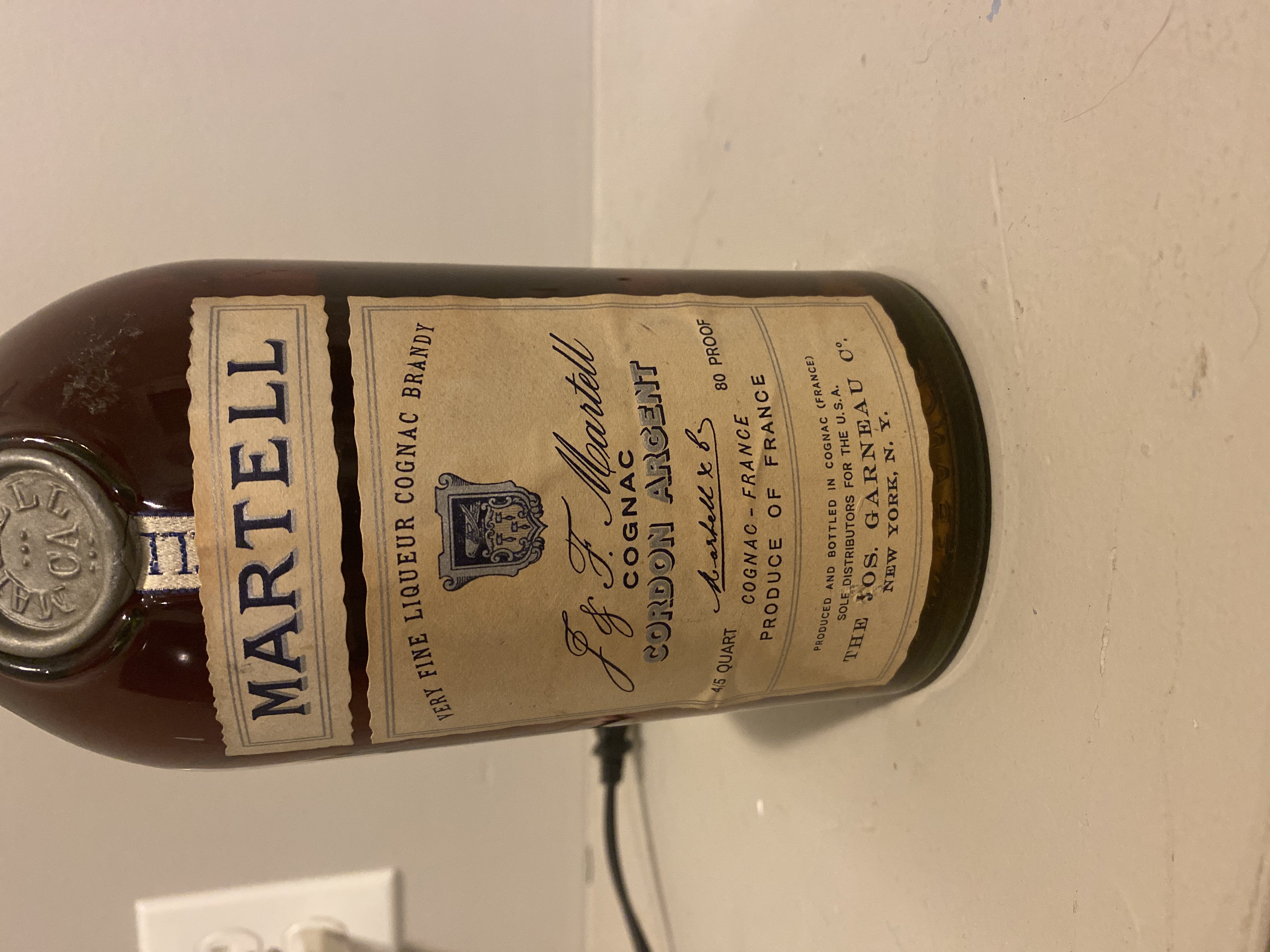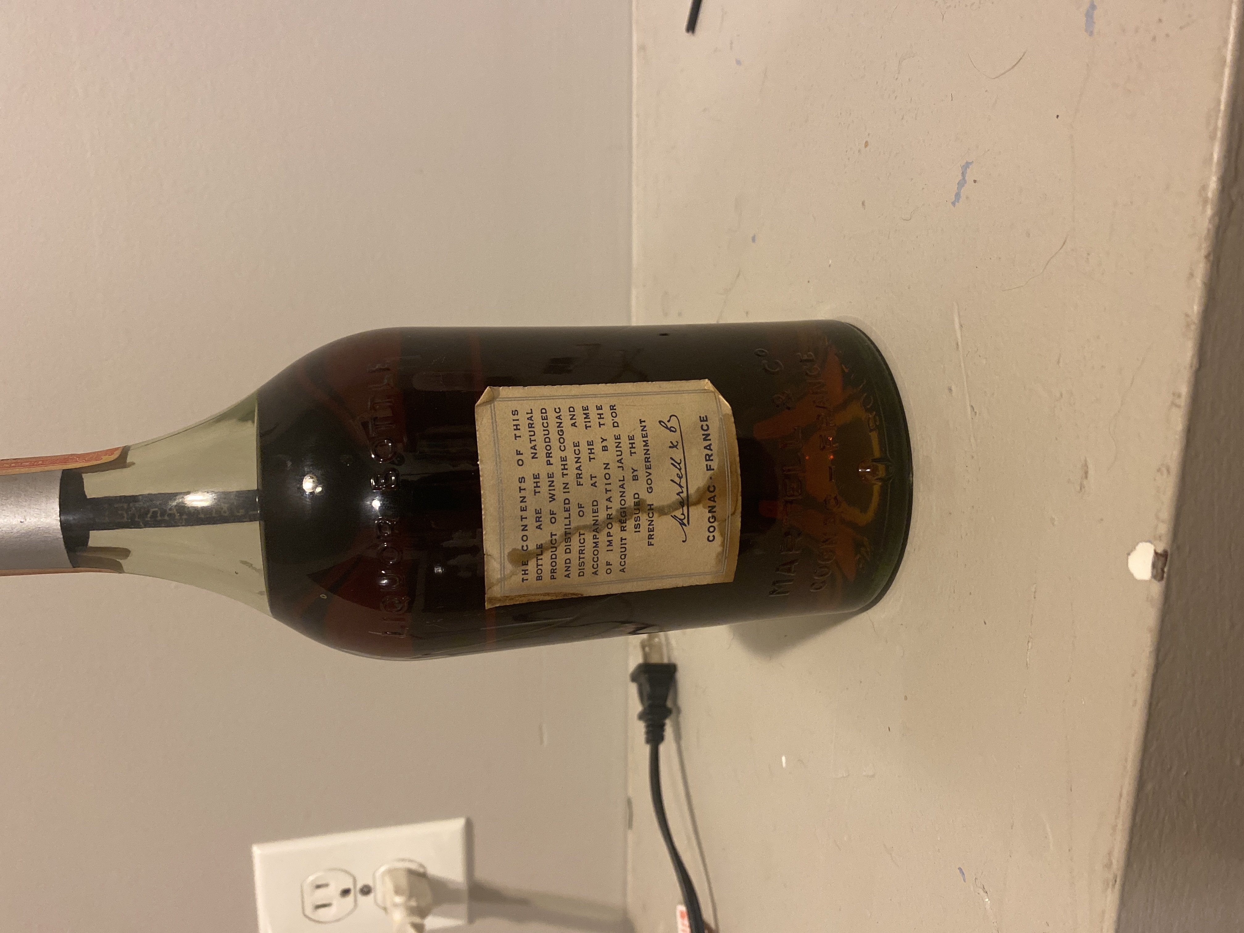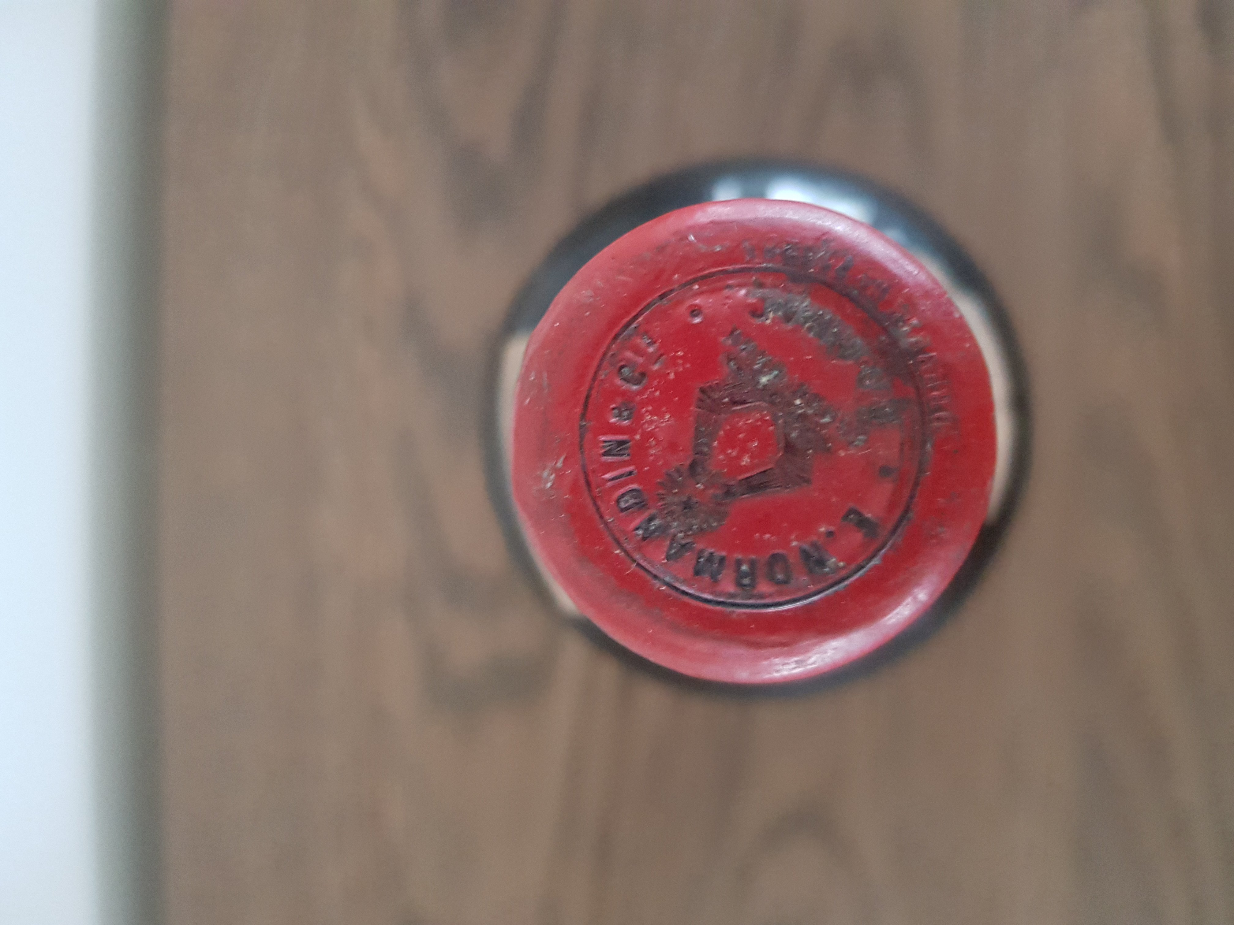 - cette bouteille a été découverte par un ami il y a 40 ans dans une cave murée pendant la dernière guerre ; cette bouteille m' a été alors offerte et je l' ai conservée depuis