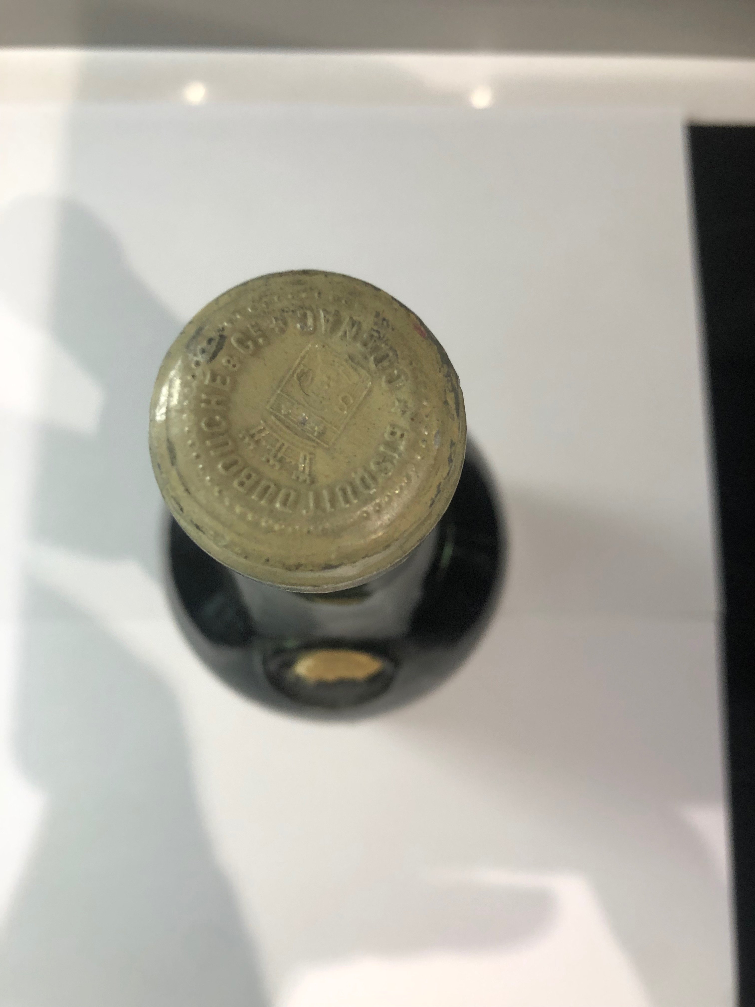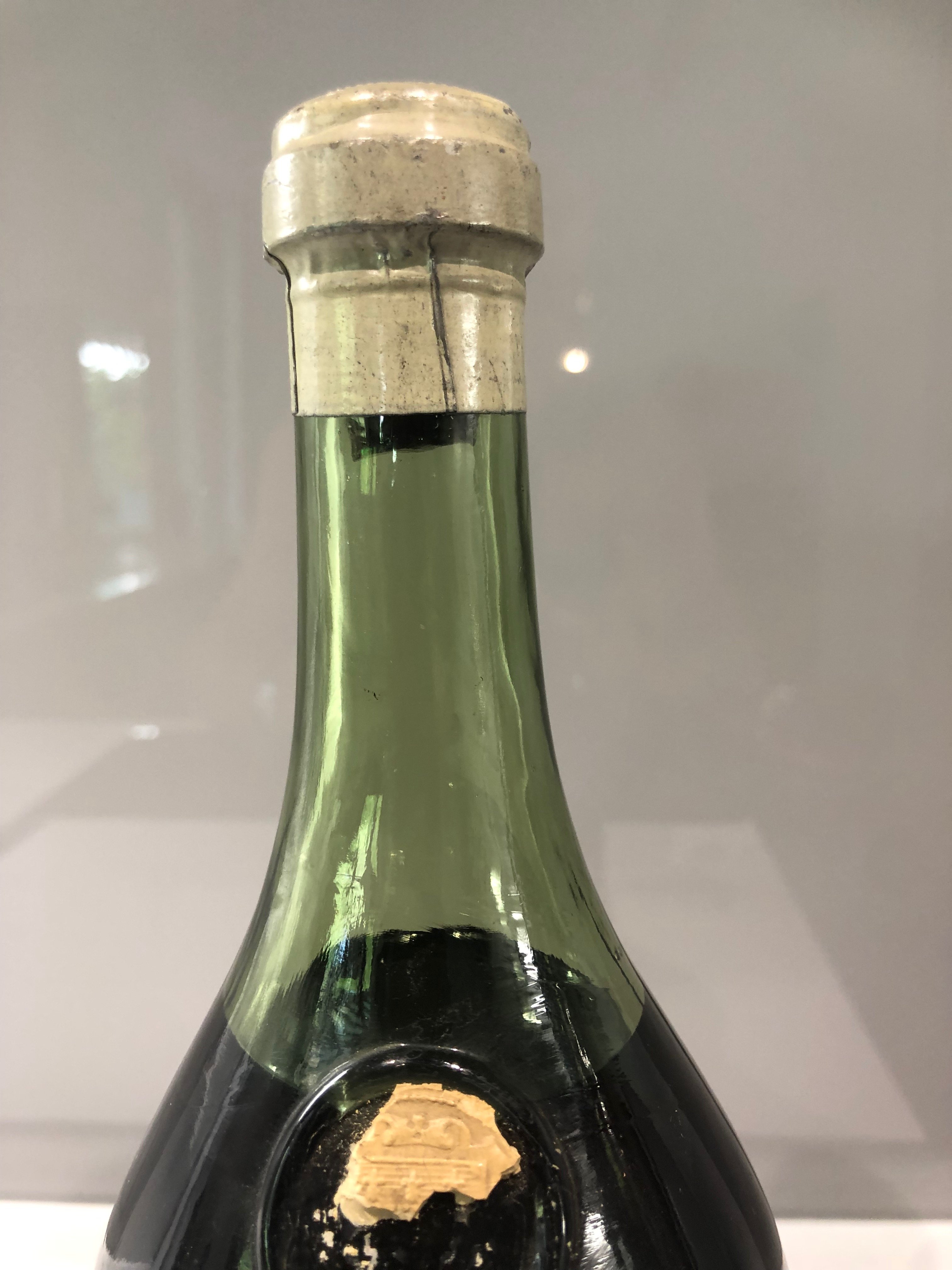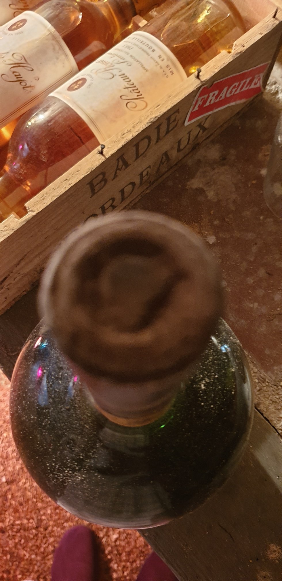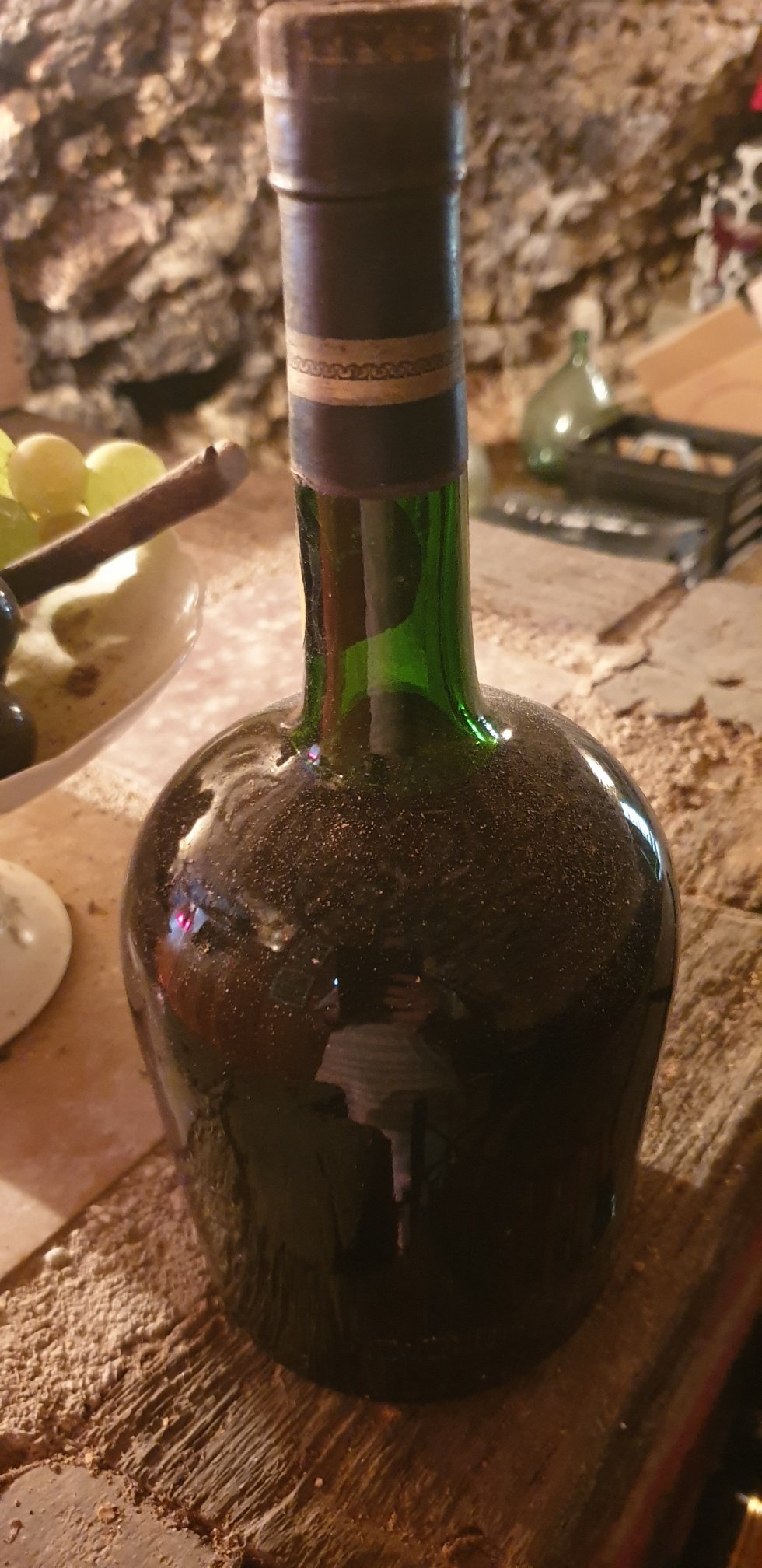 - cette bouteille a été découverte par un ami il y a 40 ans dans une cave murée pendant la dernière guerre ; cette bouteille m' a été alors offerte et je l' ai conservée depuis