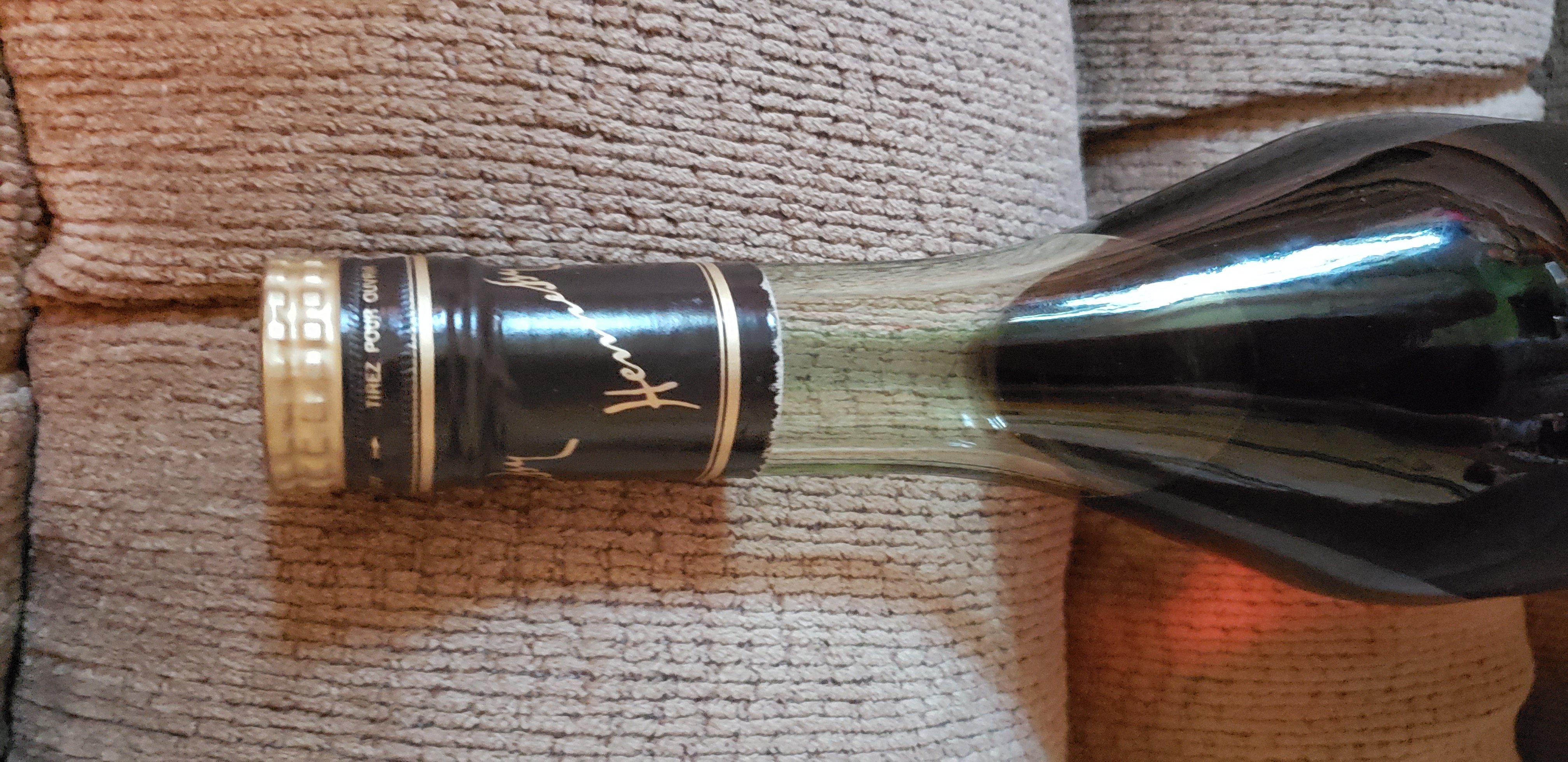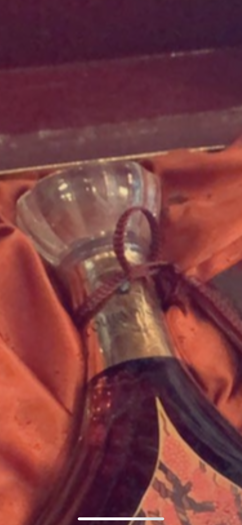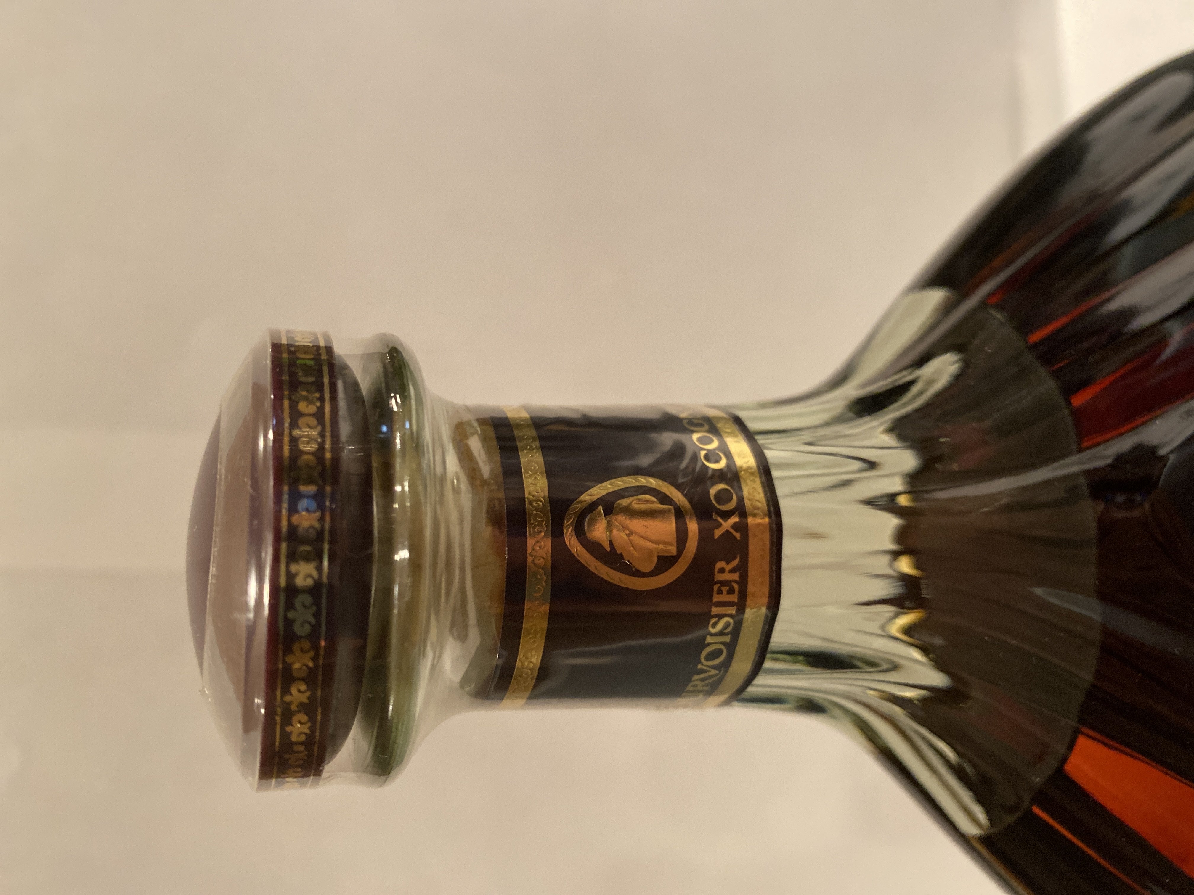 - Bottle neck reads "Courvoisier" cognac 750 ml - 40%; Btl. front - Beautiful pic of Lady embracing the grapes, bottom or base - Erte / inedit / Erte