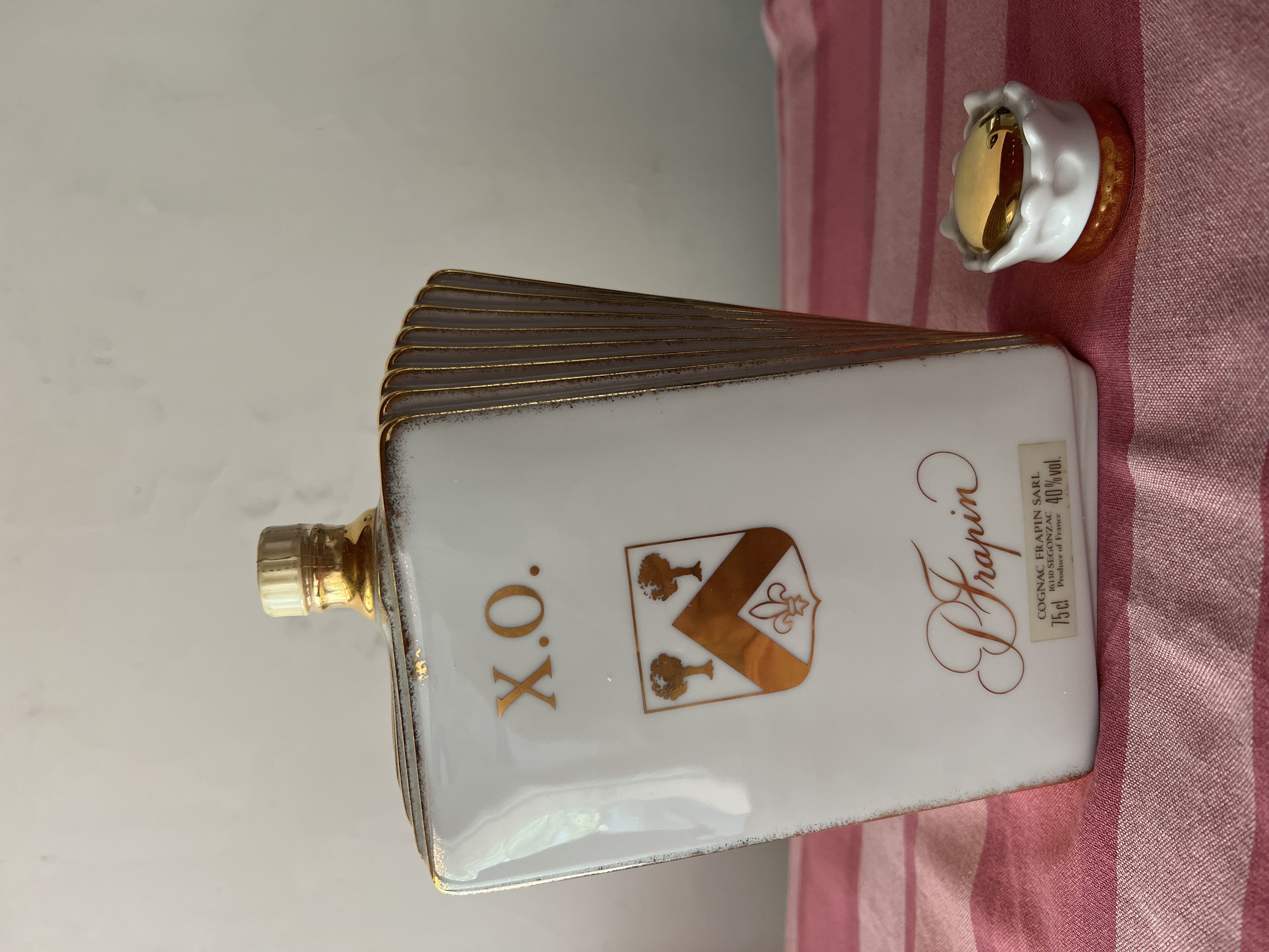 - X.O. PFrapin Cognac Frapin SARL 75cl 16130 SEGONZAC product of France 40% vol. MODELE DEPOSE COGNAC FRAPIN FABRIQUE SPECIALEMENT PAR Haviland LIMOGES FRANCE