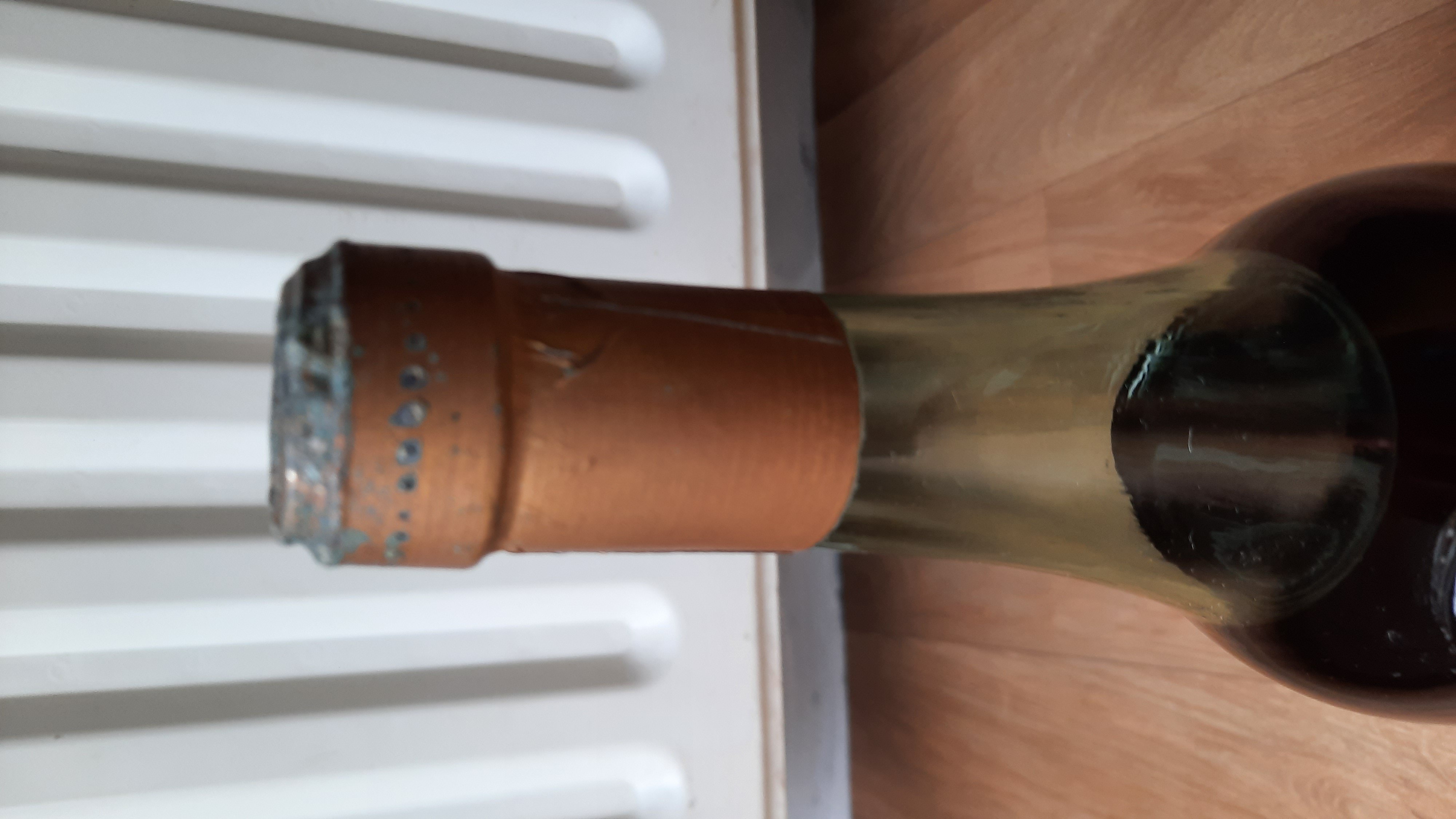 - A gift. The bottle was one of several bottles that had been stored in a house for many years.