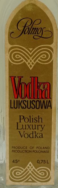 - Polmos - Vodka Luksusowa Polish Luxury Vodka - Produce of Poland - Production Polonaise 45° - 0,75 L Importato da ESSEVI SPA - Milano - Vino con gradazione alcoolica 45° svolta Capacità 75 cc Licenza Utif 312 Milano