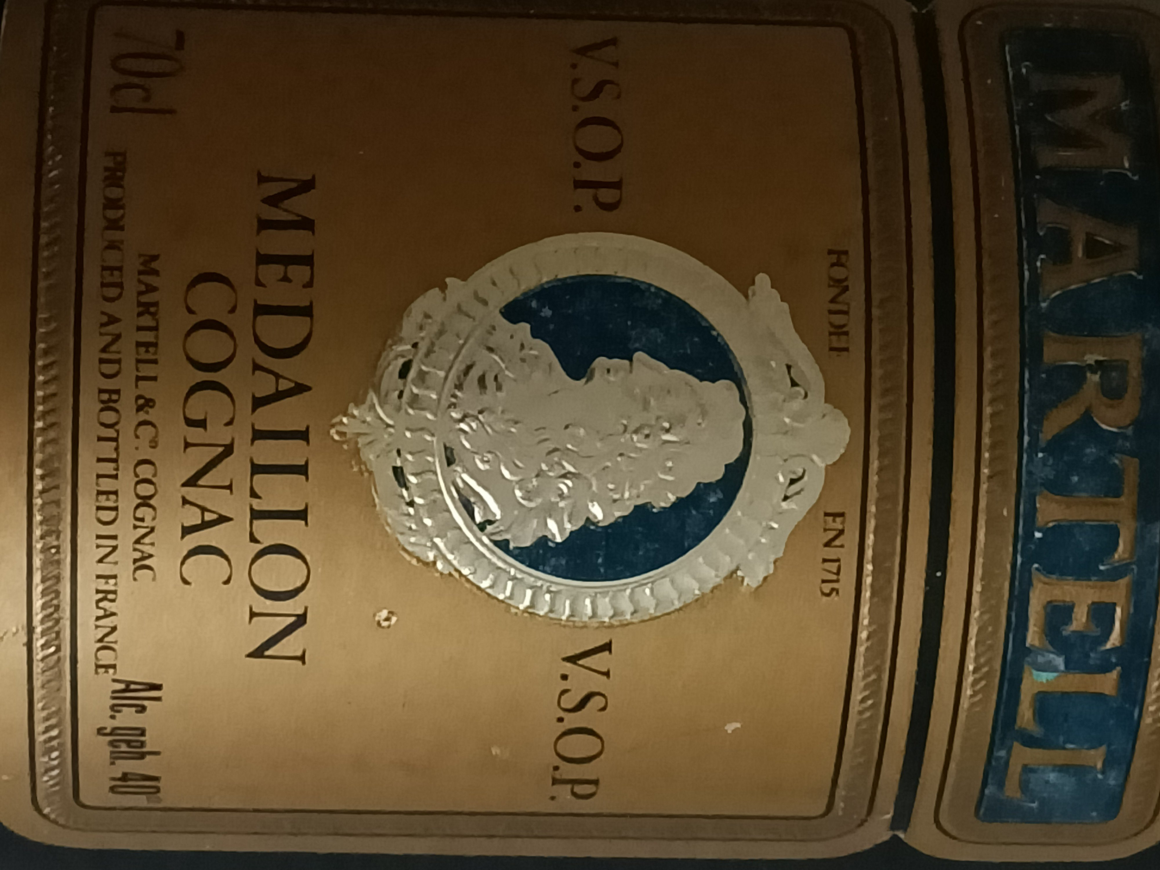 - Fondee en 1725 v.s.o.p. Medaillon cognac 70 CL Alc.geh. 40° Kartell & co cognac Produced and bottled in France