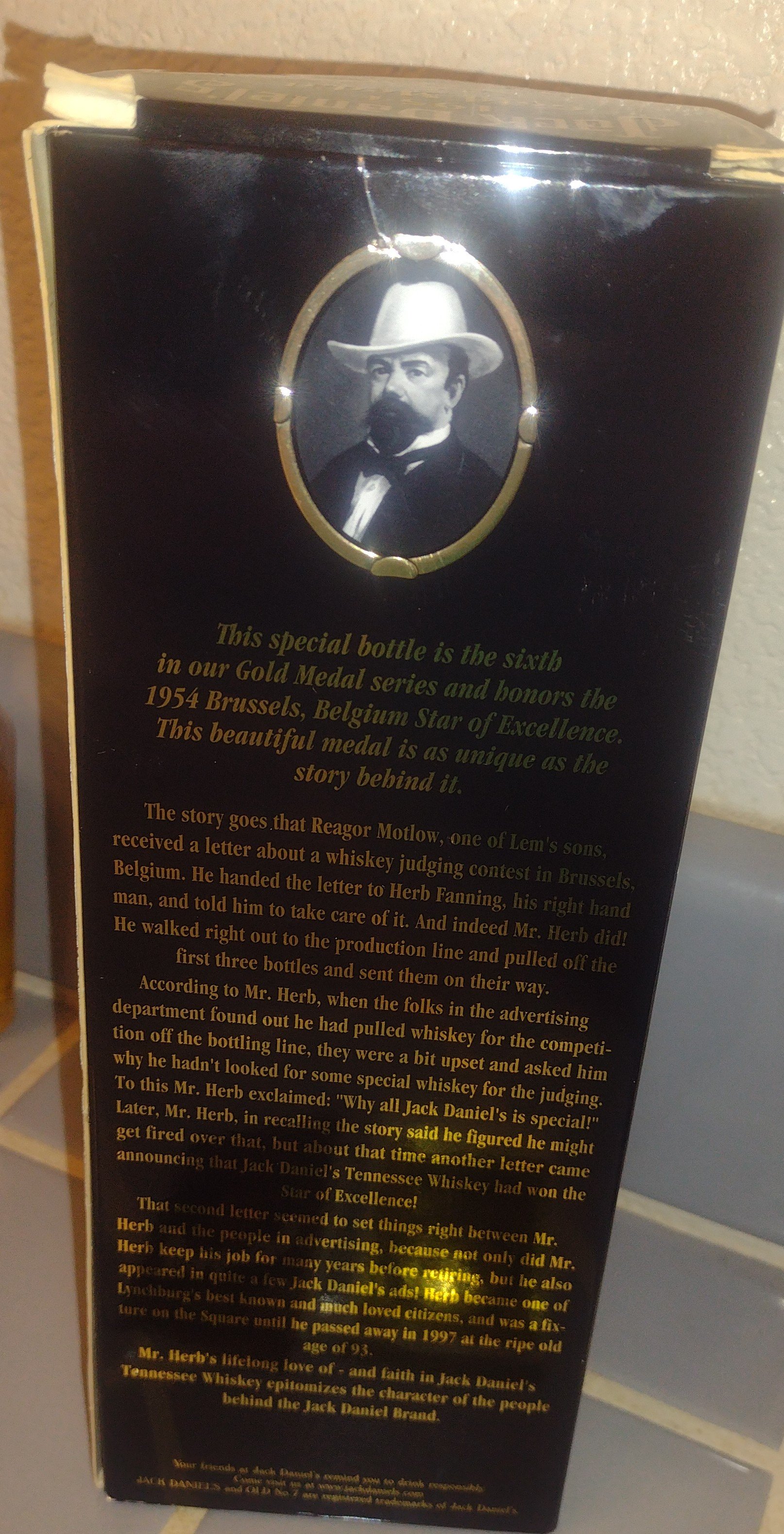 - Jack Daniel's Brussels, Belgium 1954 Gold Medal INSTITUT INTERNATIONAL D'ALIMENTATION For Surpassing Excellence Brussels, Belgium SPECIAL Limited Edition Tennessee Whiskey AMERICA'S OLDEST REGISTERED DISTILLERY Jack Daniel's Tennessee Whiskey 1954 Gold Medal ALCOHOL 45% BY VOLUME (90 PROOF)