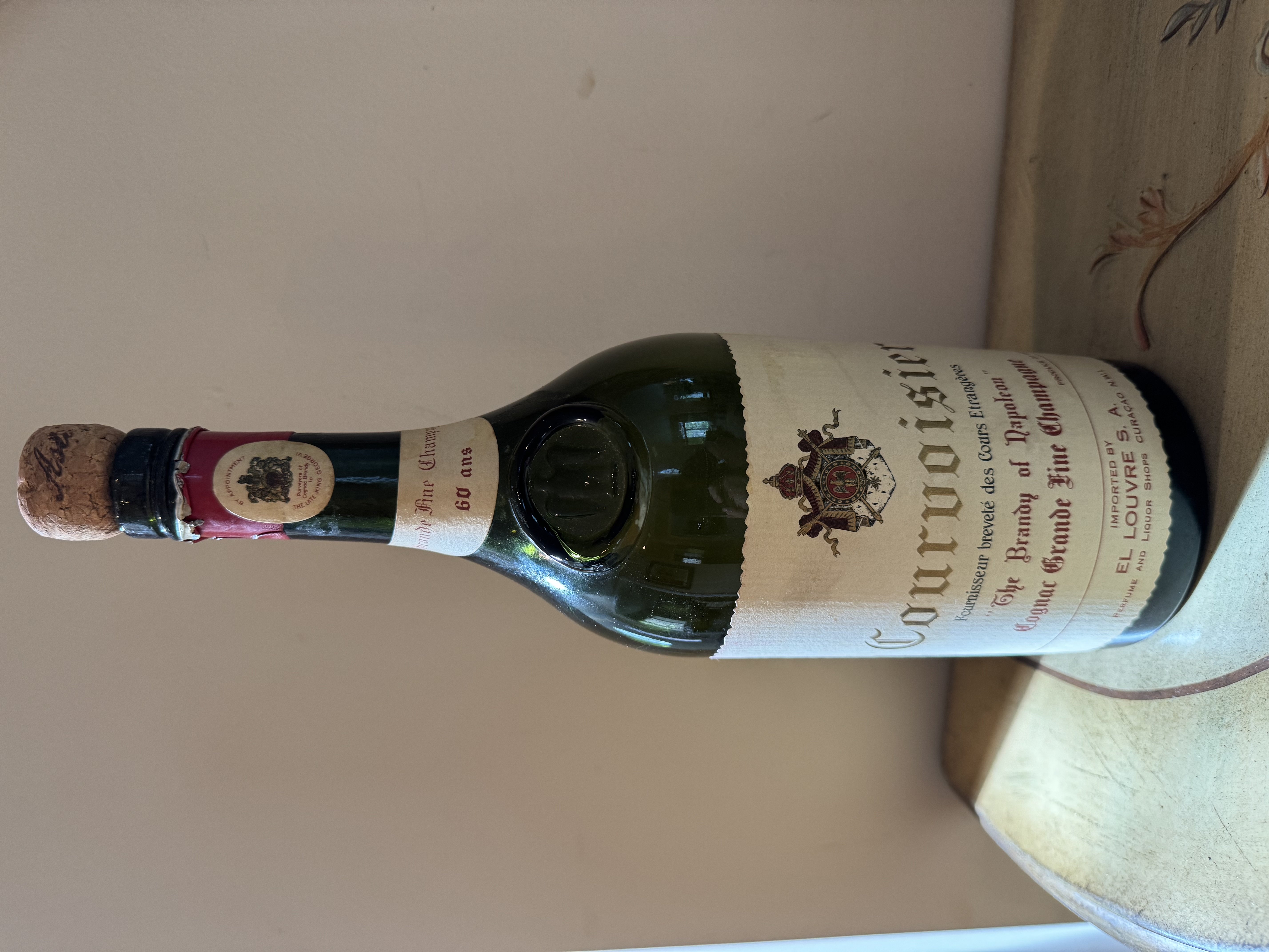 - By appointment, Purveyors of Cognac Brandy to The Late King George VI. Grande Fine Champagne 60 ans. Courvoisier Fournisseur brevete des Cours Etrangeres. "The Brandy of Napoleon". Cognac Grande Fine Champagne. Produce of France. Imported by El Louvre S. A. Perfume and Liquor Shops Curacao N.W.I.