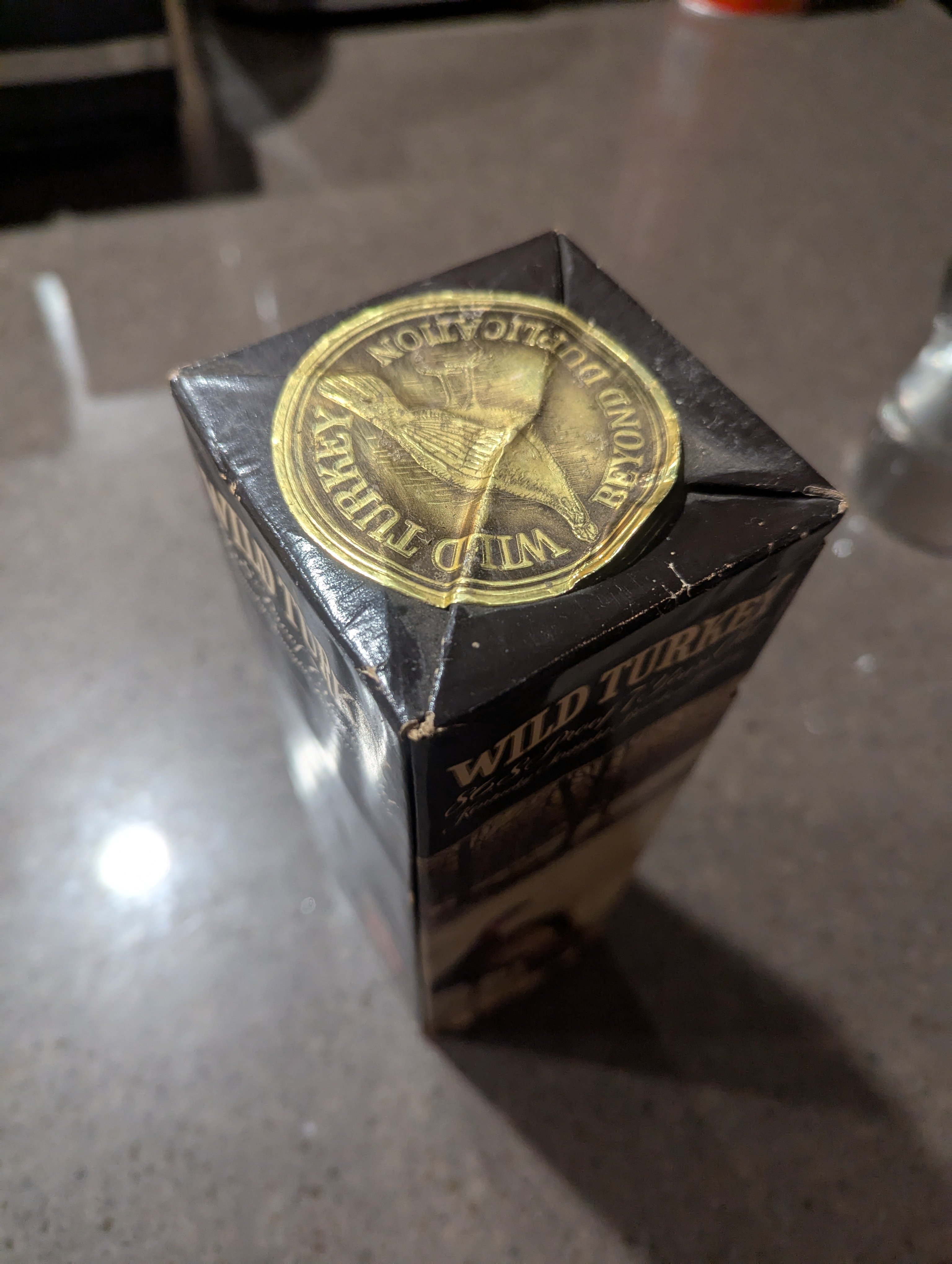 - FRONT LABEL: Austin, Nichols WILD TURKEY KENTUCKY STRAIGHT BOURBON WHISKEY 86.8 PROOF 7 YEARS OLD. Distilled in Kentucky. Bottled by the Austin, Nichols Distilling Co., Lawrenceburg, Kentucky. NECK LABEL: AGED 7 YEARS in the wood. AUSTIN, NICHOLS. BACK LABEL: WILD TURKEY - BEYOND DUPLICATION. From Kentucky's Bluegrass region comes this 101 proof Kentucky Straight Bourbon Whiskey, aged for eight years in new white oak barrels. We know of no other distiller who ages his bourbon for so long. The result is a bourbon of exceptional quality - a bourbon that is beyond duplication. Austin, Nichols & Co., Inc. Lawrenceburg, Kentucky. CAP: Wild Turkey with turkey logo.