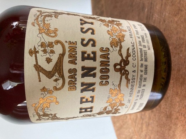 - Bras Arme Hennessy Cognac Ste JAs Hennessy & Co Cognac - France Guaranteed to be the distillation of the fermented juice of fresh grapes Produced in the Cognac district of France 70% Proof not less that 24 FL OZS