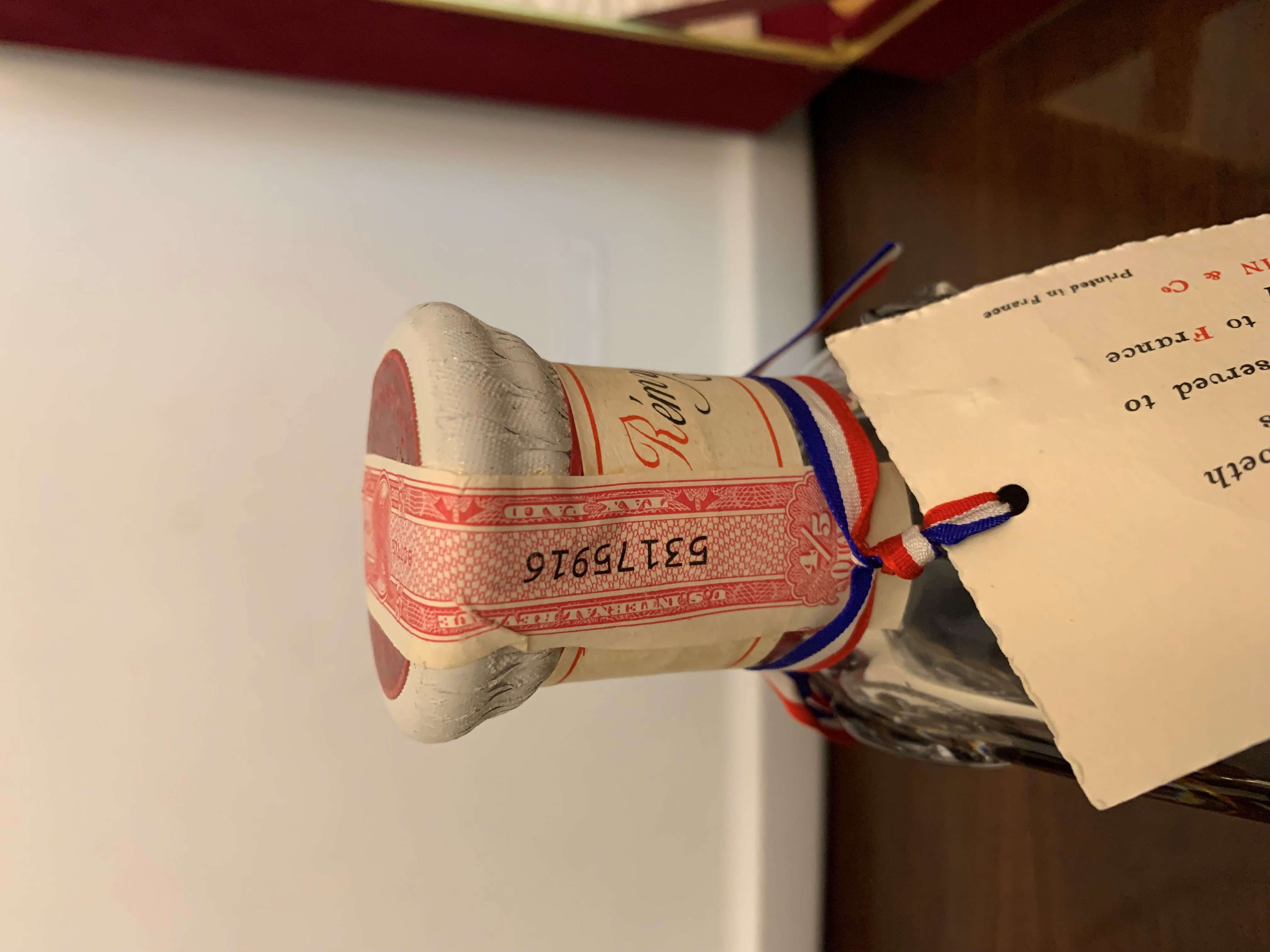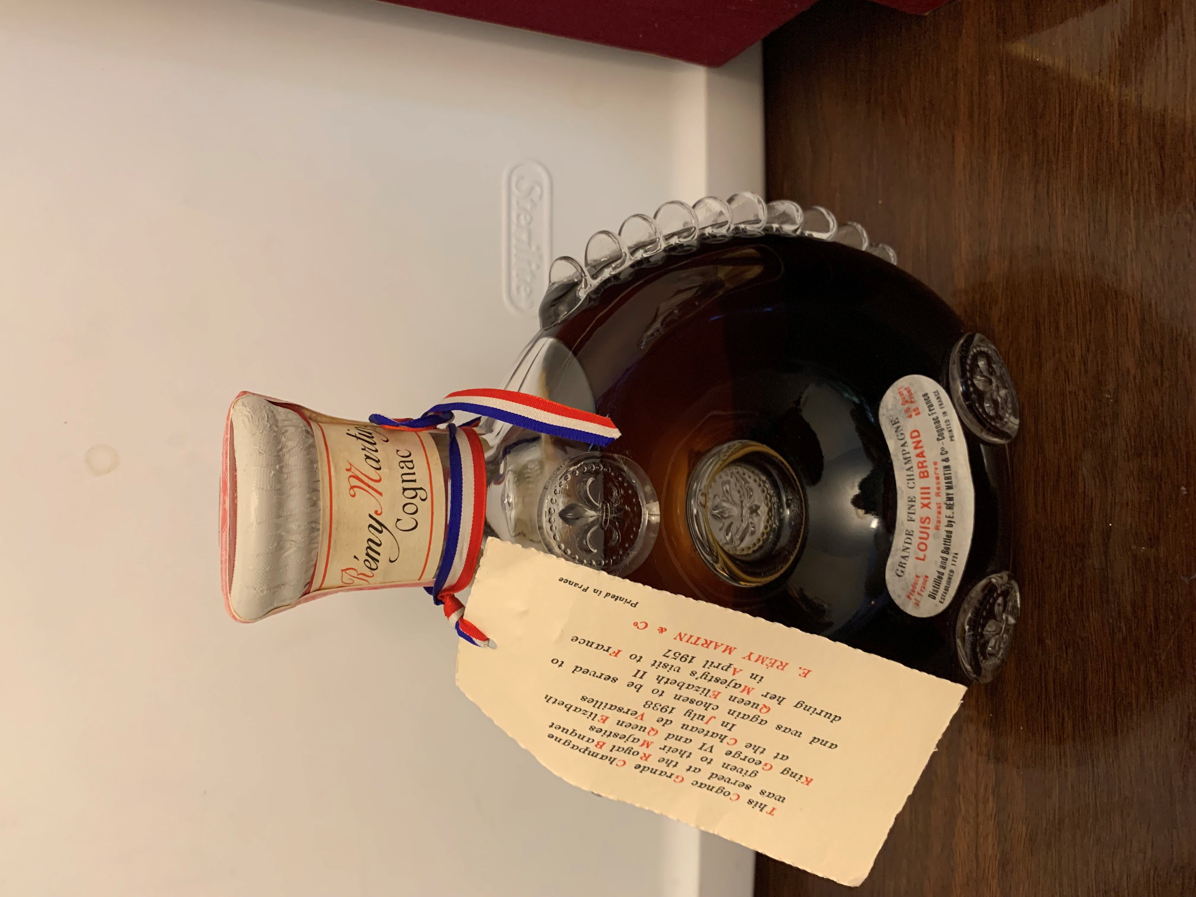 - Bottle number DT 9999 Remy Martin Louis XIII champagne cognac, all intact and perfect in Baccarat bottle. Bought on the maiden voyage of the Cunard Queen Victoria when it sailed across the Atlantic tandem with the QEII, which was her final voyage. Certificate signed for by the ships Captain. Also it comes with a limited edition crew medal to commemorate the voyage. Very special piece of history and memorabilia. Selling as my late husband bought it for me and I cannot bring myself to drink it. I have other pictures if you want to view.