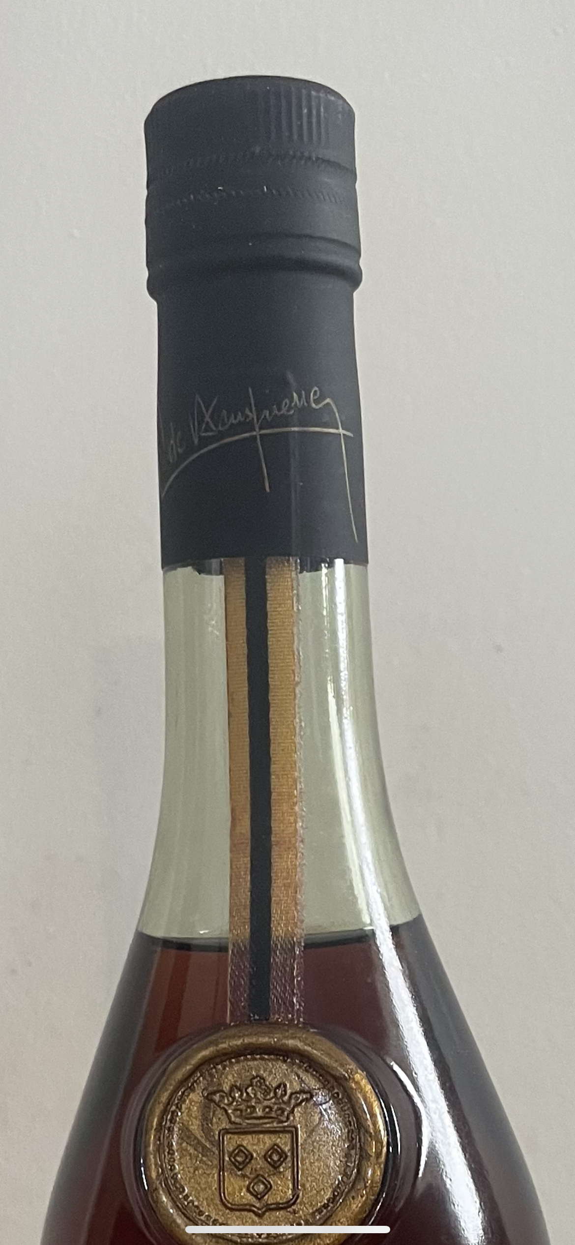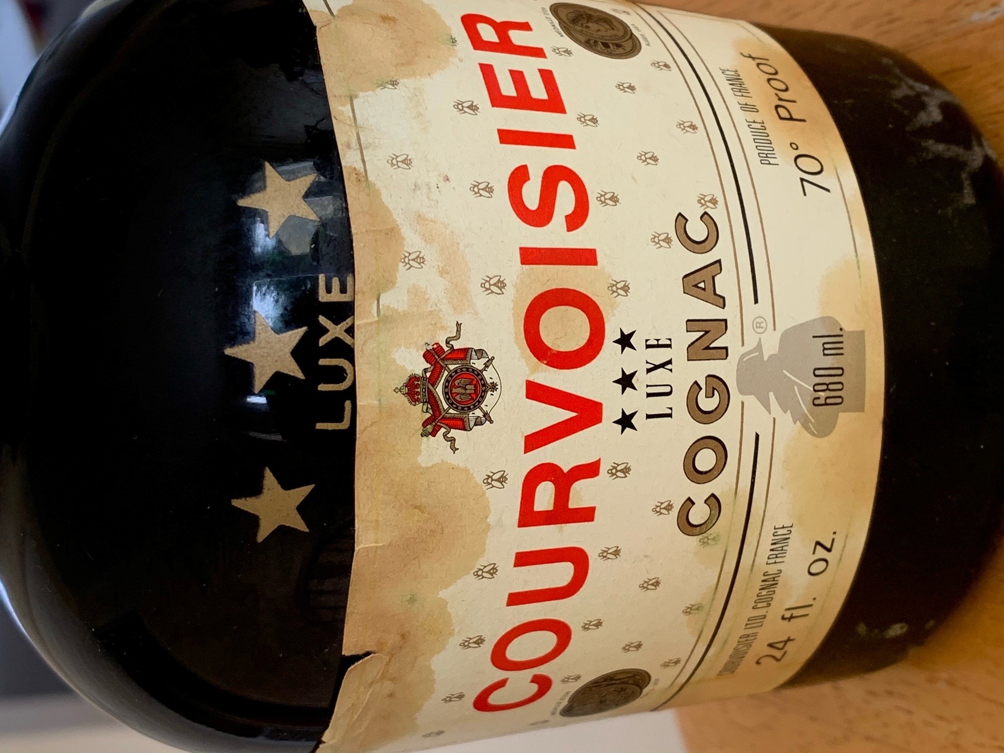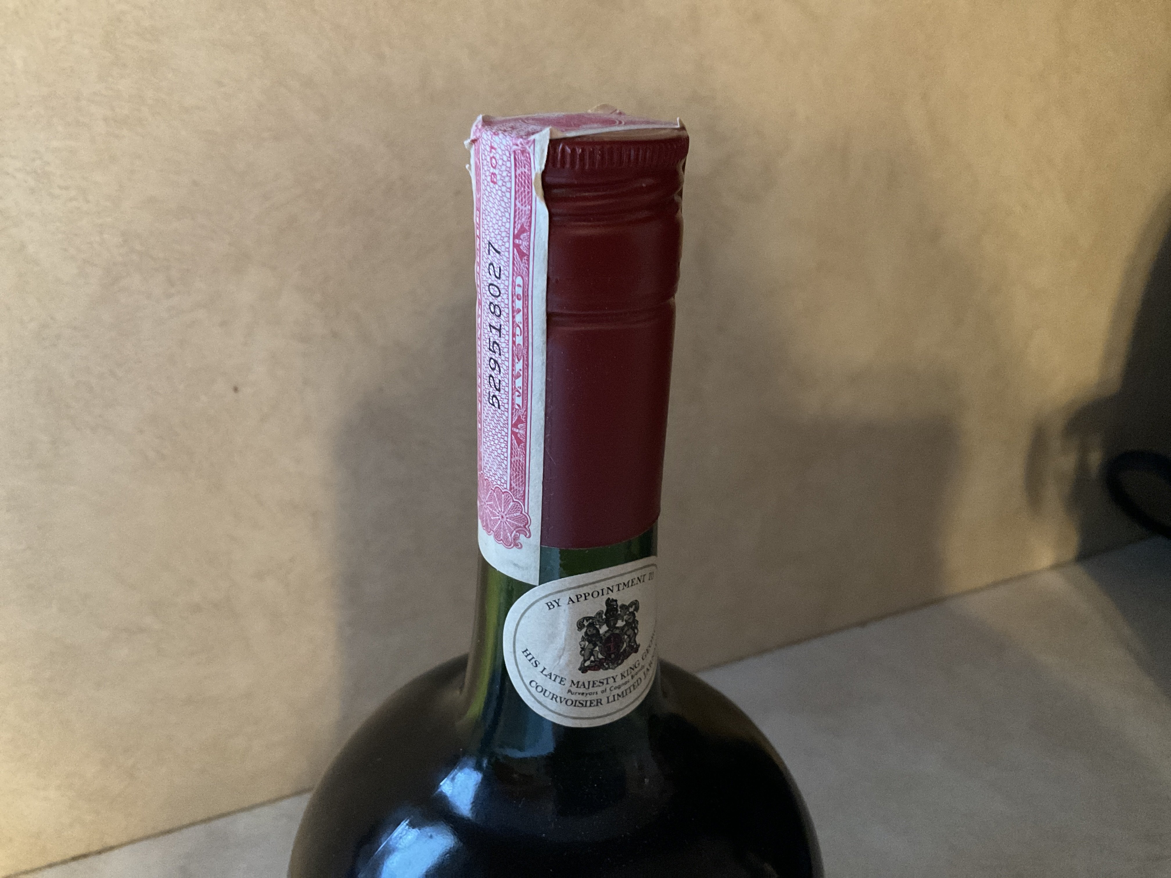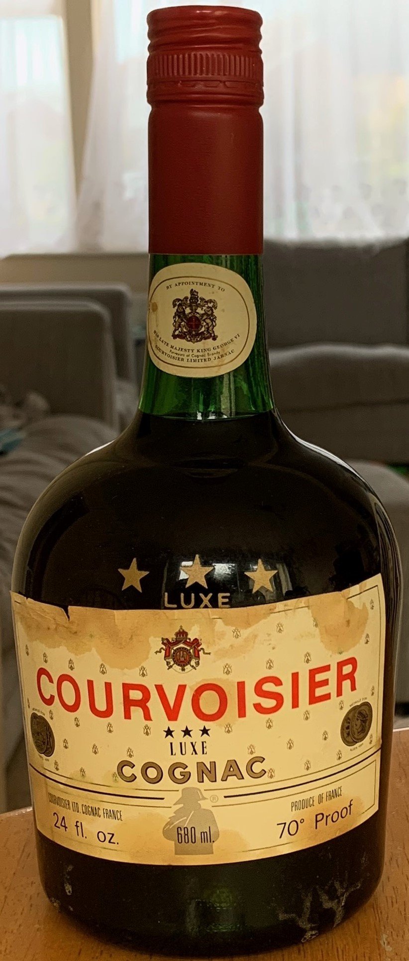 - Courvoisier LUXE *** cognac Has a small label on the neck stating by the appointment of his late majesty King George VI