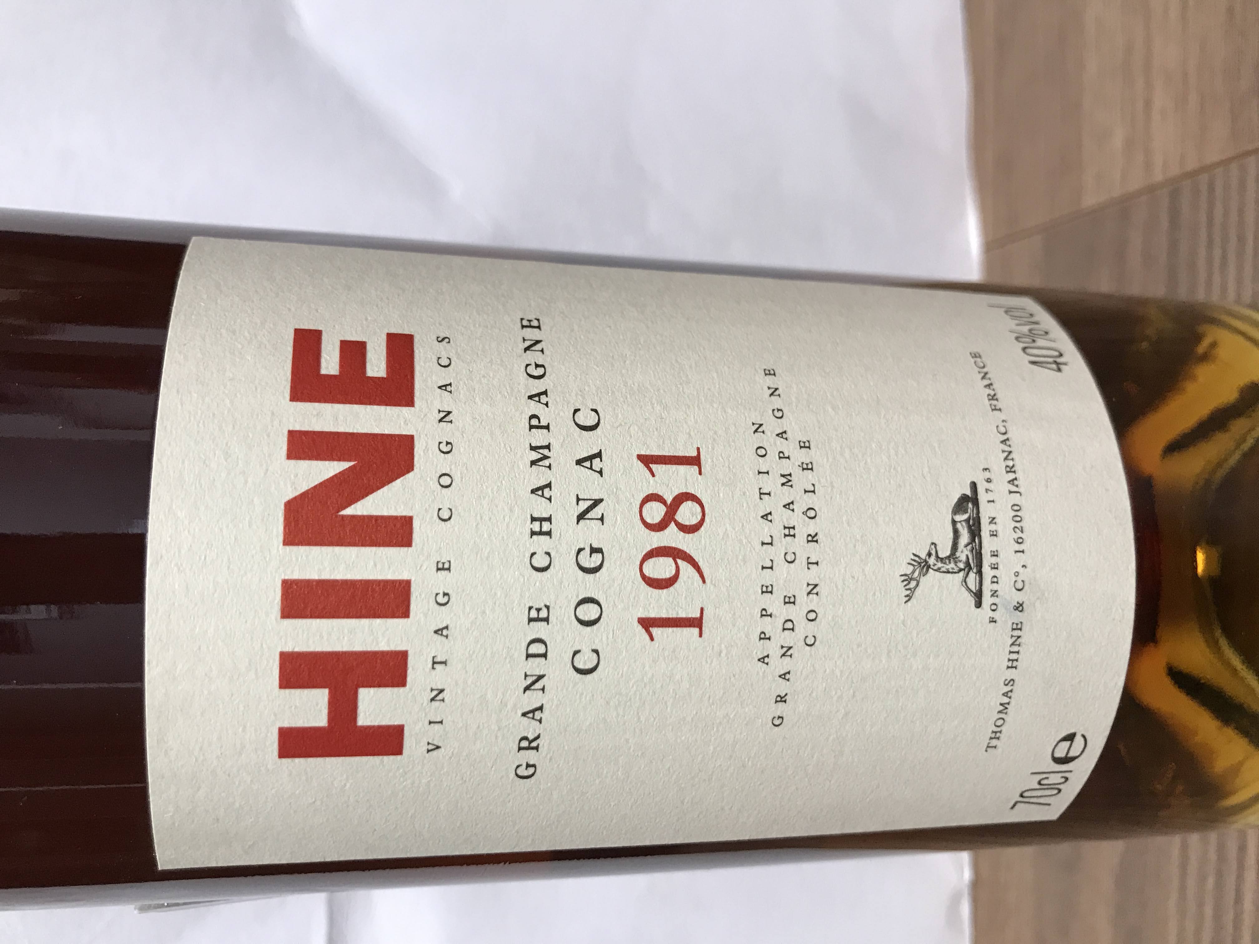 - Hine Vintage Cognacs. Grande Champagne Cognac 1981. Appellation grande champagne controlee. Thomas Hina & Co, 16200 Jarnac, France, 40%, 70cl