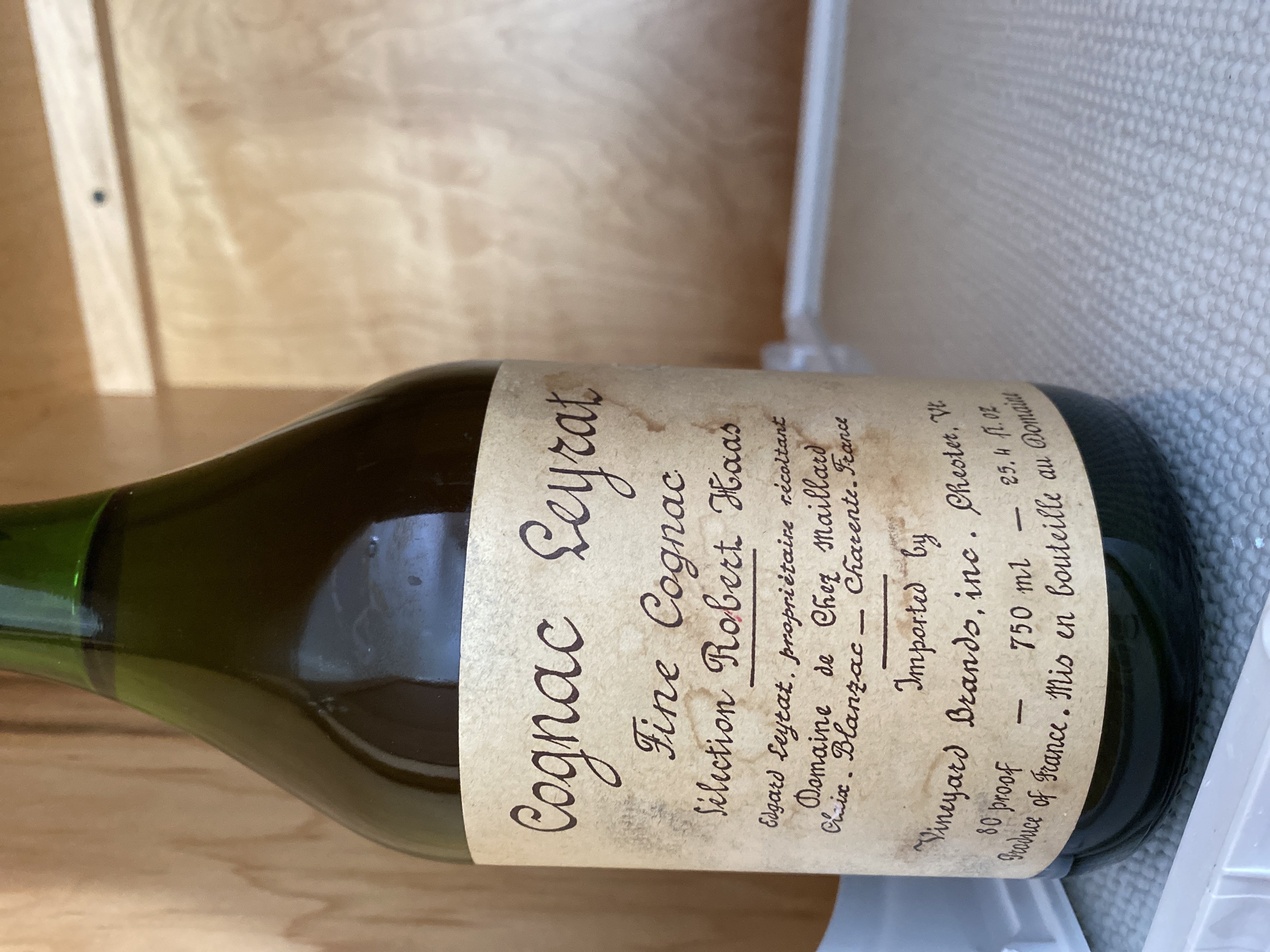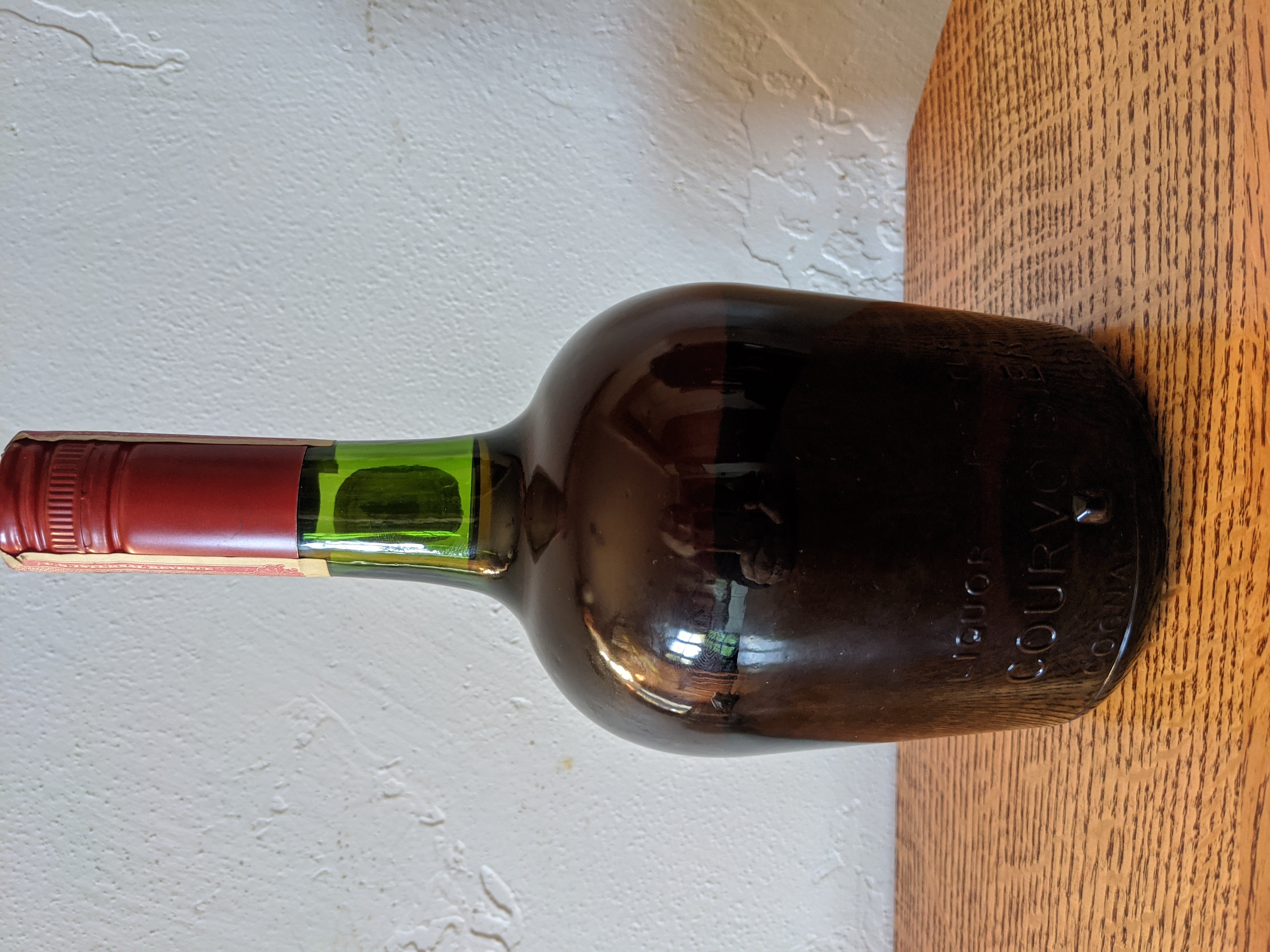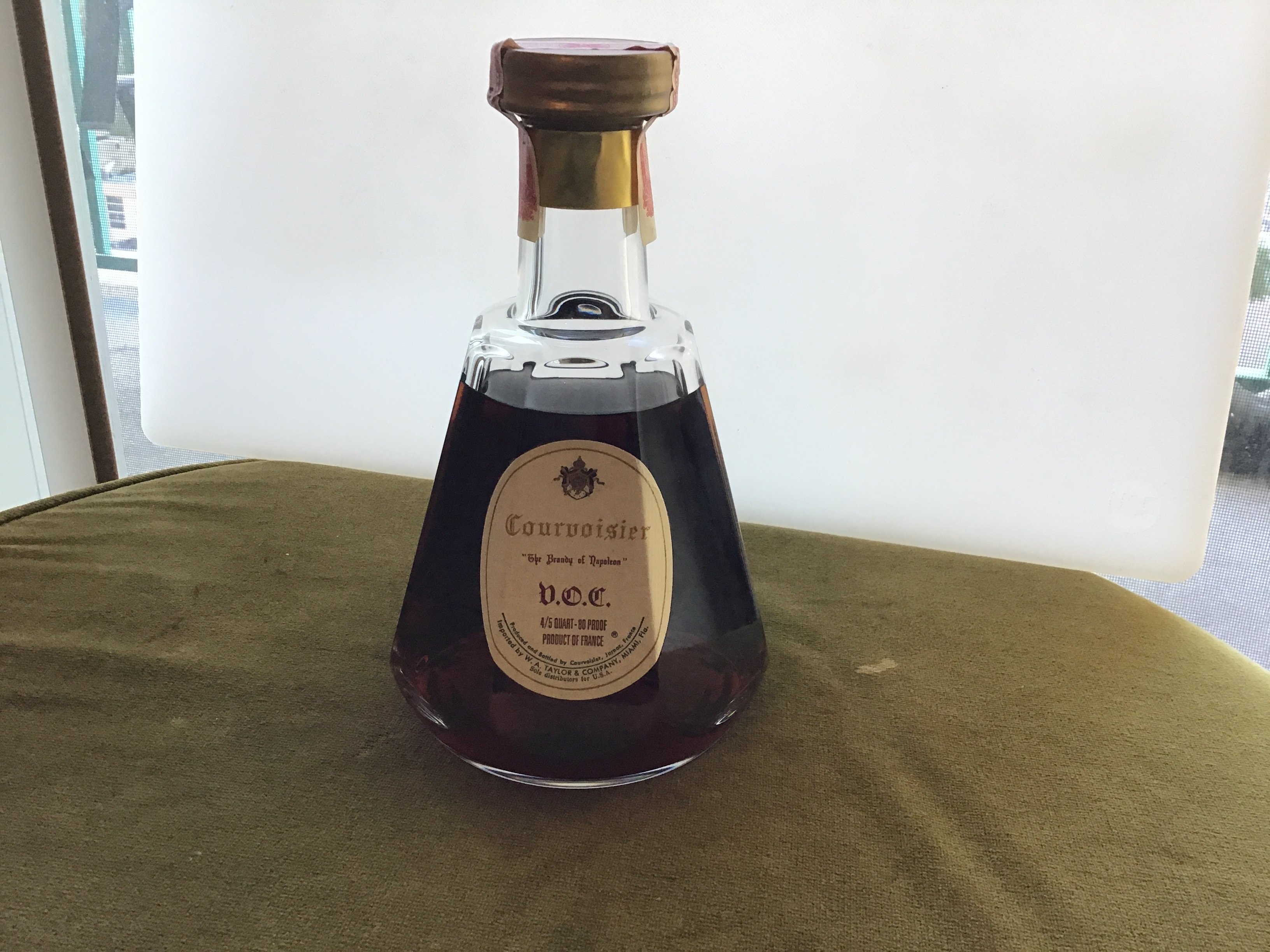 - Top Circle Label: By appointment to his late majesty king george VI Purveyors of Cognac Brandy Courvoisier Limited Jarnac Main Front Label Courvoisier Very Special Cognac Left Medallion: Medaille d'or paris 1889 Right Medallion: Medialle d'or Alger1889 Bottom third of main label 80 Proof - 4/5 QUART Produced and Bottled by PRODUCT OF FRANCE Courvoisier, Jarnac, France Imported by W. A. TAYLOR & COMPANY, MIAMI, Fla., Sole distributors for U. S. A. No label on the back, no bar code. Bottle has this molded into the back: LIQUOR BOTTLE COURVOISIER COGNAC FRANCE